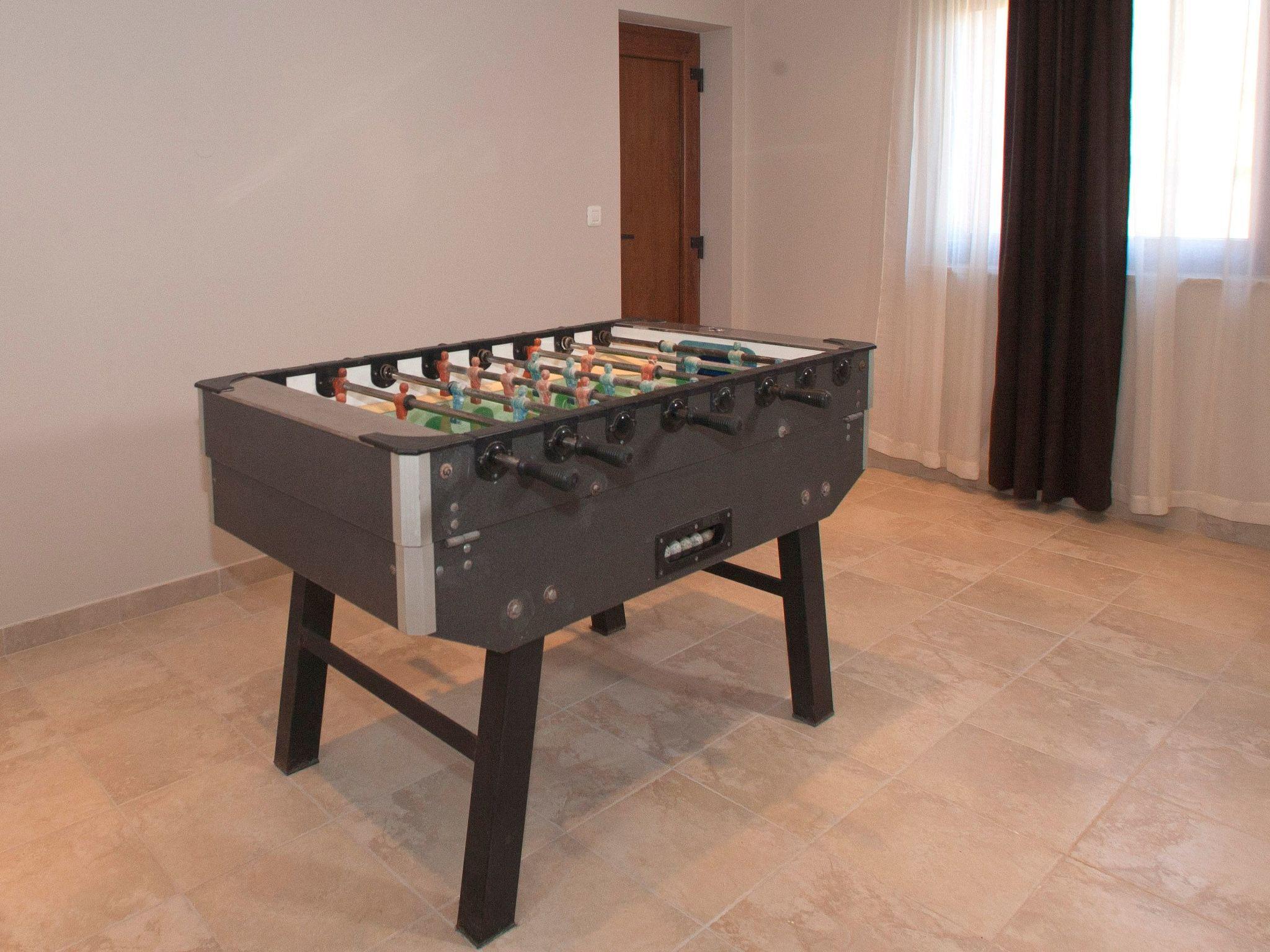 The interior of the villa is spacious and bright, tastefully and modern furnished. It features 5 bedrooms, each with its own bathroom, kitchen with living room and football table.