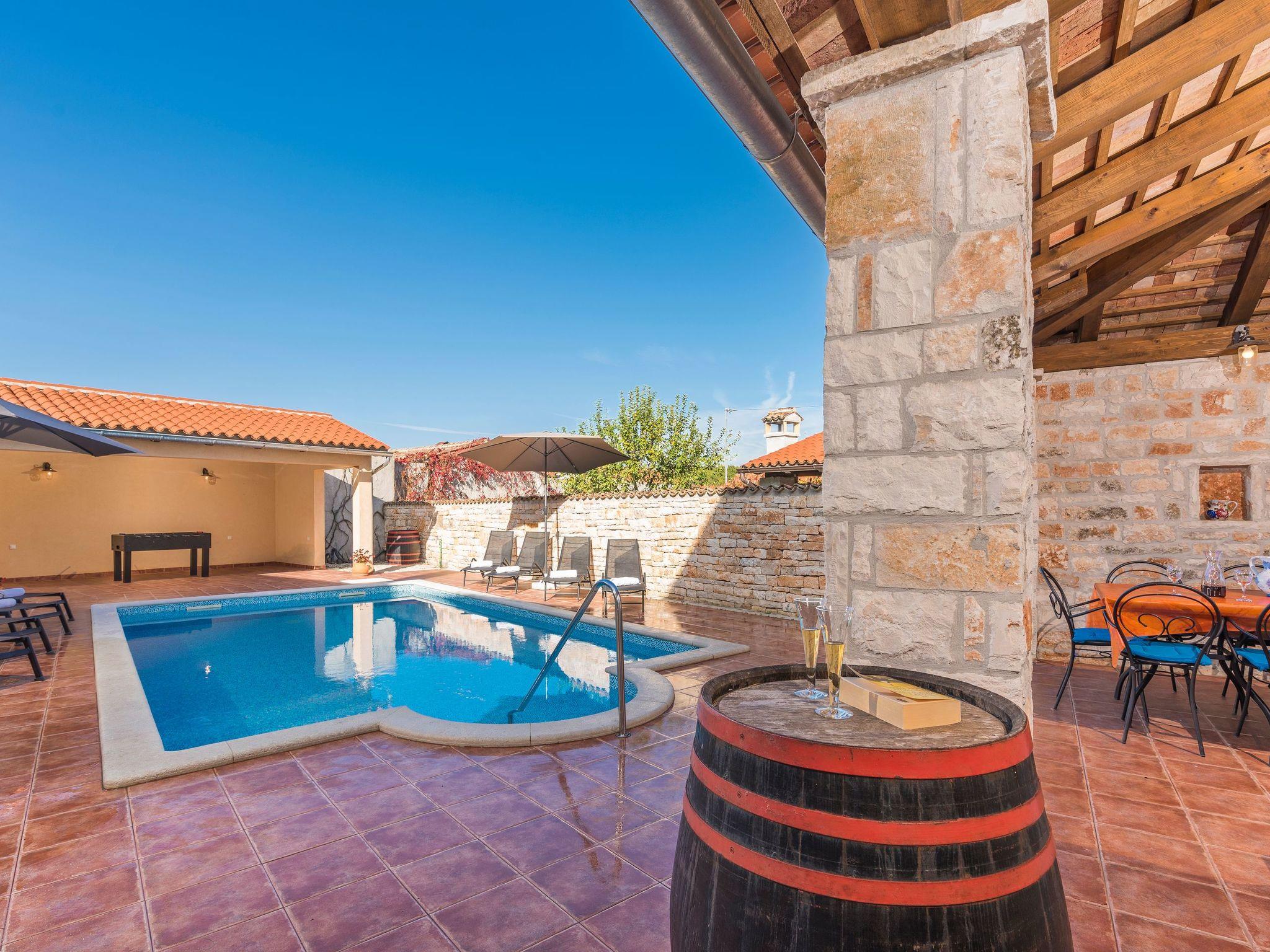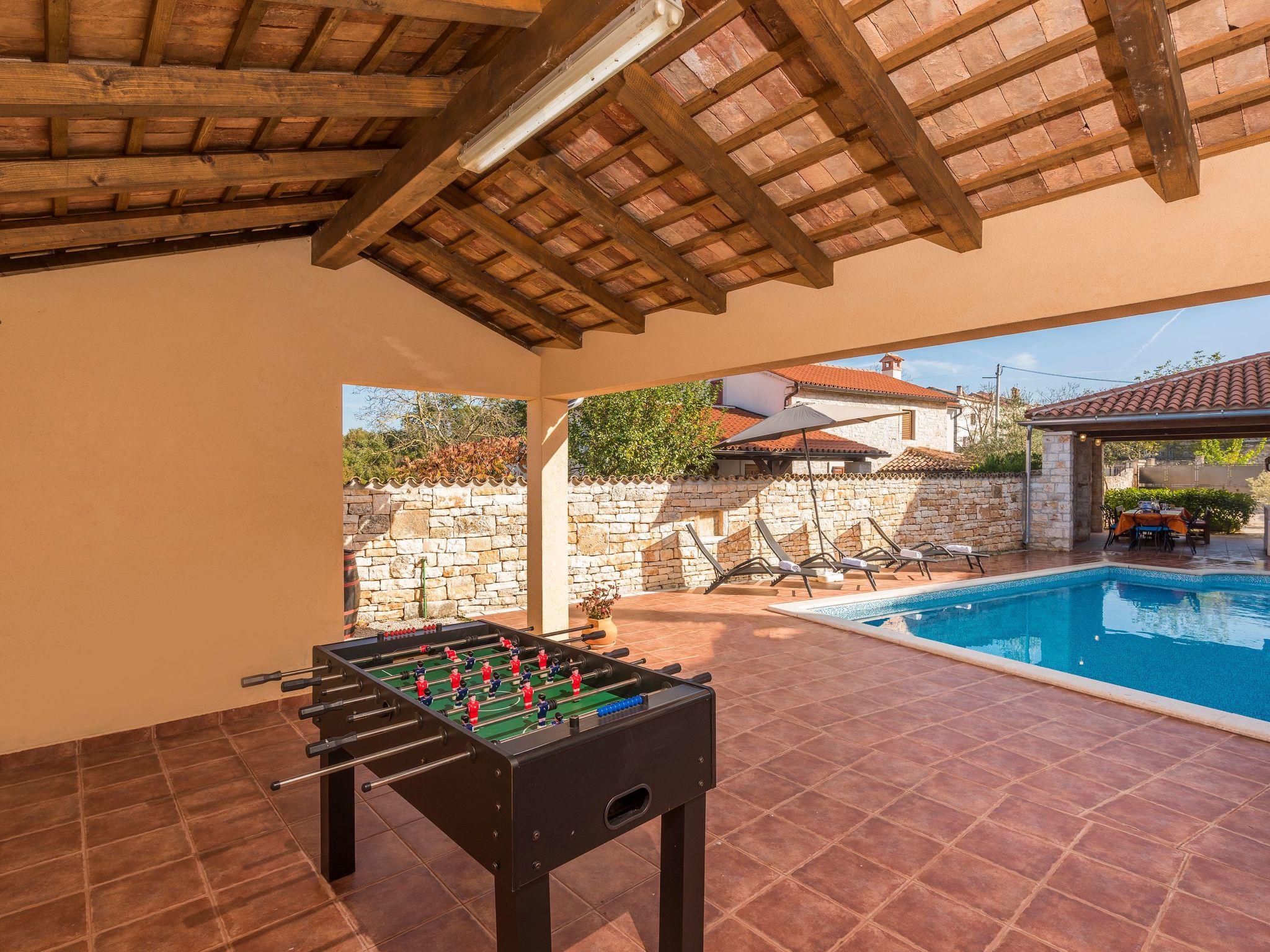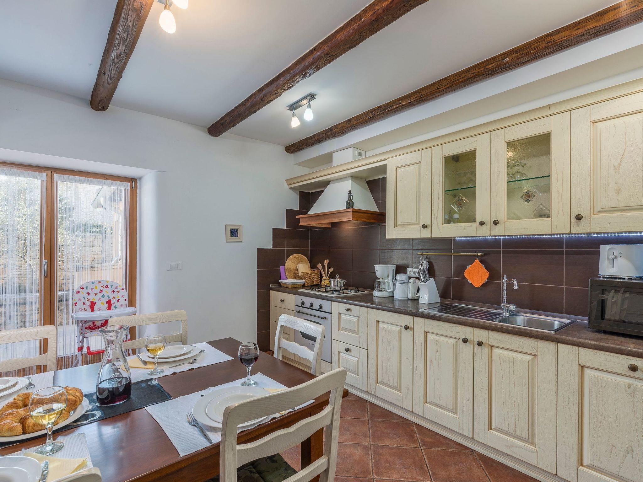 The town of Svetvincenat is near the villa, with interesting old churches and the medieval Grimani Castle, where many events and festivals are held during the summer months. There are larger, attractive coastal towns nearby suitable for trips, such as Pula, Rovinj and Porec, or Pazin and Motovun in the inland area. It is about 15km to the nearest rocky and pebbled beaches. There are shops a kilometre away.