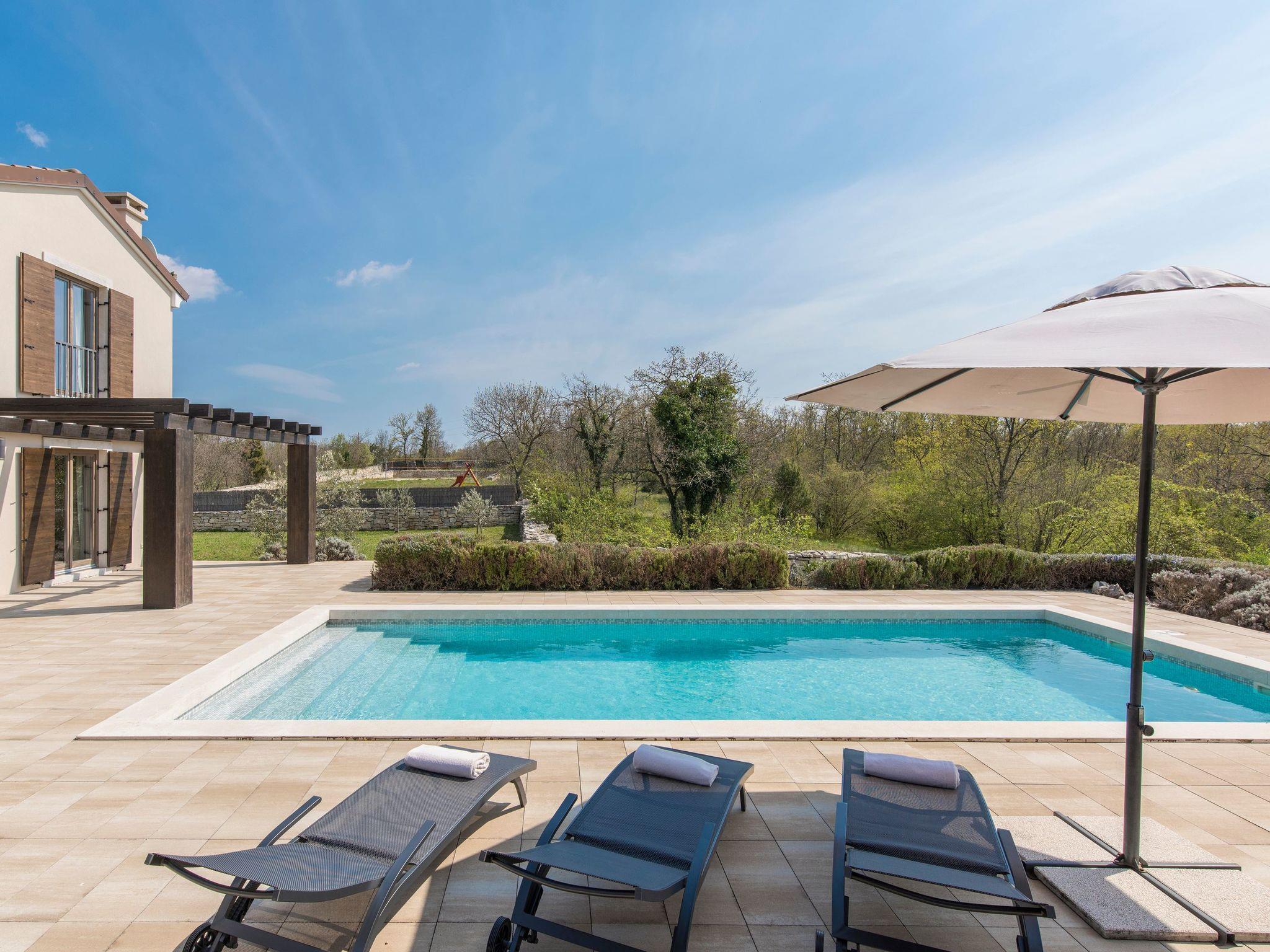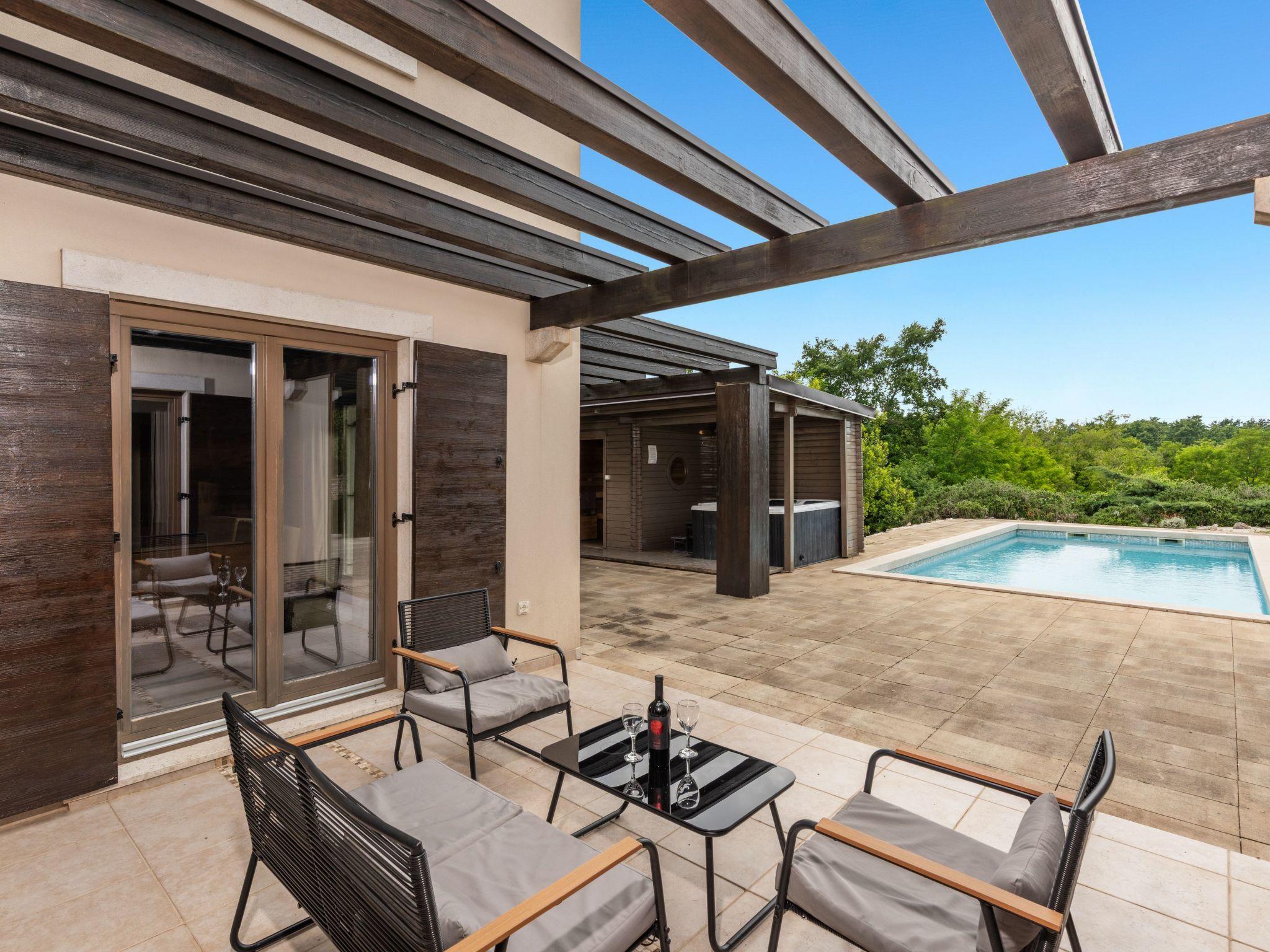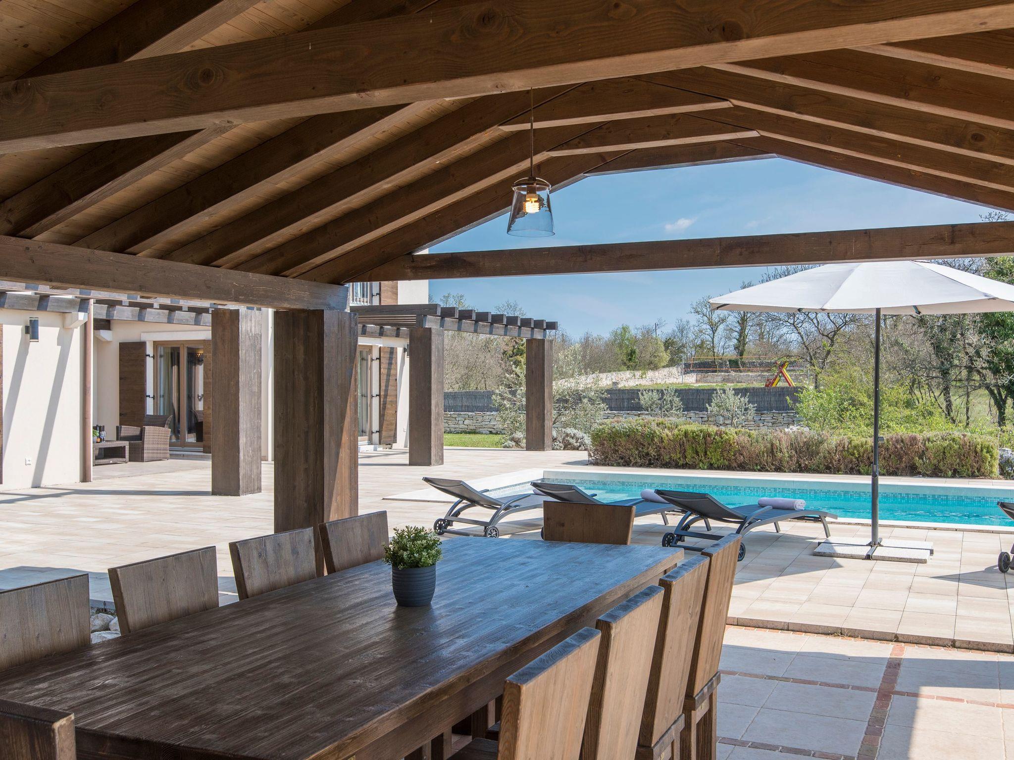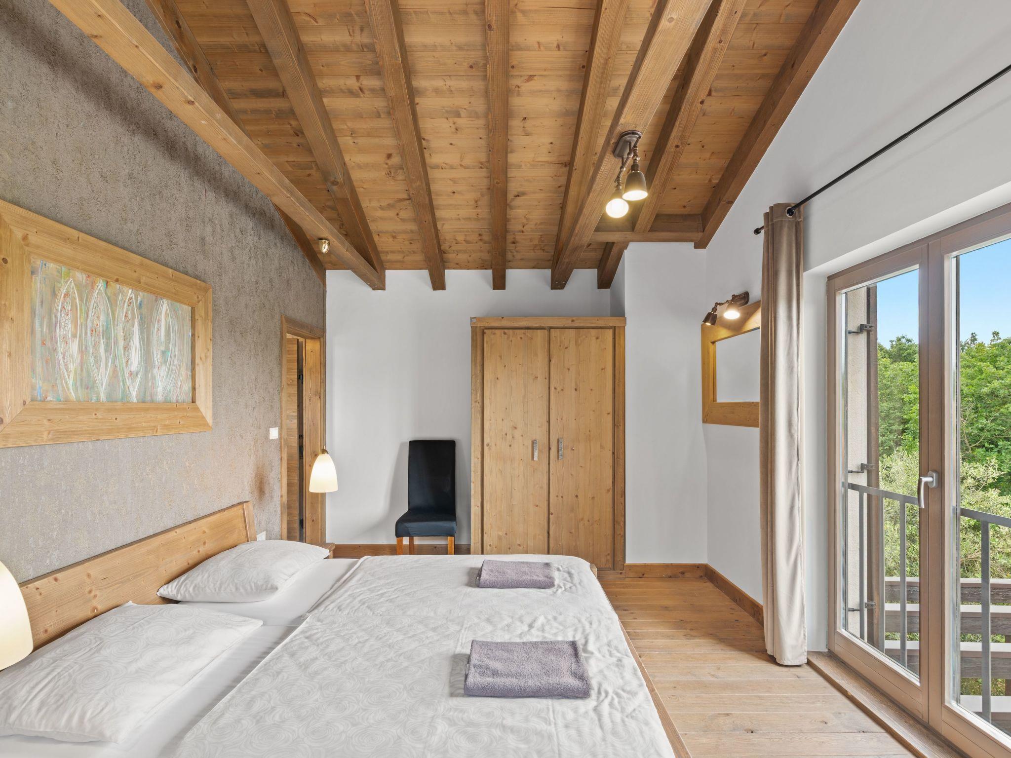 Outside, a private pool surrounded by a wrap-around wooden terrace offers plenty of space for sun loungers and enjoying the surrounding green forests. A 45 square metre covered terrace with an outdoor kitchen and a spacious table for convivial dinners underlines the luxurious holiday experience. The villa not only offers an exquisite interior, but also a relaxing outdoor area that leaves nothing to be desired.