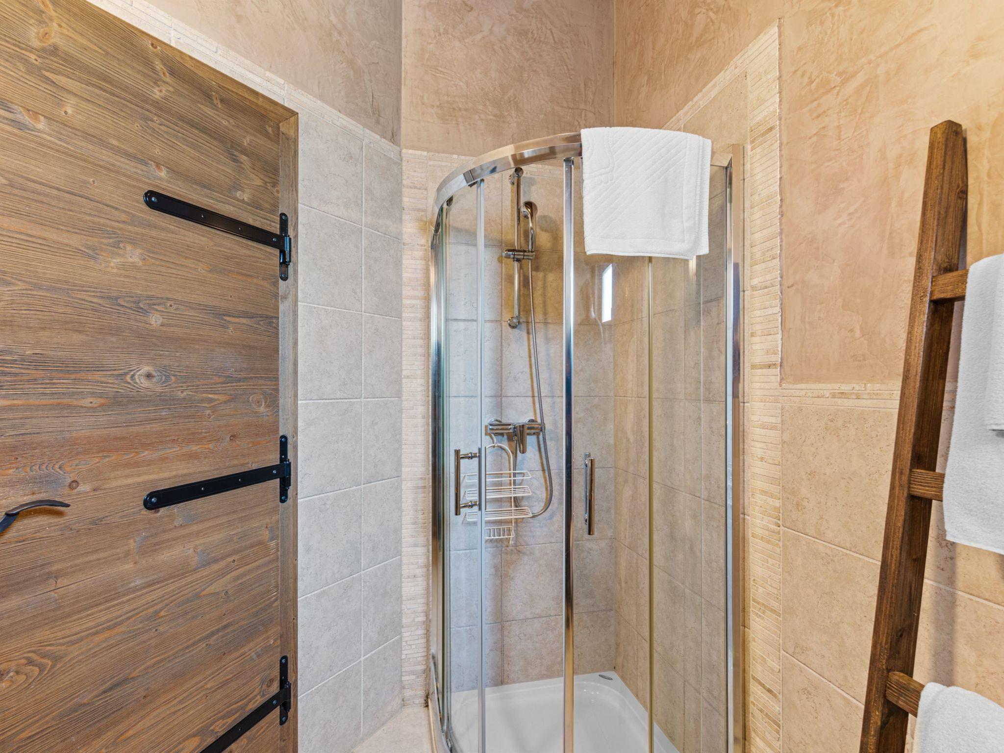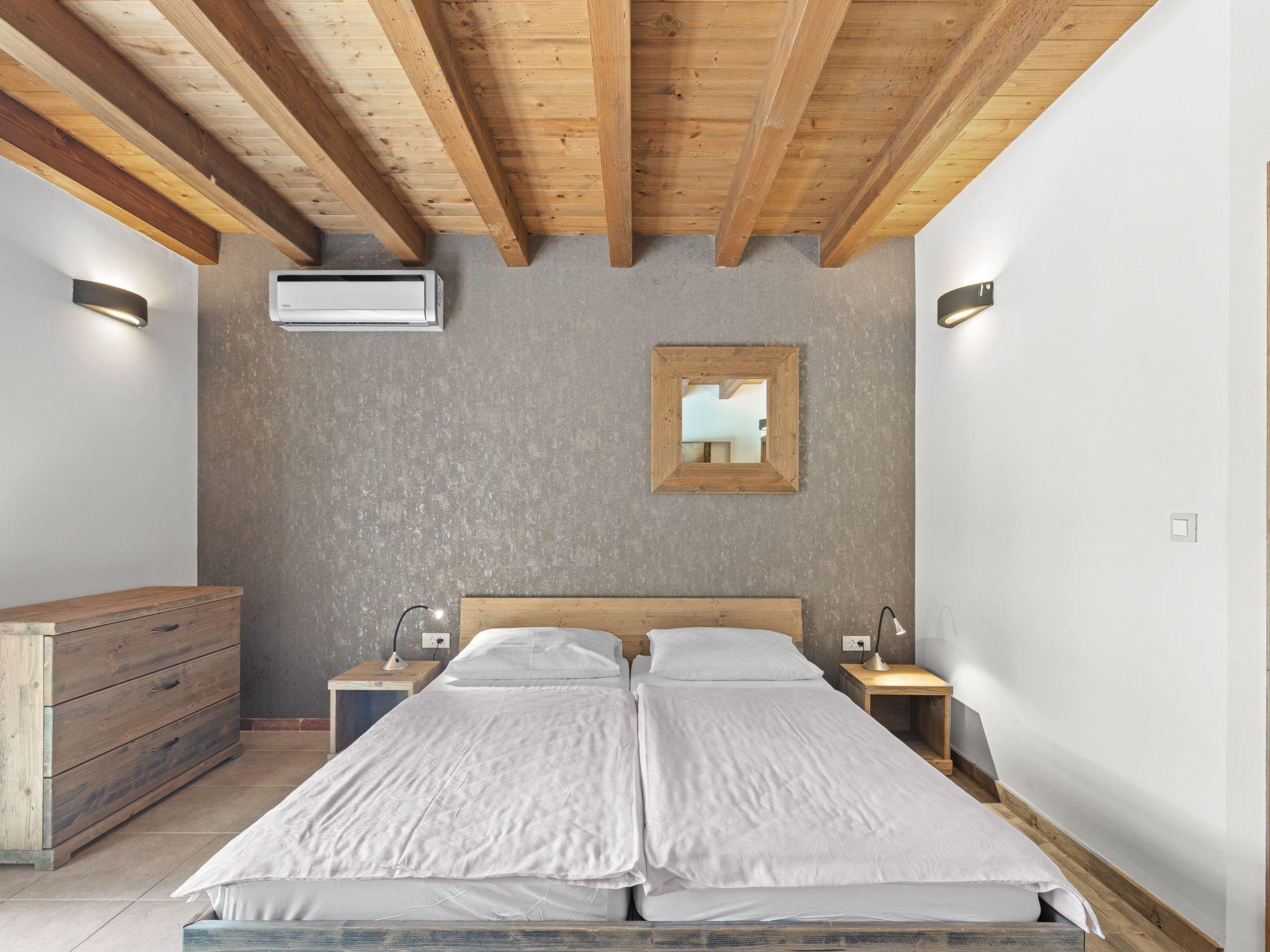 The interior leaves nothing to be desired: A rustic corner kitchen, equipped with a microwave, an eye-level oven, dishwasher and a luxury fridge, offers ideal conditions for culinary journeys of discovery. The five cosy bedrooms are each furnished with a double bed, a chest of drawers, a wardrobe and their own LCD TV as well as exclusive bathrooms with a choice of bath or shower, guaranteeing privacy and comfort. Natural materials and harmoniously coordinated colour tones underline the warm, cosy ambience of the entire villa, while selected works of art emphasise its luxurious character.