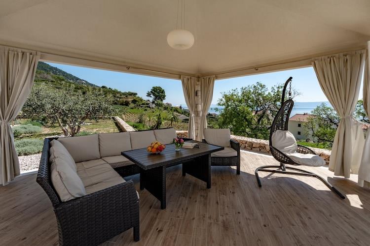Villa Blue Sky er beliggende i Bol på øen Brac. Det byder på to private opvarmede udendørs swimmingpools (en af dem er en massage-swimmingpool), stor møbleret terrasse, solterrasse med liggestole og parasoller med udsigt over Adriaterhavet, grillfaciliteter og sommerkøkken, perfekt til en hyggelig og afslappende familie eller venner ferie. Bemærk venligst: Bagageopbevaring før indtjekning og efter udtjekning er tilgængelig. Kæledyr er tilladt med varsel. Gratis privat parkering på stedet, reservation er ikke påkrævet. Denne rummelige villa med 3 soveværelser kan komfortabelt rumme op til seks personer. Den har gratis WiFi, aircondition og kabel LCD-tv. Stuen er udstyret med sofa og er kombineret med fuldt udstyret køkken og spiseplads. To private badeværelser med bruser, toilet og hårtørrer er til gæsternes rådighed. Vaskemaskine, strygefaciliteter, barneseng og højstol er til gæsternes rådighed.Bol ligger på den sydlige del af øen Brac, og er den ældste by på kysten af Brac. Denne lille by blev grundlagt for længe siden og blev en ekstraordinær turistoase på grund af de brede grus- og sandstrande, der strækker sig over 10 km og drikkevandskilderne. Det er ikke muligt at undgå Zlatni-rotten, bestemt den smukkeste strand ved Adriaterhavet, hvis kappe drejer det ene øjeblik til den ene side og det andet øjeblik til den anden side og spiller en mærkelig leg med vinden og bølgerne. restaurant, kaffebar, marked, købmand, apotek og tankstation er ca. 500 m væk fra ejendommen, mens den nærmeste strand ligger 1 km fra ejendommen. Det nærmeste busstoppested ligger 500 m fra ejendommen. Taxastationen og ""Marina Bol"" ligger 650 m fra lejligheden. Brac Lufthavn ligger 14,5 km fra Villa Blue Sky.