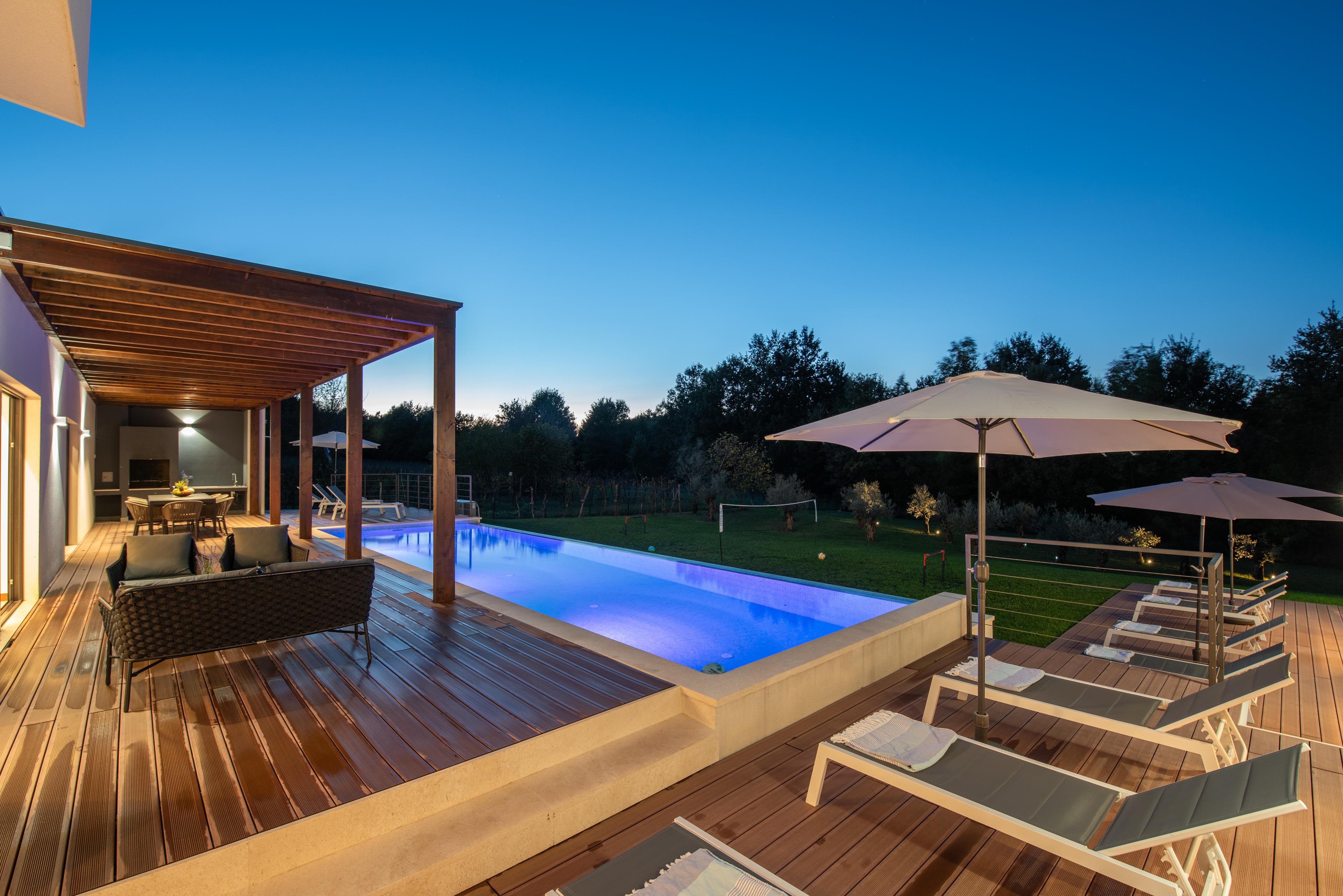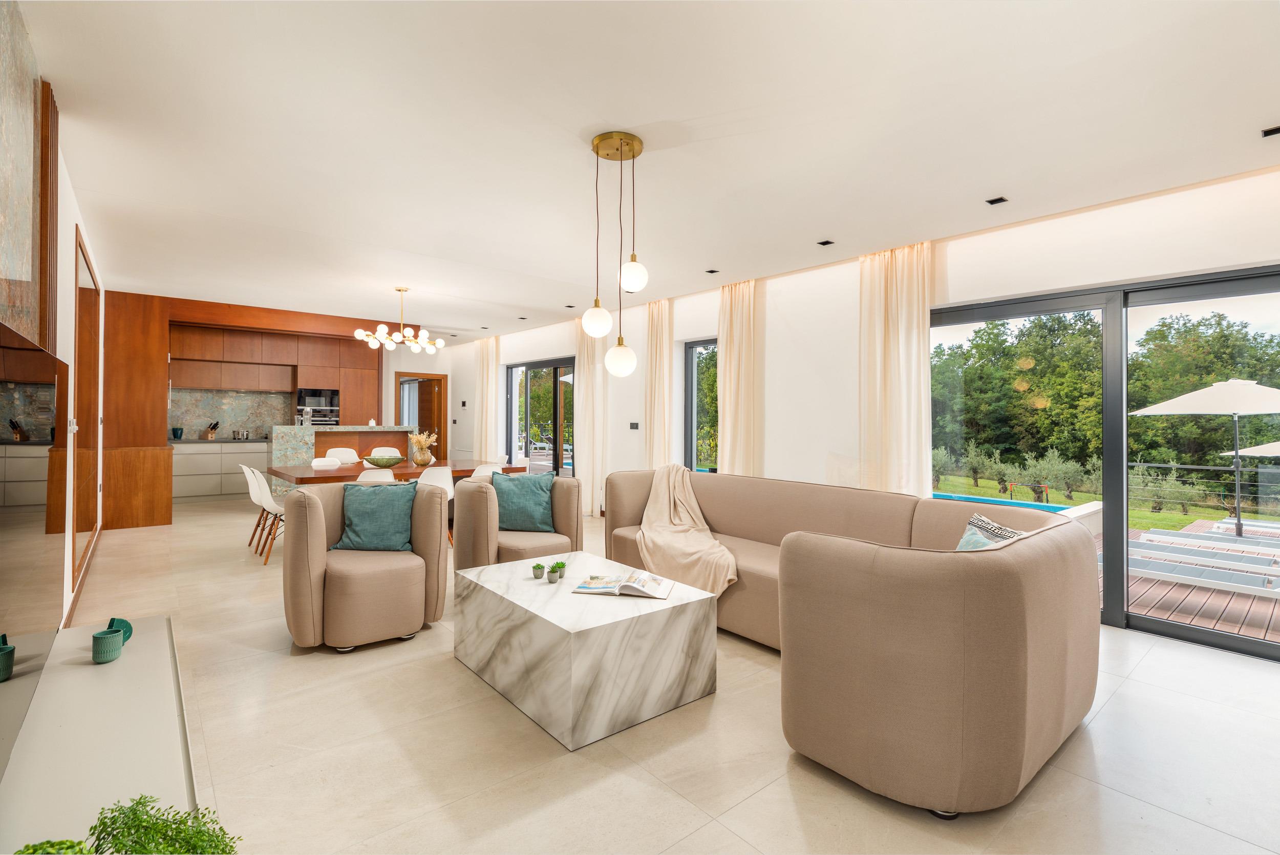 Welcome to Villa Istria Green – a peaceful retreat set amidst an idyllic landscape of dense forests, gentle vineyards, and fragrant olive and fig trees! Here, you can escape the hectic everyday life and enjoy complete relaxation. This stunning villa on the eastern coast of Istria offers everything you need for an unforgettable vacation with family or friends. With its five bedrooms, it accommodates up to ten people and guarantees comfort and well-being.