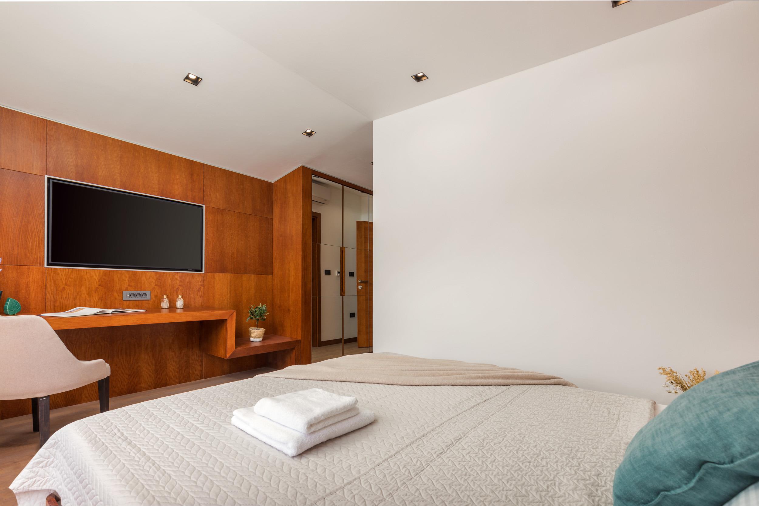 The spacious 48 m² pool is the centerpiece of the expansive garden, inviting you to spend relaxed hours in the cool water. You can create unforgettable moments with your loved ones – whether swimming, splashing with the kids, or sunbathing on the comfortable loungers. While the teenagers play soccer or volleyball in the garden, you can bask in the warm Croatian sunshine. The large terrace features a cozy dining table, perfect for long shared meals and atmospheric barbecue evenings. Prepare delicious local dishes on the charcoal grill and enjoy the wonderful flavors of the region.