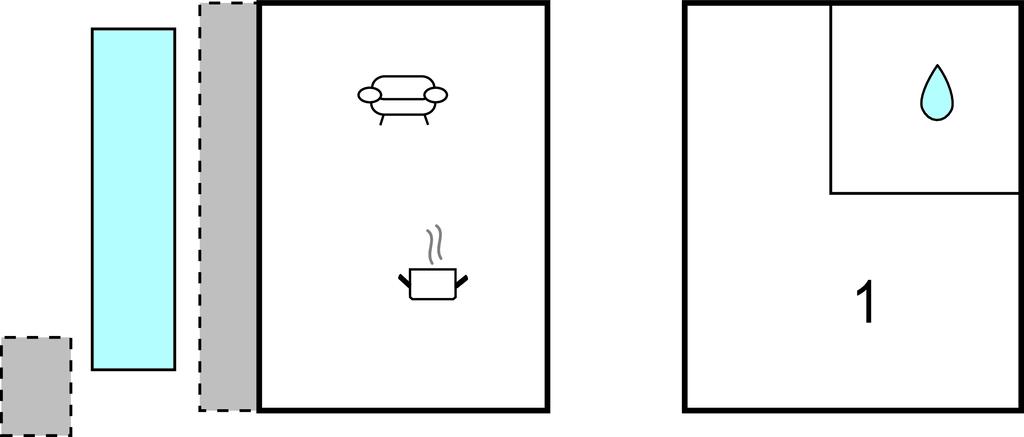 Opholdsstue/køkken 15m2 - 2 Sovepladser. (Sofa, madras eller lignende).