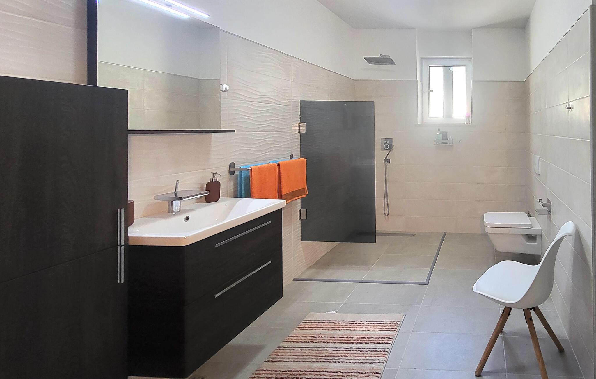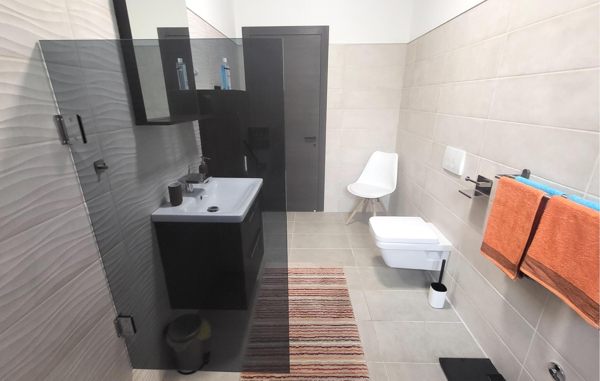 Velkommen til denne moderne ferielejlighed på øen Brac, der er noget særligt med sin elegante indretning og tidløse æstetik. Tilbring afslappede timer i den lyse stue, se en film på den store smart-tv, eller tilbered kulinariske lækkerier i det perfekt udstyrede køkken. Nyd aftenen med et glas vin i den hyggelige spisestue, og mærk den stilfulde atmosfære.