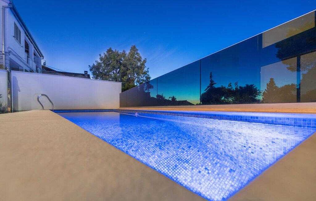 Sæt hverdagen på pause, mens I nyder den friske brise på jeres rummelige solterrasse. Tag en forfriskende dukkert i den private pool, der med sin stemningsfulde belysning skaber en magisk aftenstemning. Tilbered lækre grillretter i det moderne udendørskøkken.