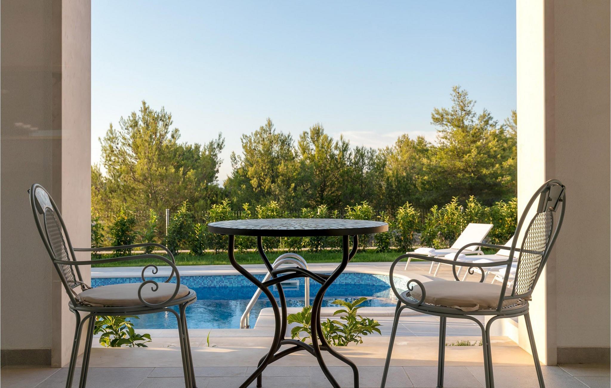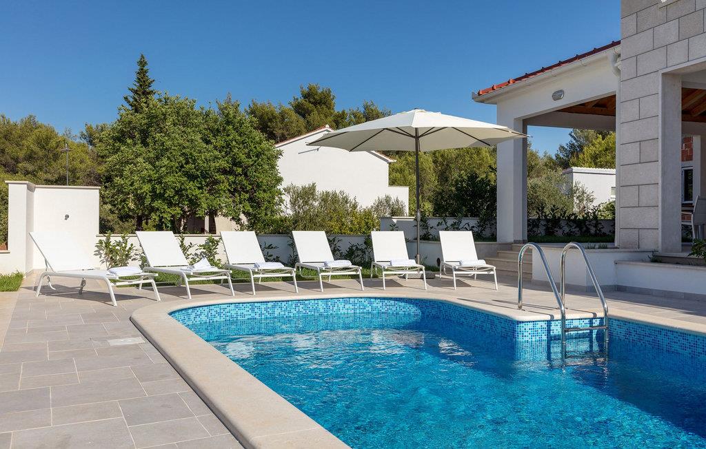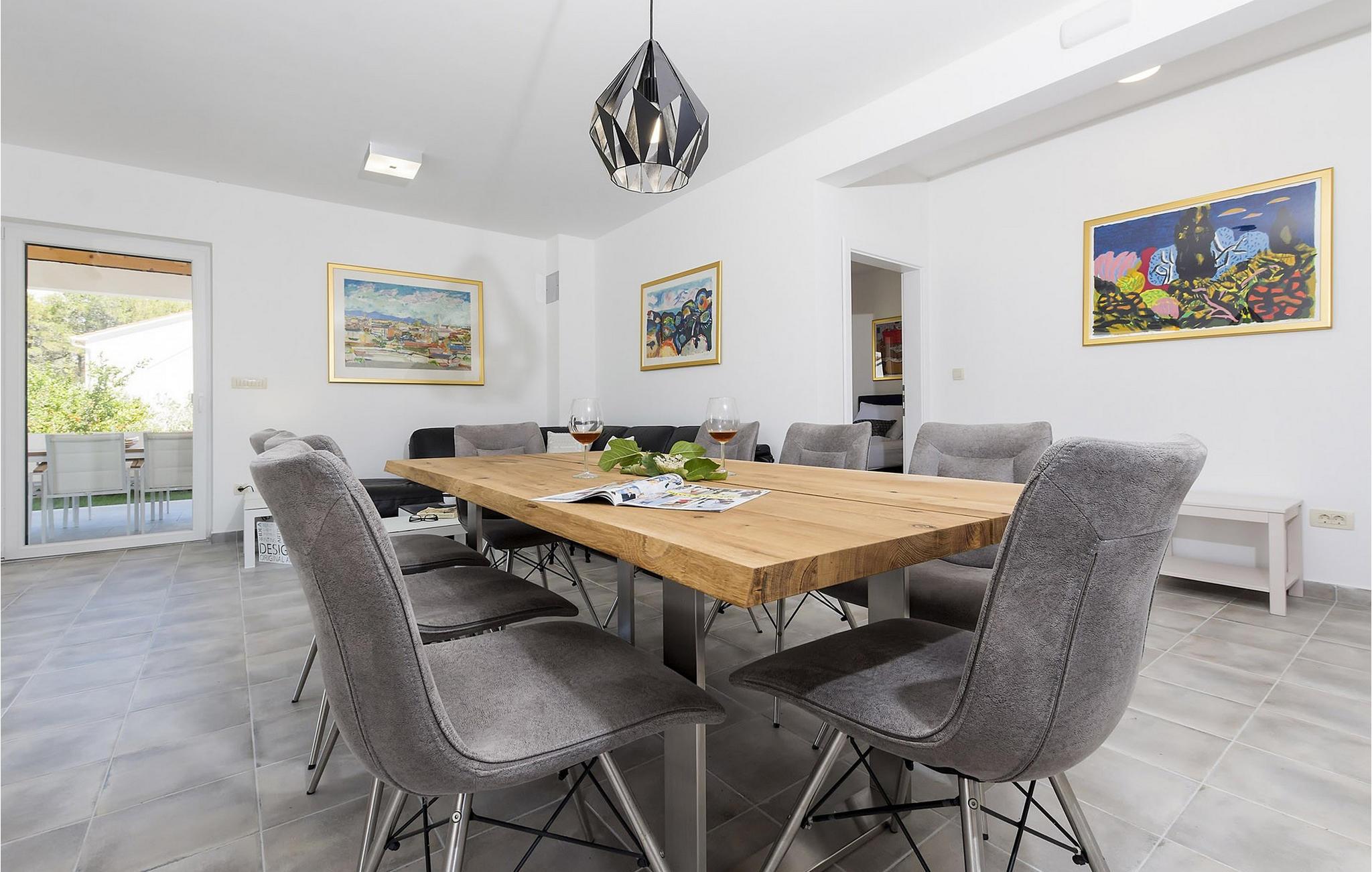 Glæd jer til en dejlig ferie i dette luksuriøse feriehus med pool og havudsigt. Den fortryllende Villa Makarac byder jer velkommen kun få skridt fra bredden af den rolige bugt af samme navn og tilbyder idylliske rammer for en ferie for krop, sind og sjæl. Føl jer hjemme i det komfortable, luftige interiør, tryll kulinariske lækkerier frem i det solbeskinnede køkken og nyd harmoniske måltider ved det stilfulde spisebord. Mens børnene morer sig i legerummet, ved bordtennisbordet eller på trampolinen, kan I nyde stimulerende samtaler over et glas vin. Server jer selv en friskbrygget kaffe på balkonen og nyd middelhavsatmosfæren. Jeres private pool giver forfriskninger for hele familien, mens den skyggefulde terrasse tilbyder et hyggeligt sted til en afslappet morgenmad eller stemningsfulde grillaftener. Udforsk de fantastiske strande på øen Brac og dens mange skjulte bugter. Nyd uberørt natur, mens I cykler eller vandrer, og oplev undervandsverdenen, mens I dykker eller snorkler. Fordyb jer i Bracs pulserende natteliv og prøv regionale retter i indbydende restauranter. Bemærk venligst: Der gælder en turistskat, som skal betales lokalt ved ankomst.