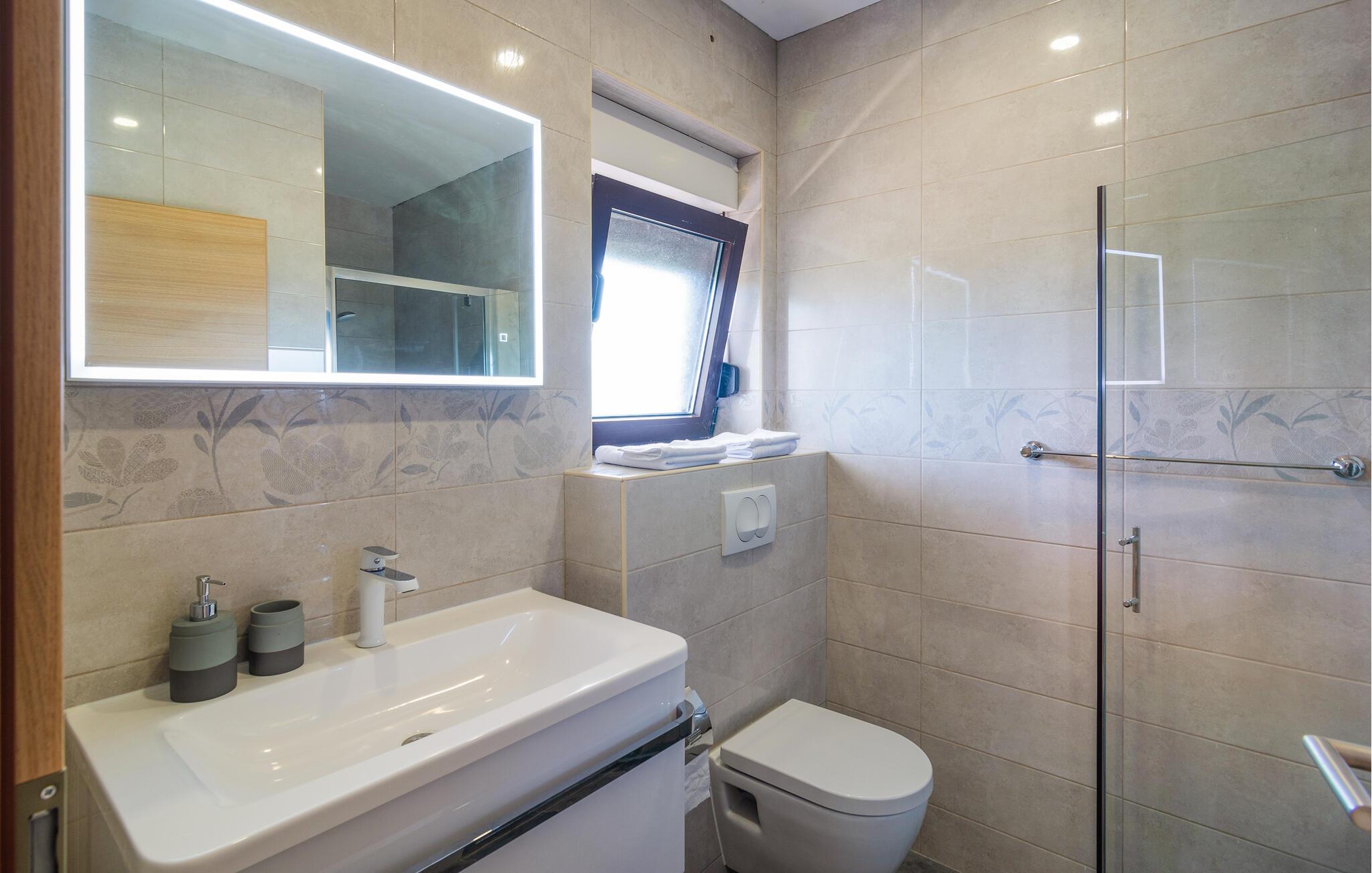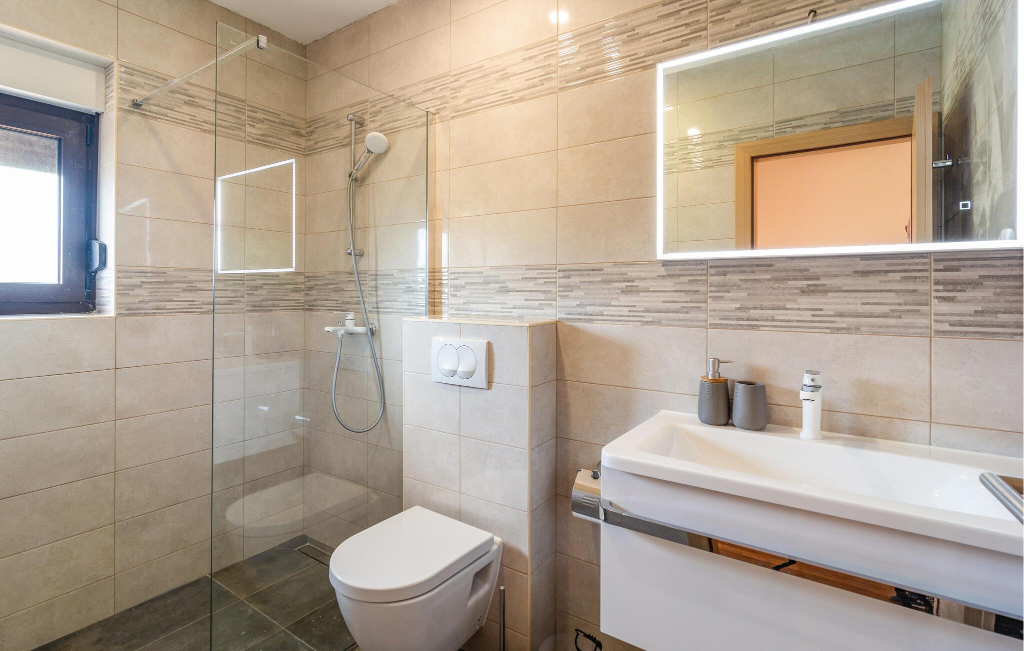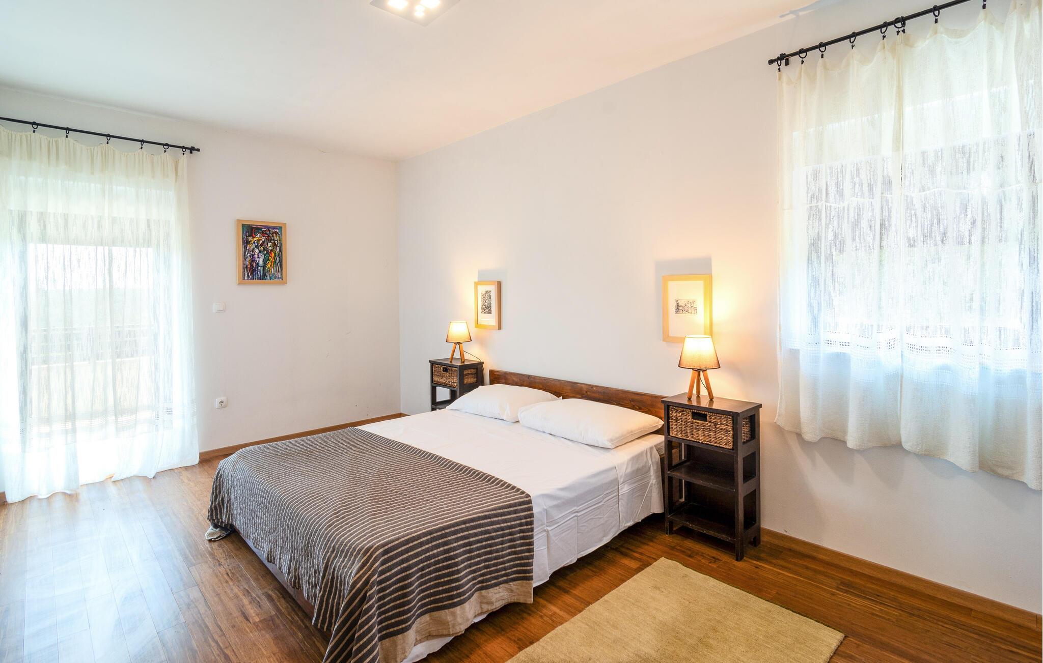 Tag en forfriskende dukkert i den private pool på varme sommerdage, og slap af på de komfortable liggestole, der omgiver poolen. Der står en grillplads til rådighed til hyggelige grillaftener, perfekt til at tilberede lokale specialiteter og nyde samværet med familien. Besøg også de nærliggende strande, der med deres krystalklare vand inviterer til badning og afslapning.