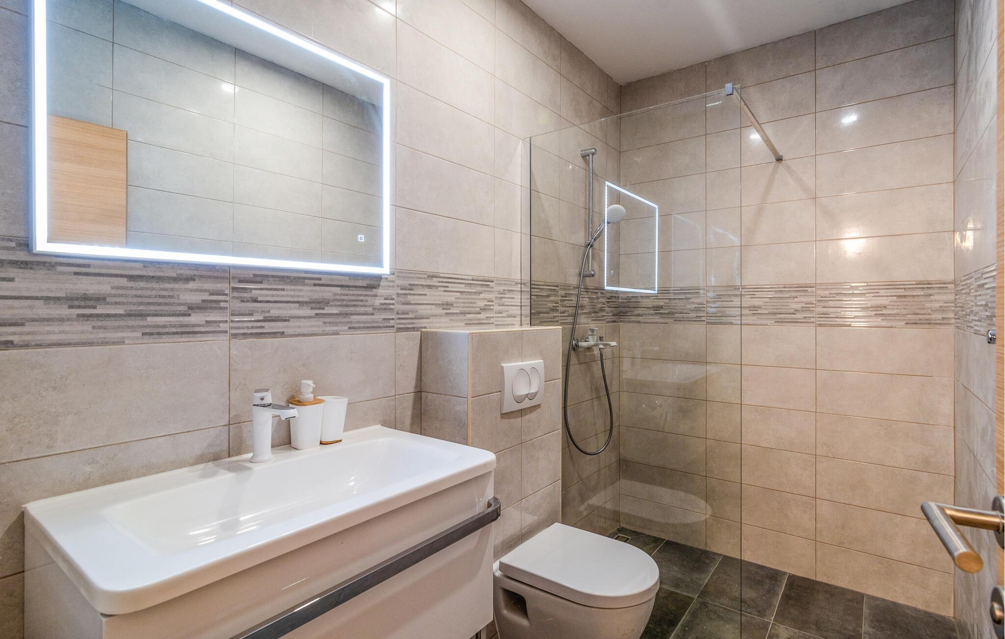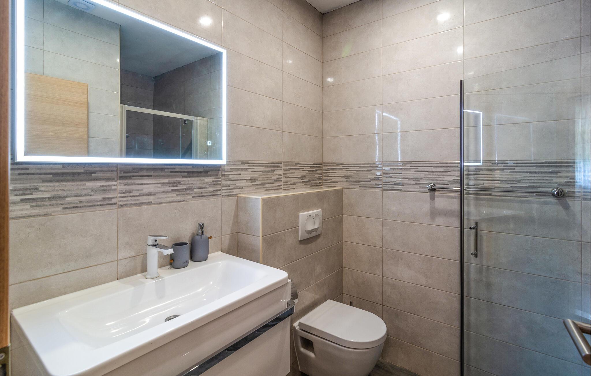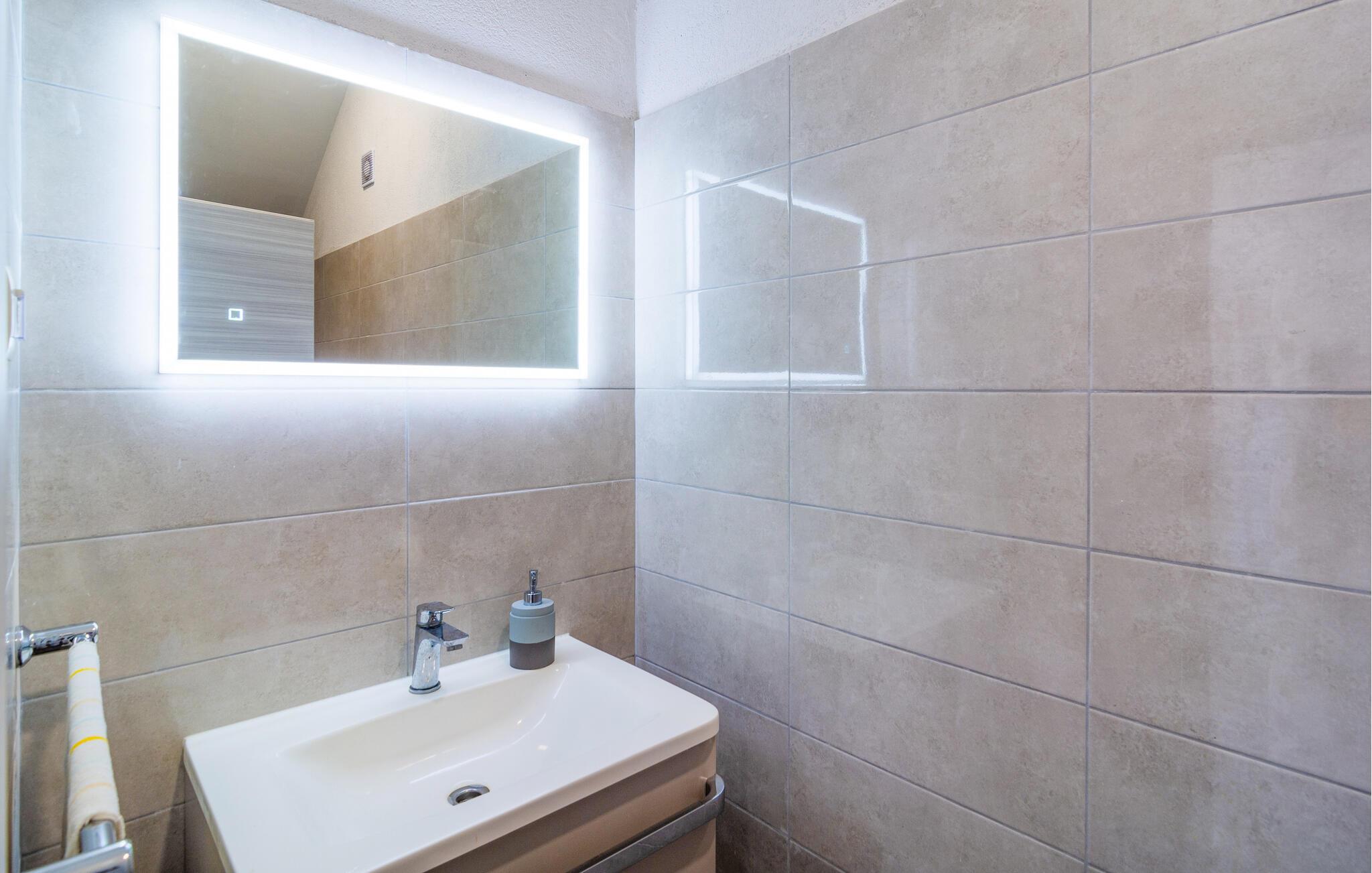Tag en forfriskende dukkert i den private pool på varme sommerdage, og slap af på de komfortable liggestole, der omgiver poolen. Der står en grillplads til rådighed til hyggelige grillaftener, perfekt til at tilberede lokale specialiteter og nyde samværet med familien. Besøg også de nærliggende strande, der med deres krystalklare vand inviterer til badning og afslapning.
