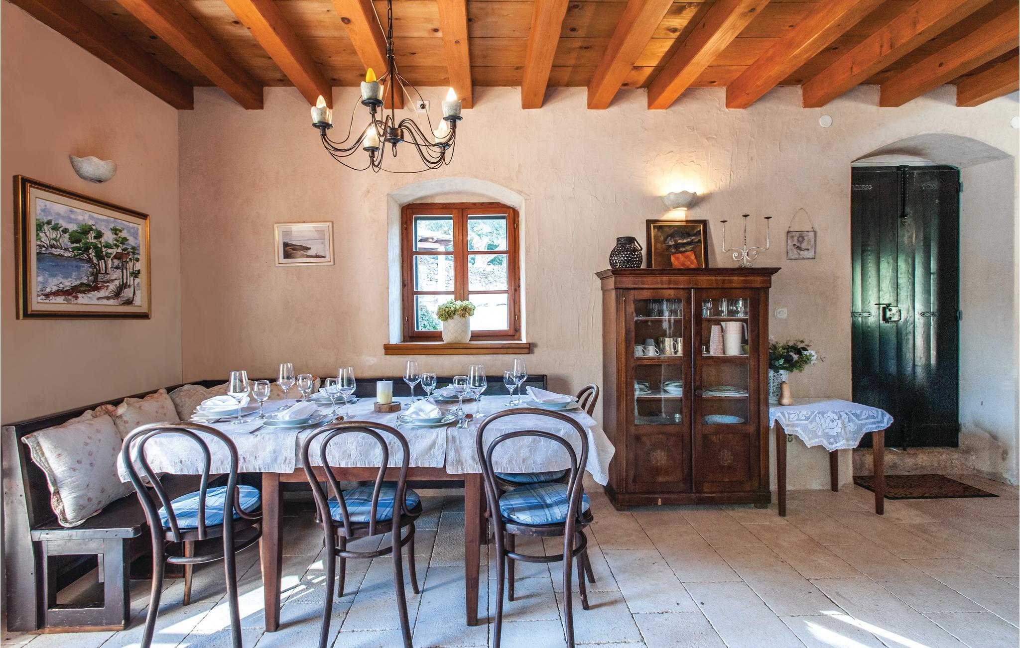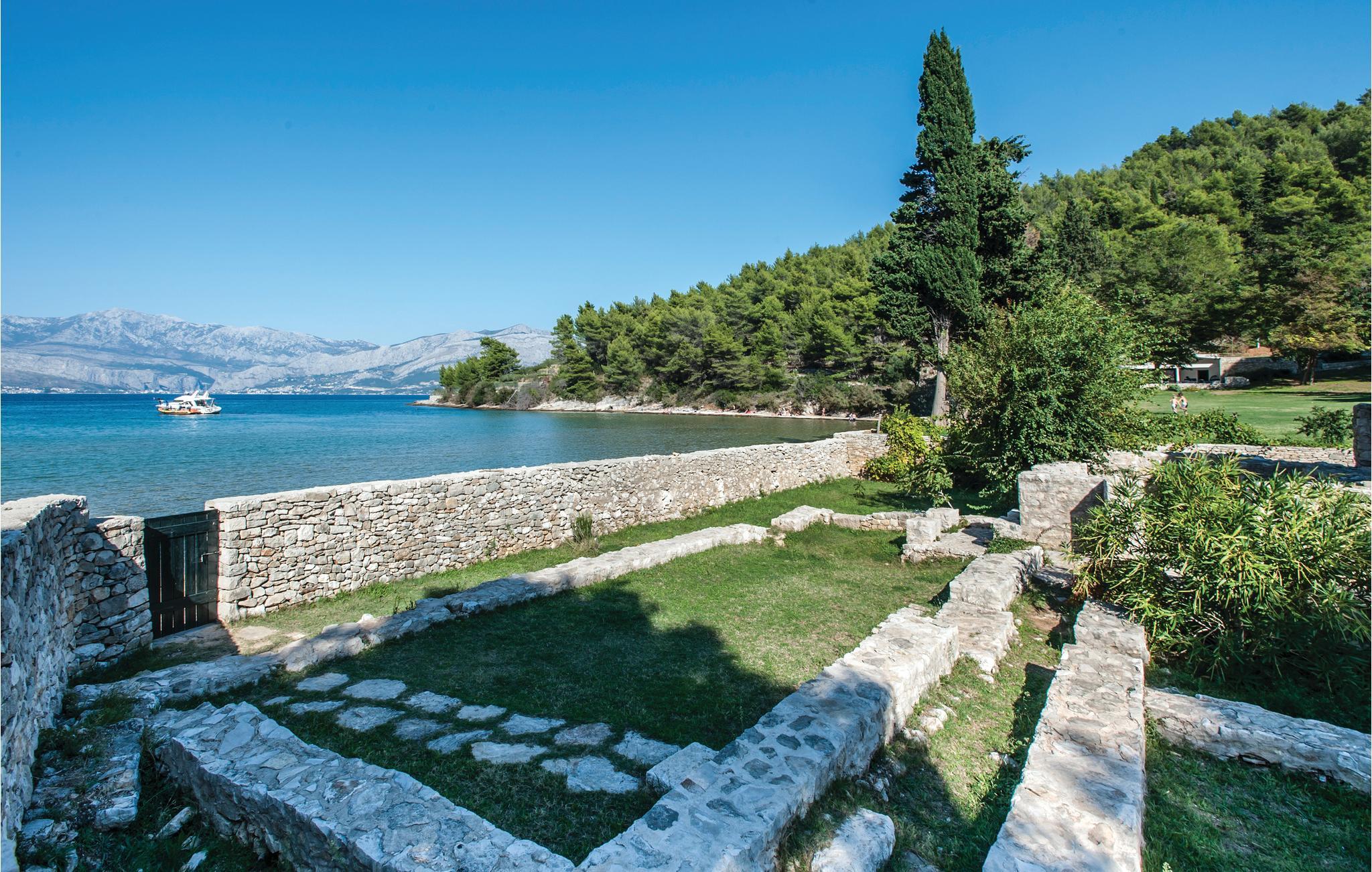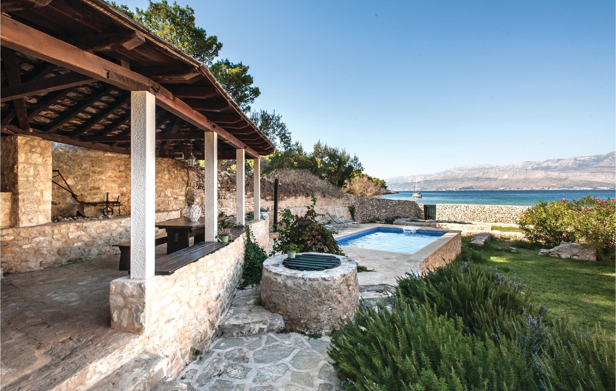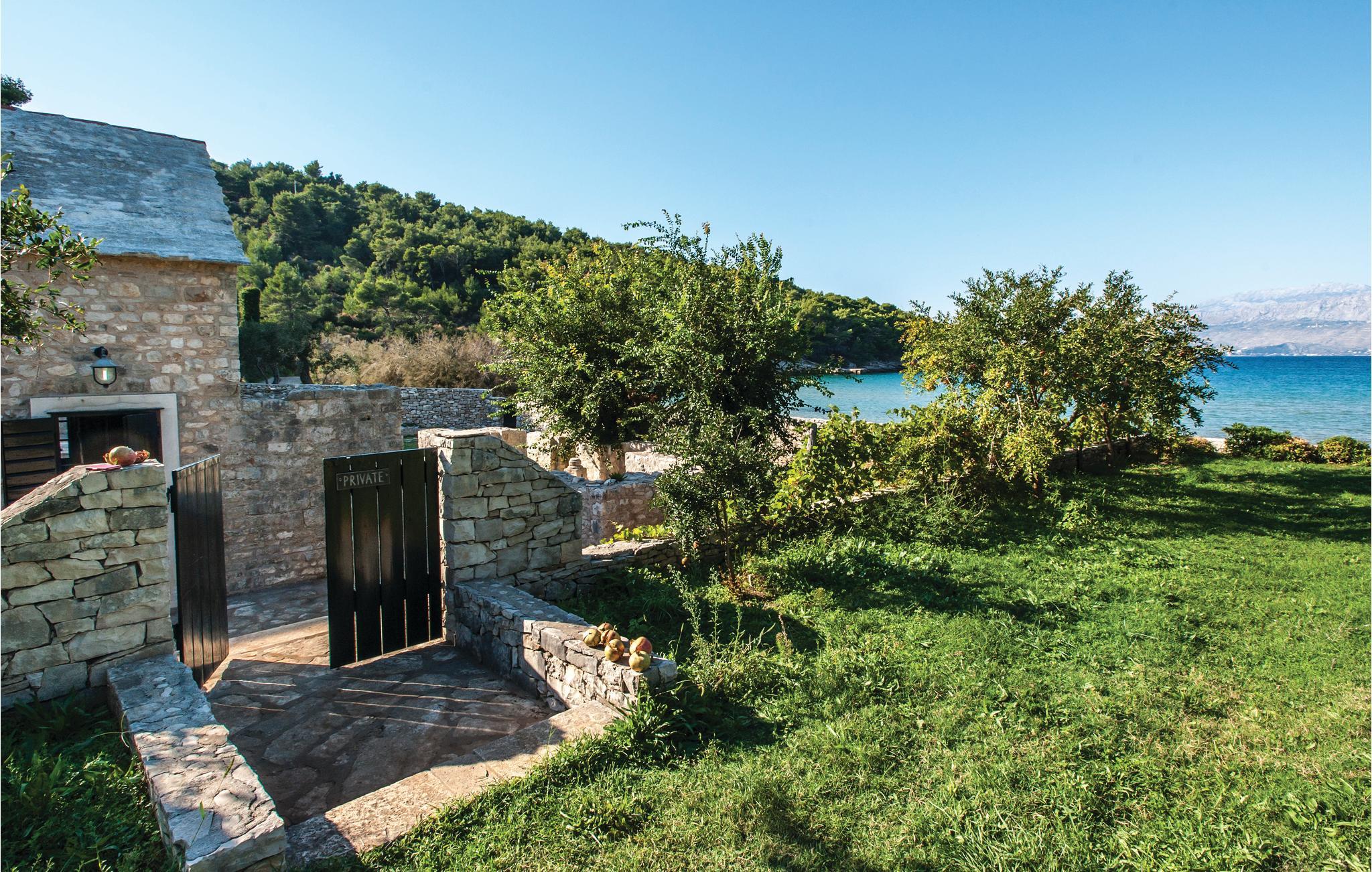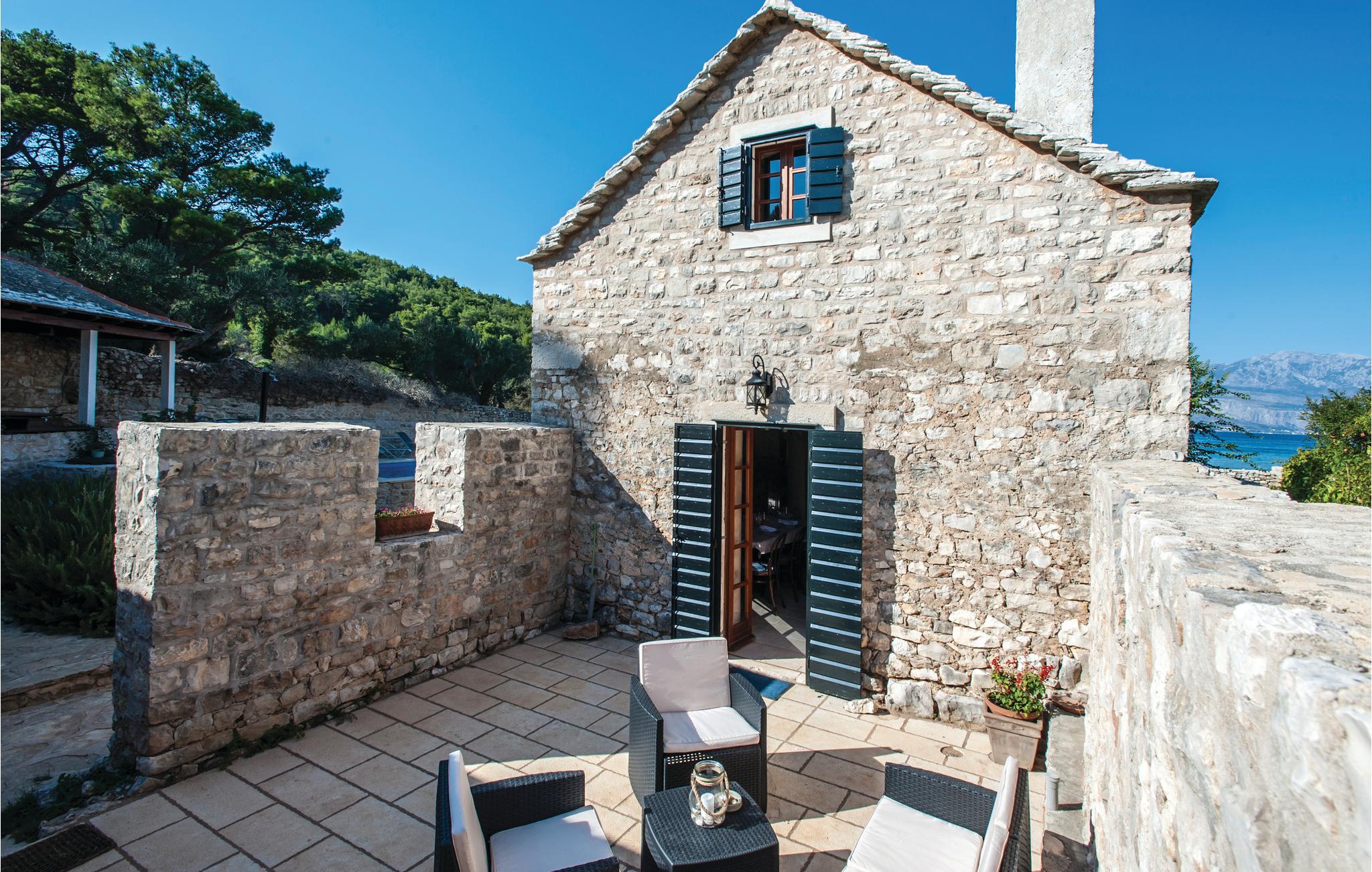 Kun et stenkast fra den mest populære sandstrand i Lovrecina-bugten på øen Brac ligger denne skønne villa. Feriehuset stammer fra det 12. århundrede, og ved renoveringen har man bevaret den originale stil i sten og træ. I stueetagen ligger køkkenet med en stengrill, så I kan lave lækker grillmad. Fra det komfortable opholdsområde kommer I ad en indvendig trappe til første sal, hvor laveste loftshøjde er 100 cm. Her ligger soveværelserne med badeværelse en suite. I den indhegnede have med de renoverede ruiner har en særlig atmosfære. I har også en overdækket terrasse med udendørs grill. I bugten er der en restaurant, der kun er åben i sommermånederne. Lovrencina-bugten kommer I til ad en smal vej, delvist med beton, ad en spadseresti eller med båd.