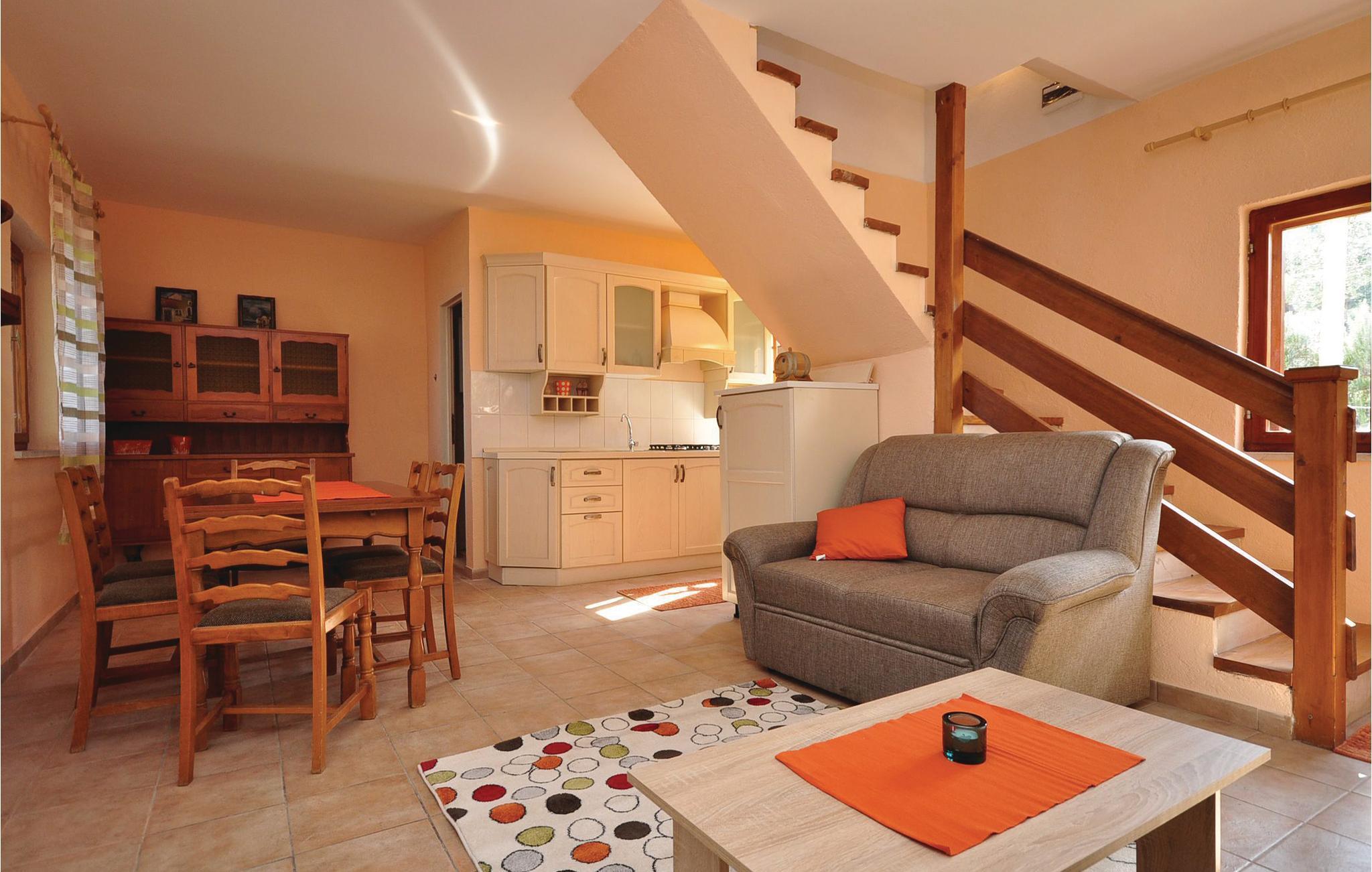Feriehuset ligger omgivet af oliventræer, der giver dejlig skygge, når I vil have en pause fra solens lune stråler. Husets to etager er forbundet med en stejl trappe, som kun delvist har gelænder. På loftsetagen går den laveste loftshøjde ned til 60 cm.