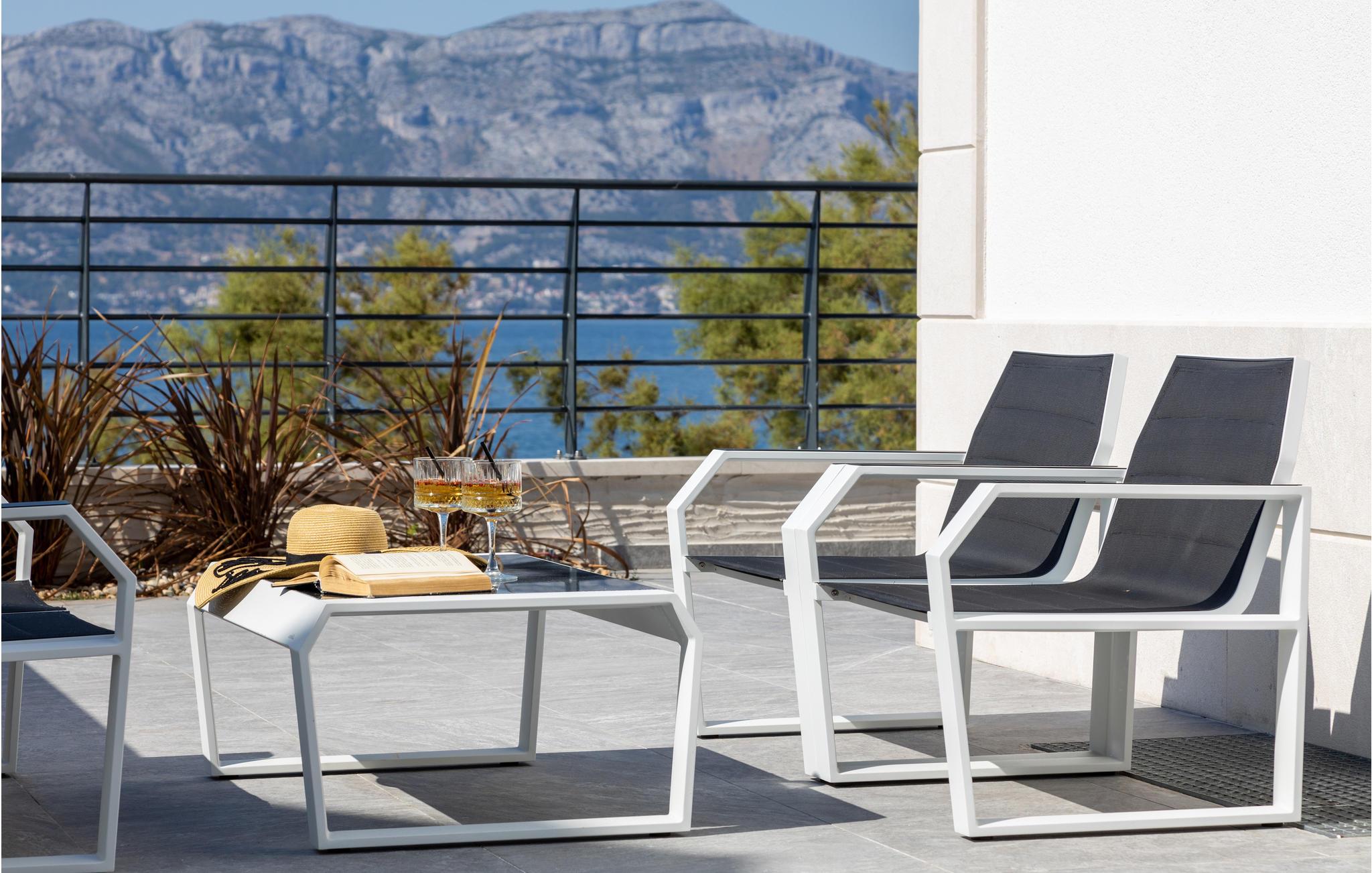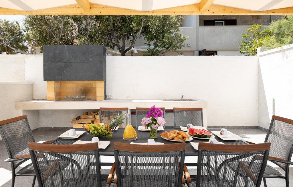 Glæd jer til et dejligt ophold i dette skønne feriehus, som har en fantastisk arkitektur, flotte faciliteter og sidst, men ikke mindst, en helt forrygende havudsigt. De skønne materialer og farvevalg skaber en harmonisk bolig, der bliver jeres trygge base under jeres ophold. Her kan I slappe af indendørs i de behagelige rammer, der køles ned af klimaanlægget og de brede klinkegulve. Når varmen er mest intens midt på dagen, kan I tage en lur i skyggen på terrassen eller snuppe en frisk dukkert i poolen. Der står også en grill klar, så I kan tilberede jeres sommerretter under åben himmel.