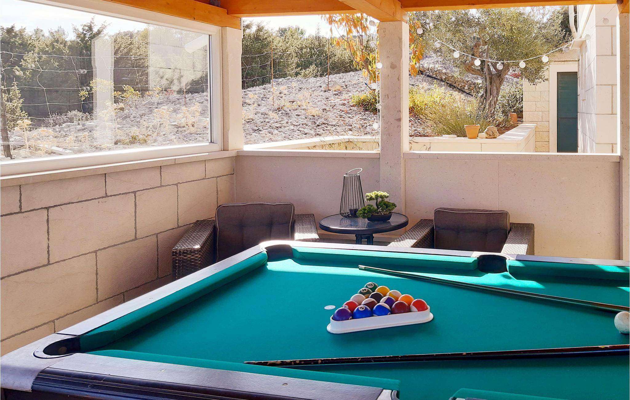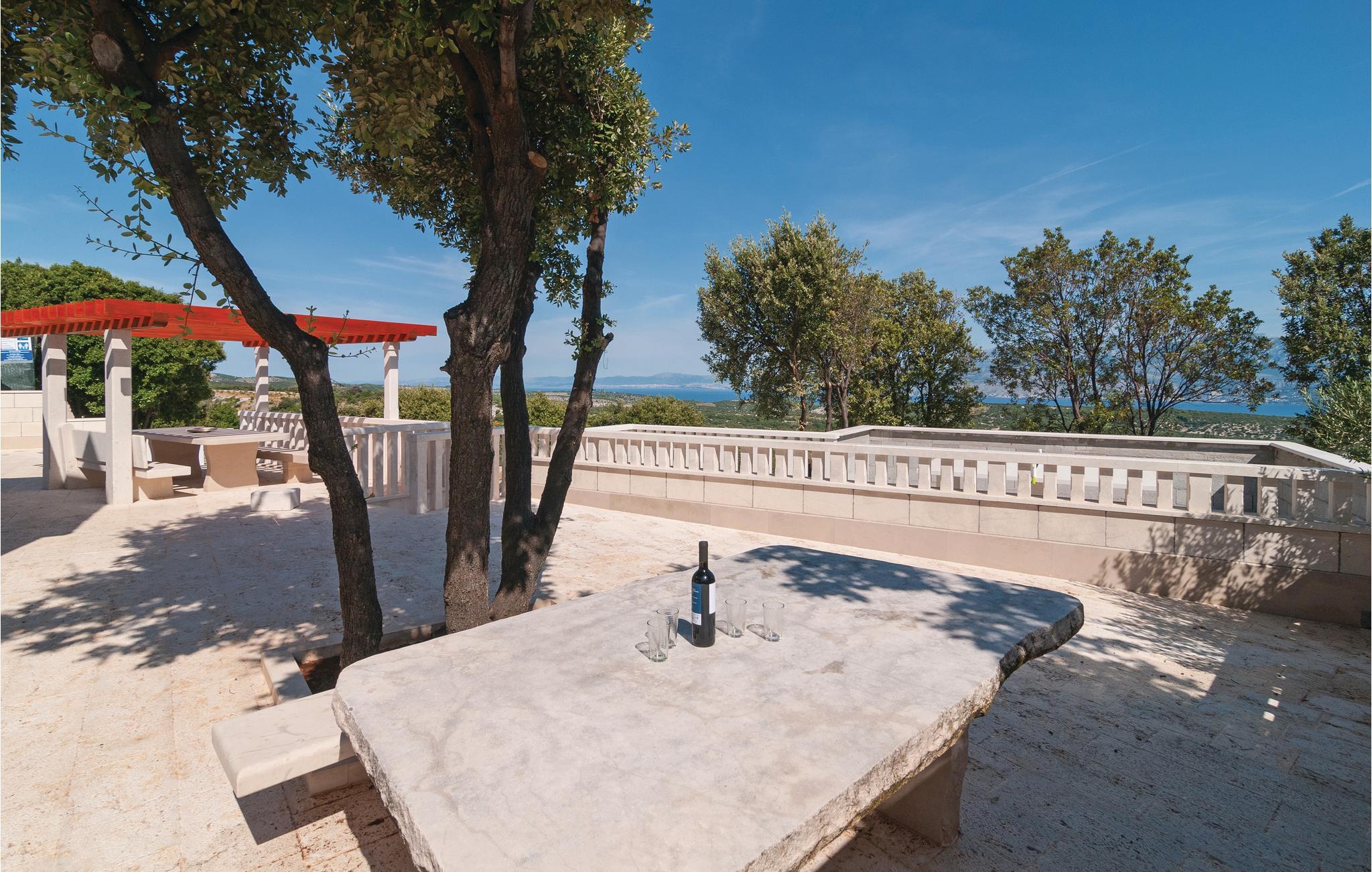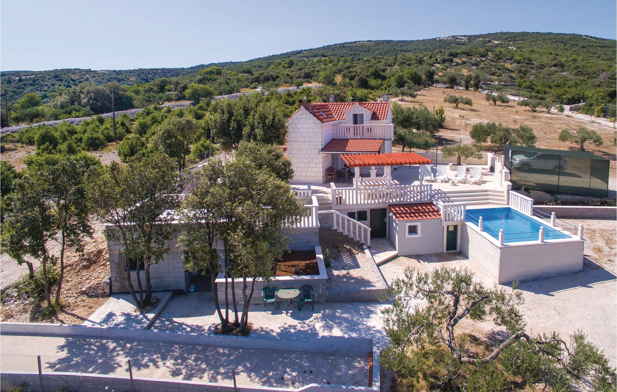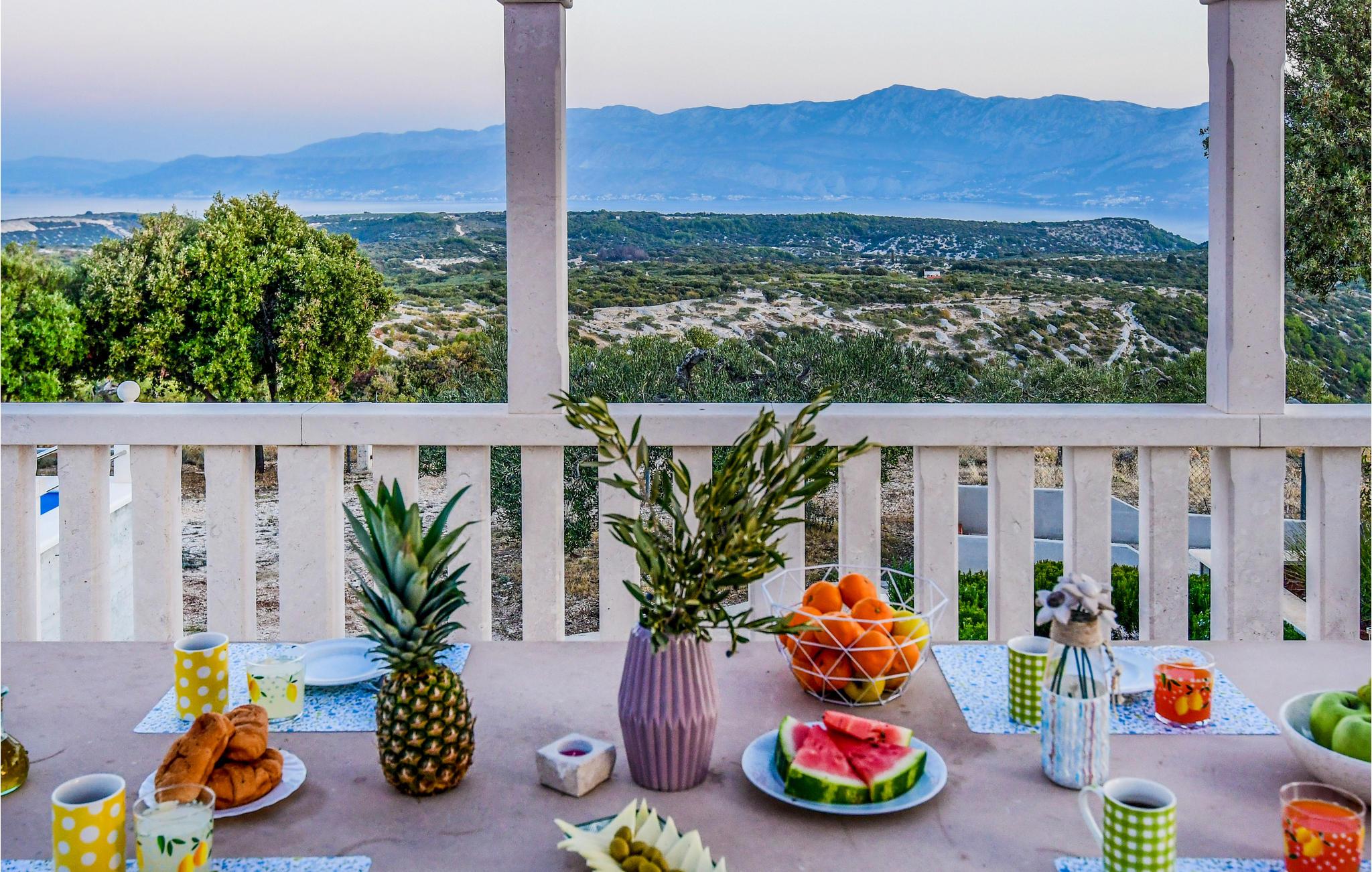 På få minutter i bil kommer I til byen Pucisca, hvor der er mange underholdningsmuligheder. Husets særkende er en stor terrasse, hvorfra der er en betagende panoramaudsigt over både bjerge og hav, den udsigt vil I huske længe efter ferien er slut. Loftsetage (laveste loftshøjde 117 cm) med tre soveværelser. S4 har eget badeværelse og indgang udefra.