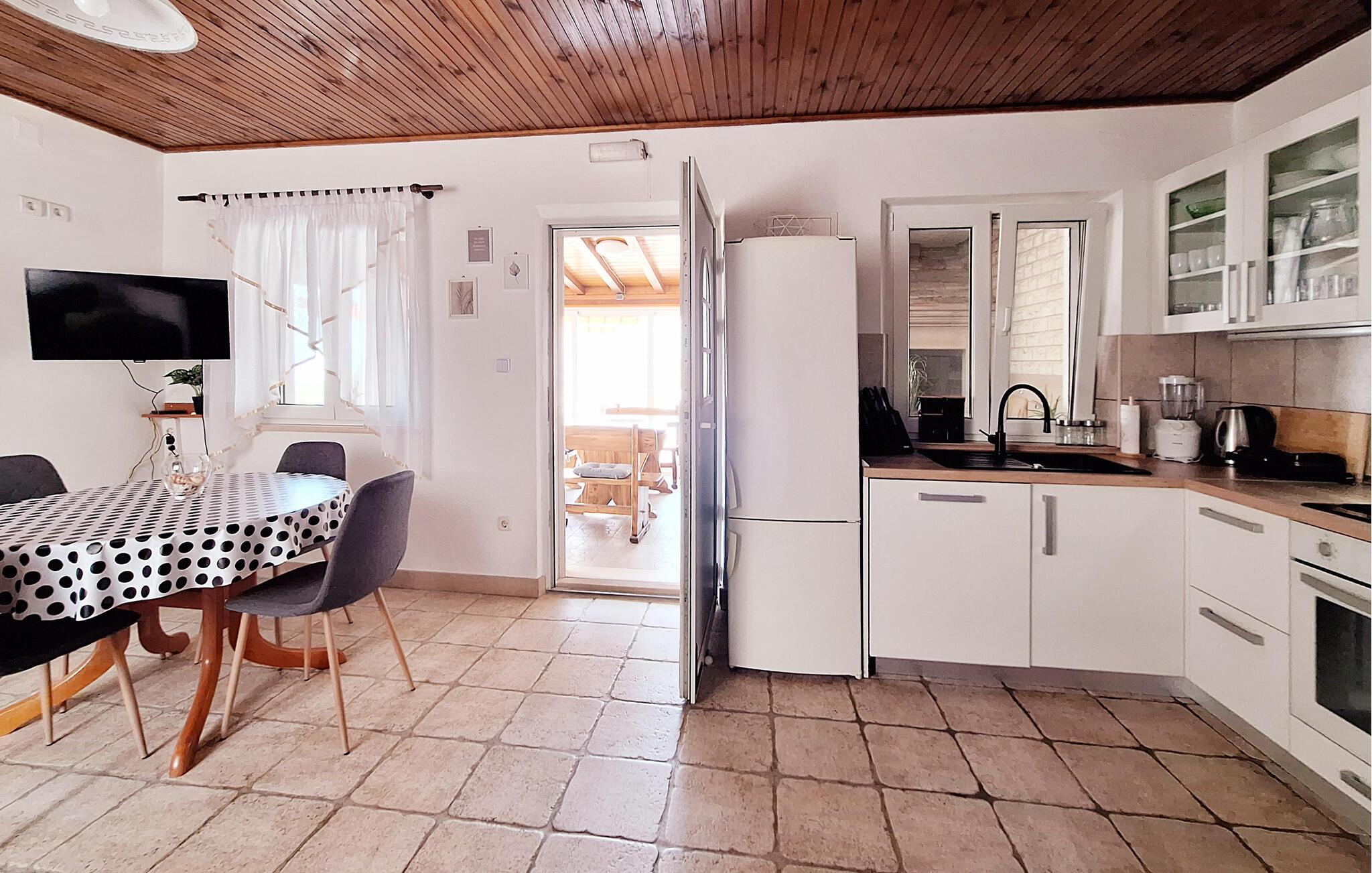 s indre er en rustik blanding af sten og træ. Slap af på den rummelige terrasse med grill. Den afsides beliggenhed sikrer en afslappet ferie.