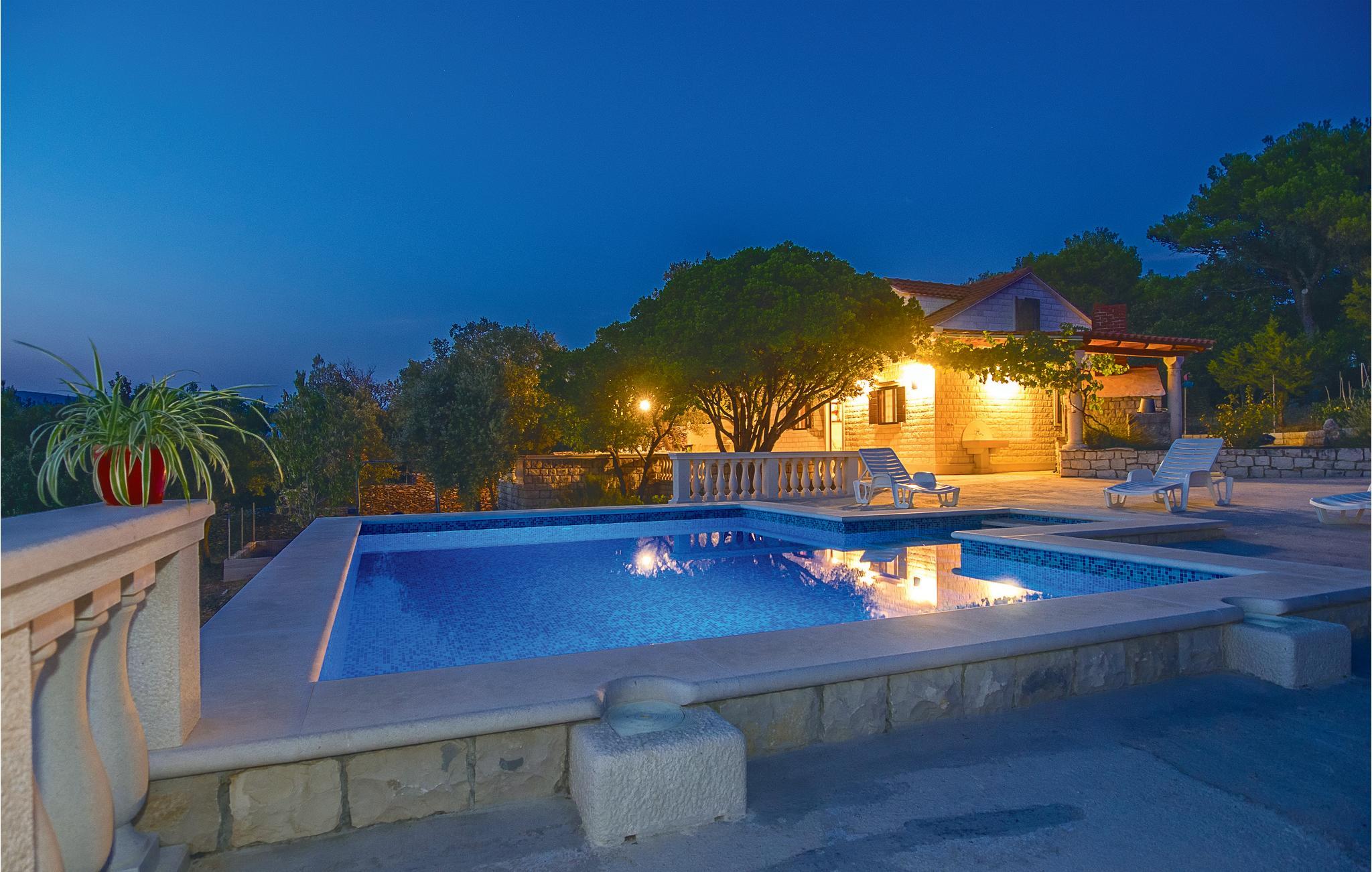 På en malerisk bakke, i den lille dalmatiske by Pucisca, med panoramaudsigt over havet, Bracs stenbrud samt det tilgrænsende fastland, ligger dette skønne feriehus. I huset er der to soveværelser, en opholdsstue med kamin, et køkken og et badeværelse. I stuen står en sovesofa. På første sal er der et soveværelse, med eget toilet. Feriehuset er omgivet af pinjeskov og oliventræer. Fra køkken og stue er der udgang til terrassen, der er overdækket med smukke slyngplanter. Tilbring dagene udenfor og server jeres måltider ved det store stenbord hvor I også kan grille. Den sidste del af vejen op til huset er en grusvej.