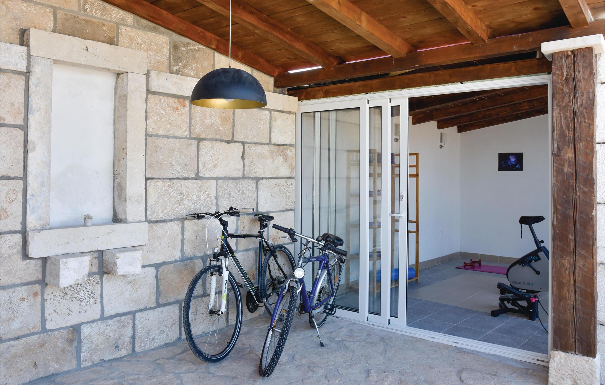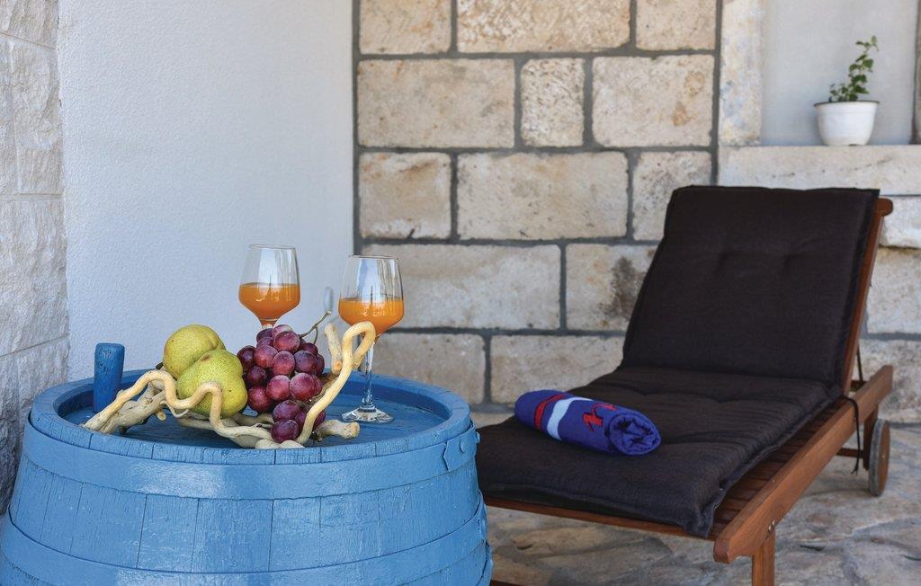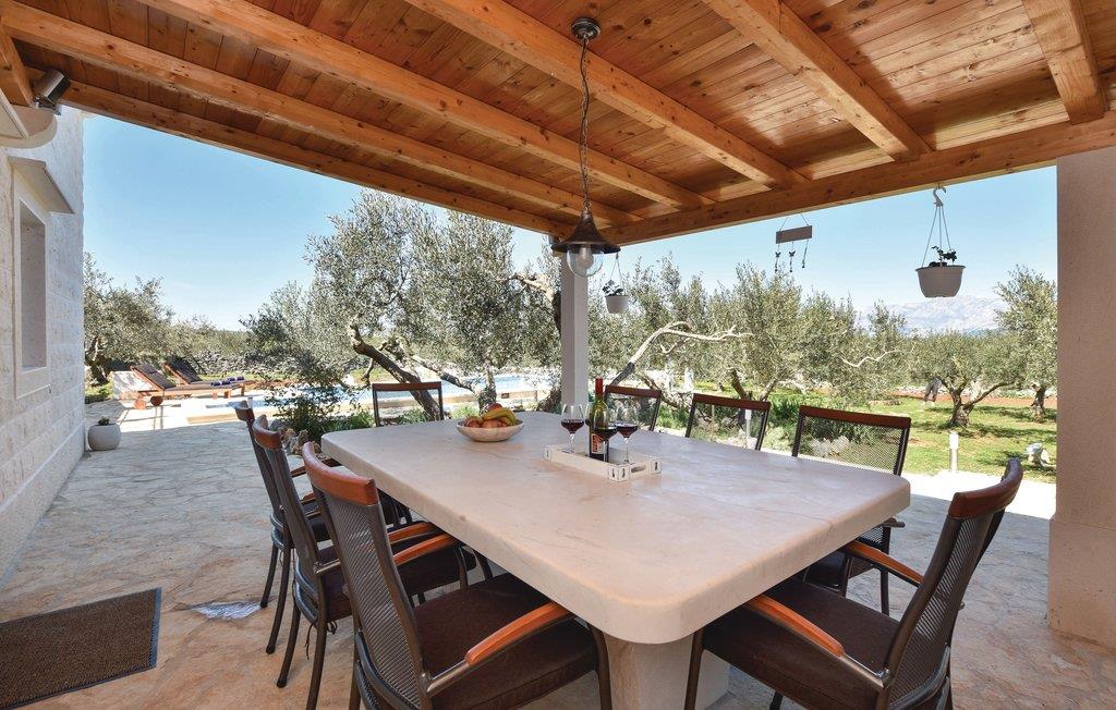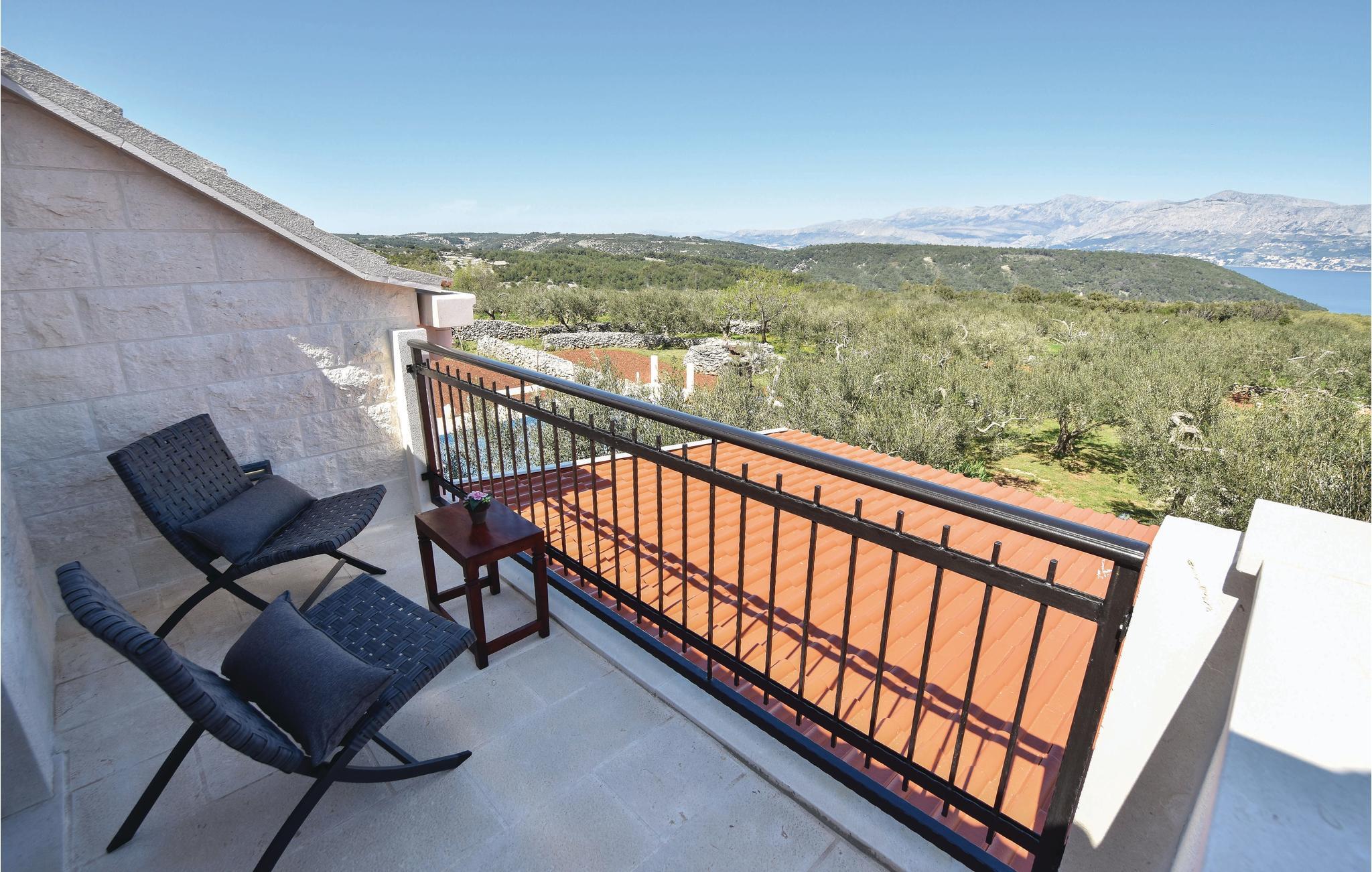 På øen Brac, ovenfor den maleriske landsby Pucišca ligger dette moderne feriehus med pool. Det ligger på en enorm grund på næsten en hektar, hvorfra der er udsigt til det blå hav og bjergene. Øen er kendt for sin kaltsten af høj kvalitet, som helt tilbage fra antiken er udvundet i øens stenbrud. Den velplejede grund er helt indhegnet, og ligger langt fra byens larm omgivet af olivenlunde. I stueetagen er der køkken med spisekrog, et badeværelse samt opholdsrum med adgang til en overdækket terrasse med kamin. Første sal består af to soveværelser, og her skråner væggene fra 160 cm fra gulvet. Soveværelse nr. 3 har eget badeværelse ligger i stueetagen og har separat indgang udefra. Den forfriskende pool og solområdet vil være feriens midtpunkt, men også badminton samt husets to cykler kommer til at forsøde ferien for de aktive feriegæster. Tilkørslen til huset har grusvej de sidste 500 m.