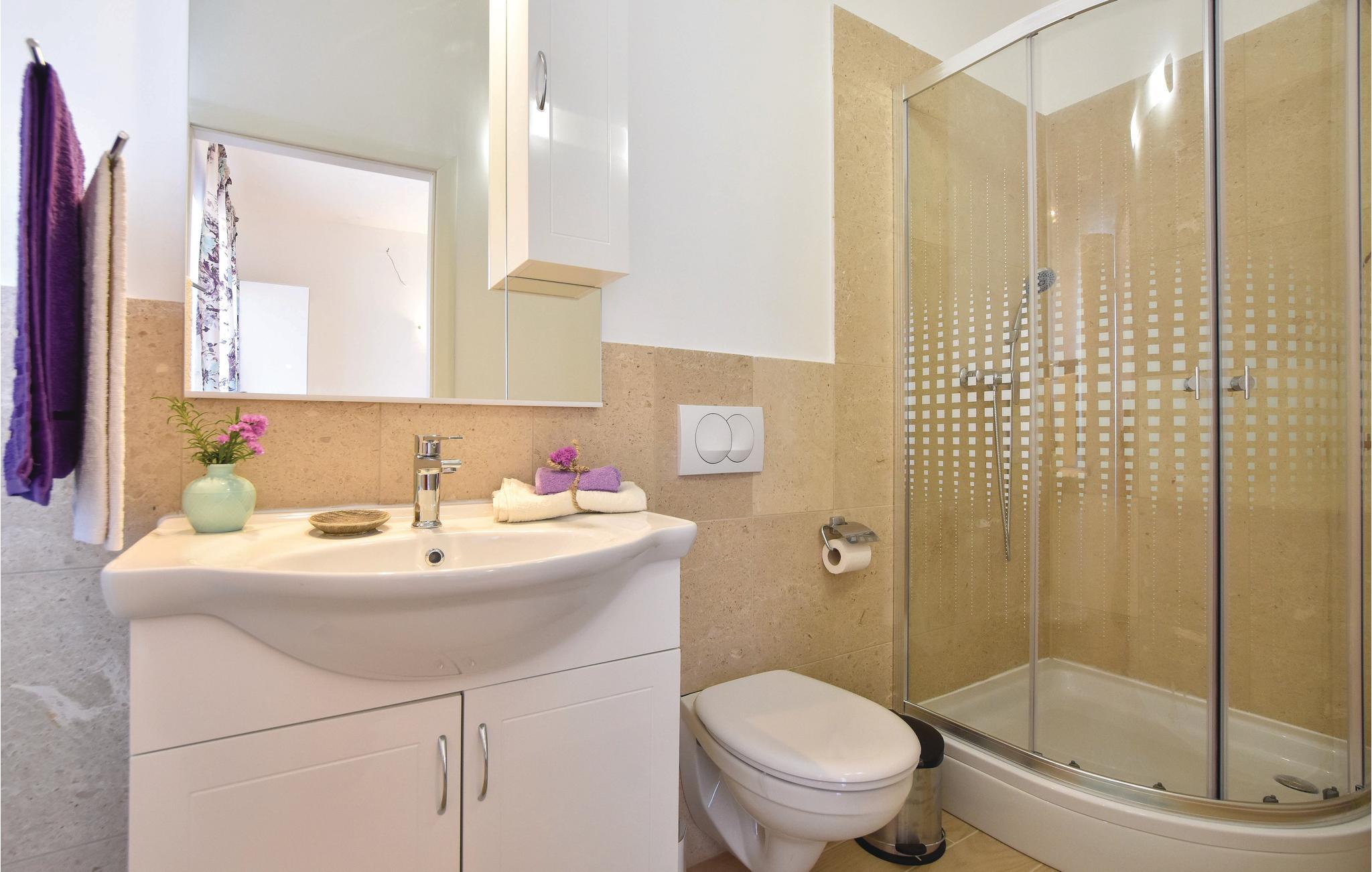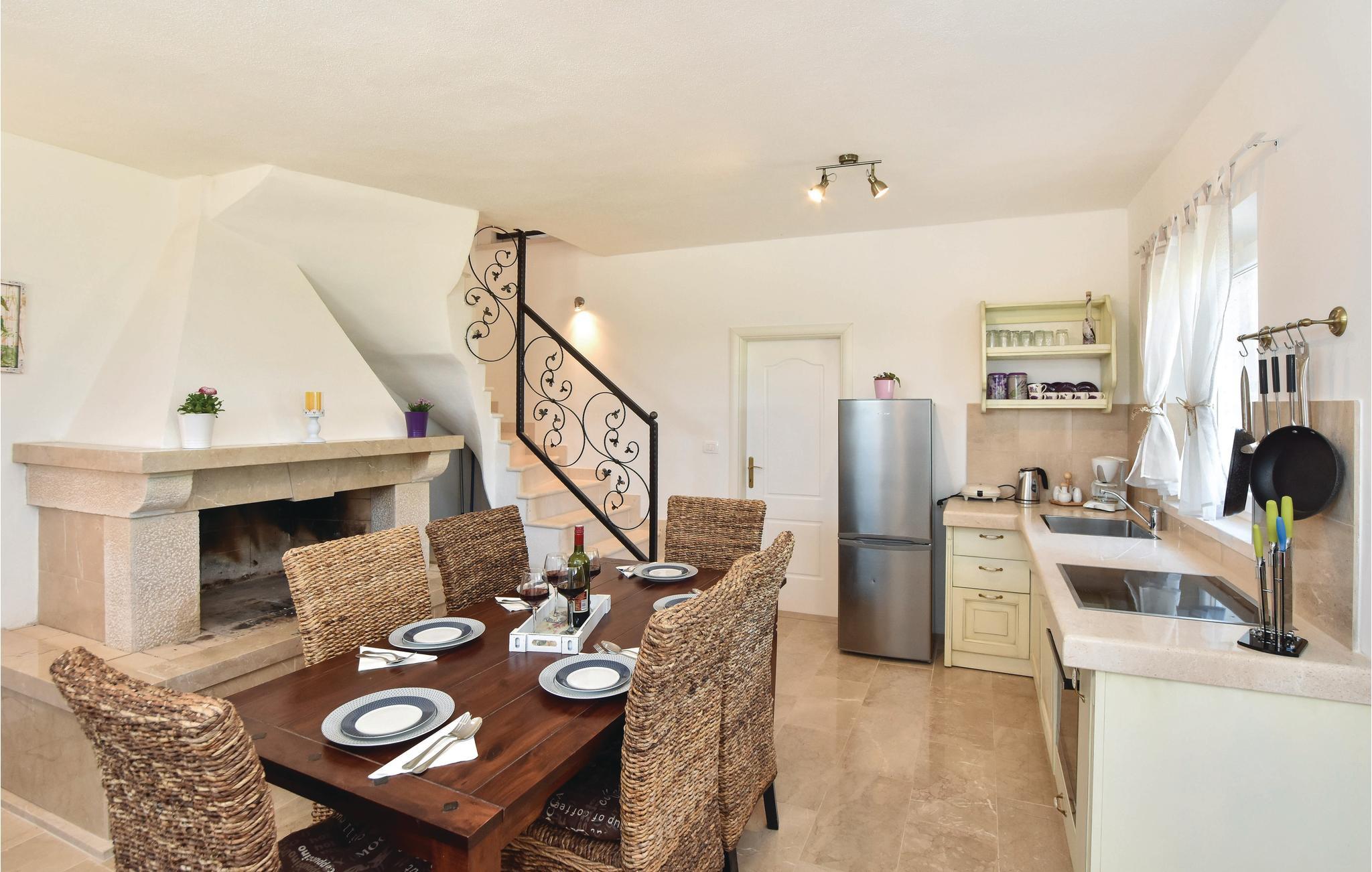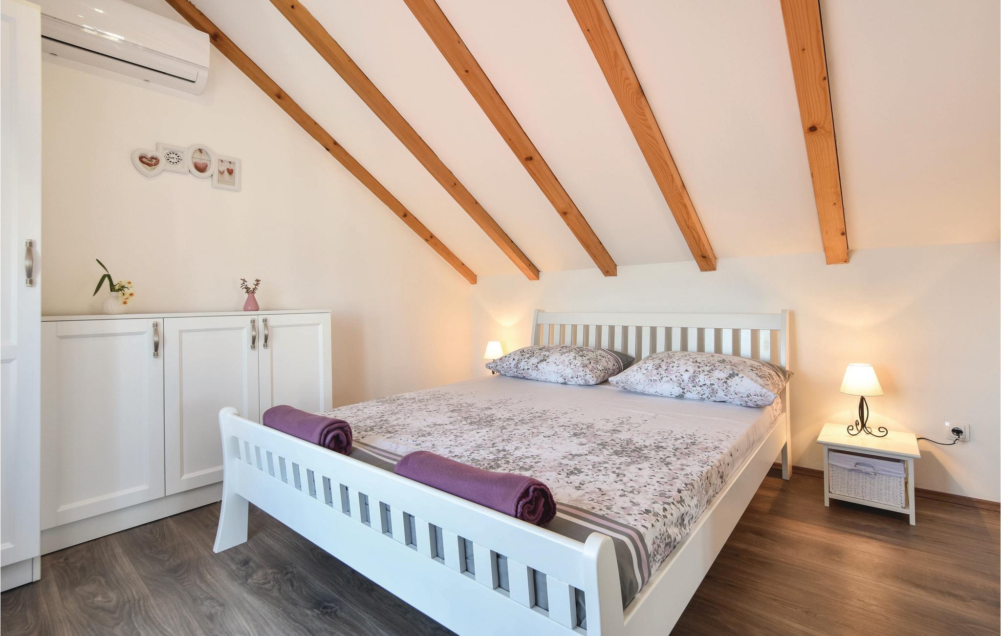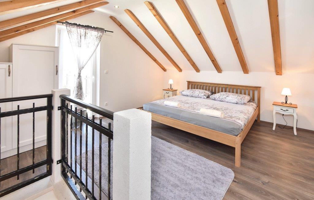 På øen Brac, ovenfor den maleriske landsby Pucišca ligger dette moderne feriehus med pool. Det ligger på en enorm grund på næsten en hektar, hvorfra der er udsigt til det blå hav og bjergene. Øen er kendt for sin kaltsten af høj kvalitet, som helt tilbage fra antiken er udvundet i øens stenbrud. Den velplejede grund er helt indhegnet, og ligger langt fra byens larm omgivet af olivenlunde. I stueetagen er der køkken med spisekrog, et badeværelse samt opholdsrum med adgang til en overdækket terrasse med kamin. Første sal består af to soveværelser, og her skråner væggene fra 160 cm fra gulvet. Soveværelse nr. 3 har eget badeværelse ligger i stueetagen og har separat indgang udefra. Den forfriskende pool og solområdet vil være feriens midtpunkt, men også badminton samt husets to cykler kommer til at forsøde ferien for de aktive feriegæster. Tilkørslen til huset har grusvej de sidste 500 m.