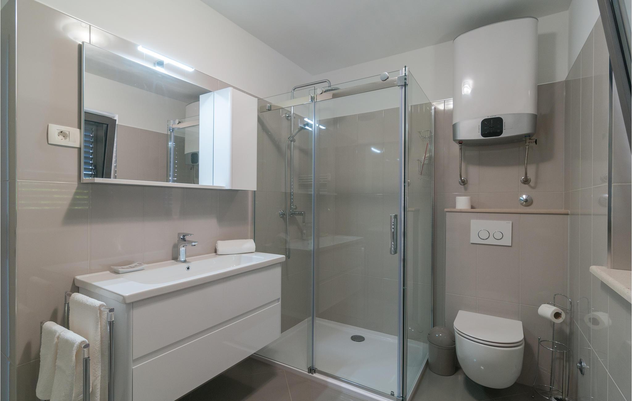 I tilbringer jeres ferie kun 2 km fra byens centrum, hvor I finder butikker, et marked, apotek, posthus, restauranter og caféer, mens havet med sine smukke strande ligger blot 100 m væk. Dér finder I en restaurant, der serverer lokale retter, autentiske kroatiske køkkener og to dejlige loungebarer lige ved havet.