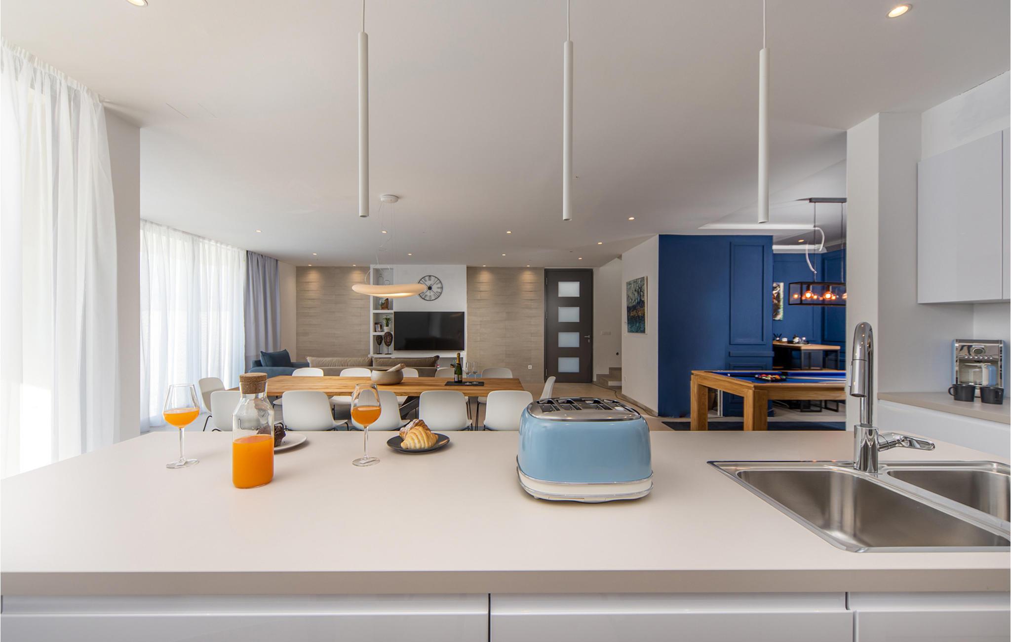 Hvis I leder efter luksuriøs og charmerende indkvartering, er I kommet til det rigtige sted. Den moderne villa ligger i en smuk bugt med udsigt over havet i Splitska på øen Brac og har 6 soveværelser, 6 badeværelser, et fuldt udstyret køkken, en rummelig spiseplads og en solbadet stue. Den fuldt airconditionerede villa inkluderer mange faciliteter til underholdning og rekreation: opvarmet udendørs pool, sauna, træningsudstyr, billard, PlayStation og hjemmebiografen.
