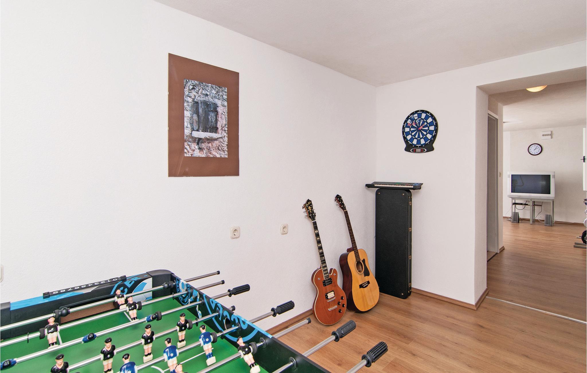 Dette kønne feriehus ligger i byen Supetar og kun få minutters gang fra byens centrum og den nærmeste sandstrand, der er ideel til familier med børn. Den rummelige terrasse er som skabt til hyggelige grillaftener og samvær. Huset har også et fitness- og et aktivitetsrum. Den idylliske lille by Supetar ligger kun en halv times kørsel væk fra den kendte strand Zlatni rat i Bol. Den gode færgeforbindelse i Supetar gør en tur til Split til en fornøjelse, hvor i vil beundre Diokletians palads og andre seværdigheder. Ud over en garage er her også en overdækket parkeringsplads.
