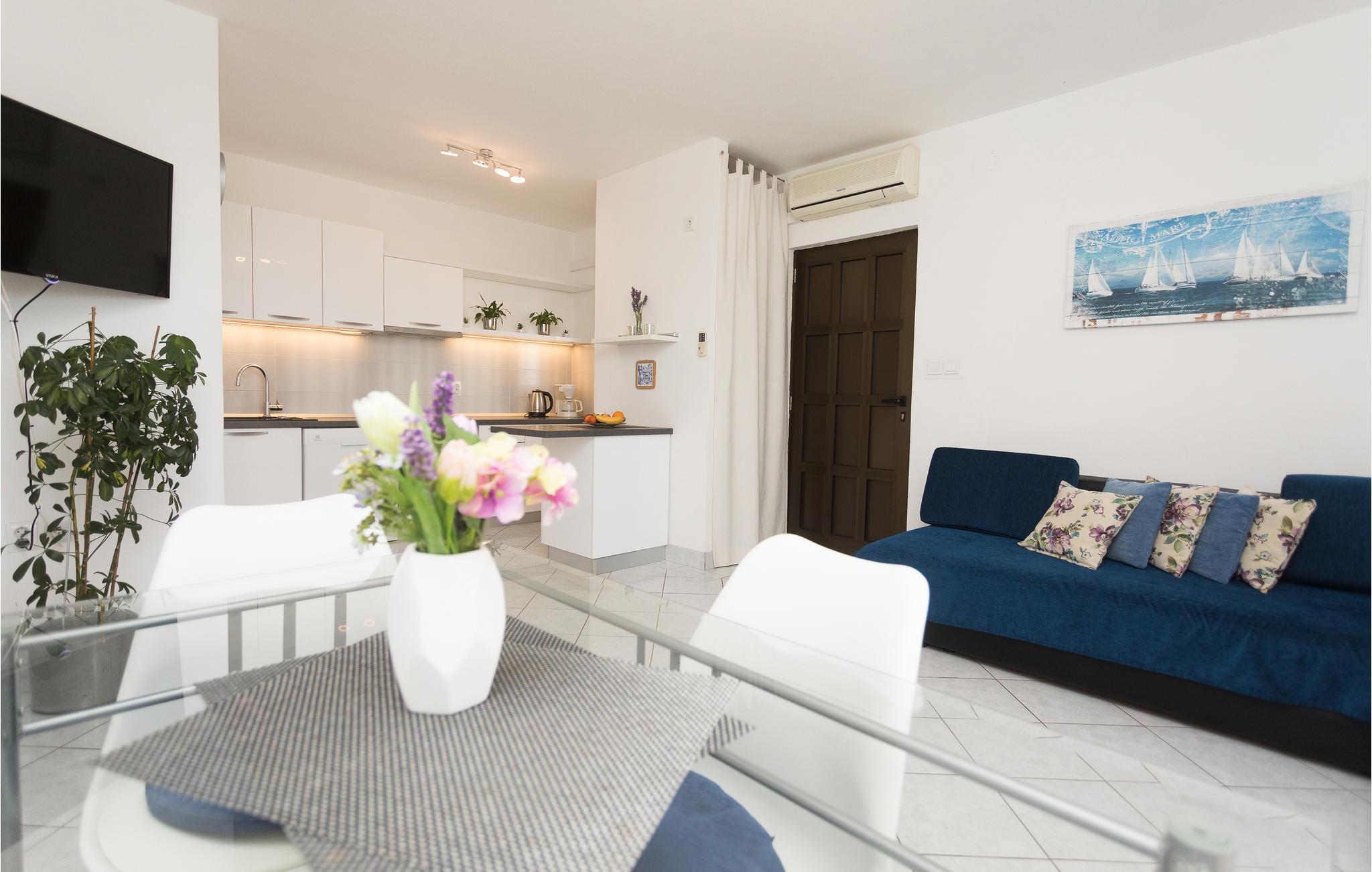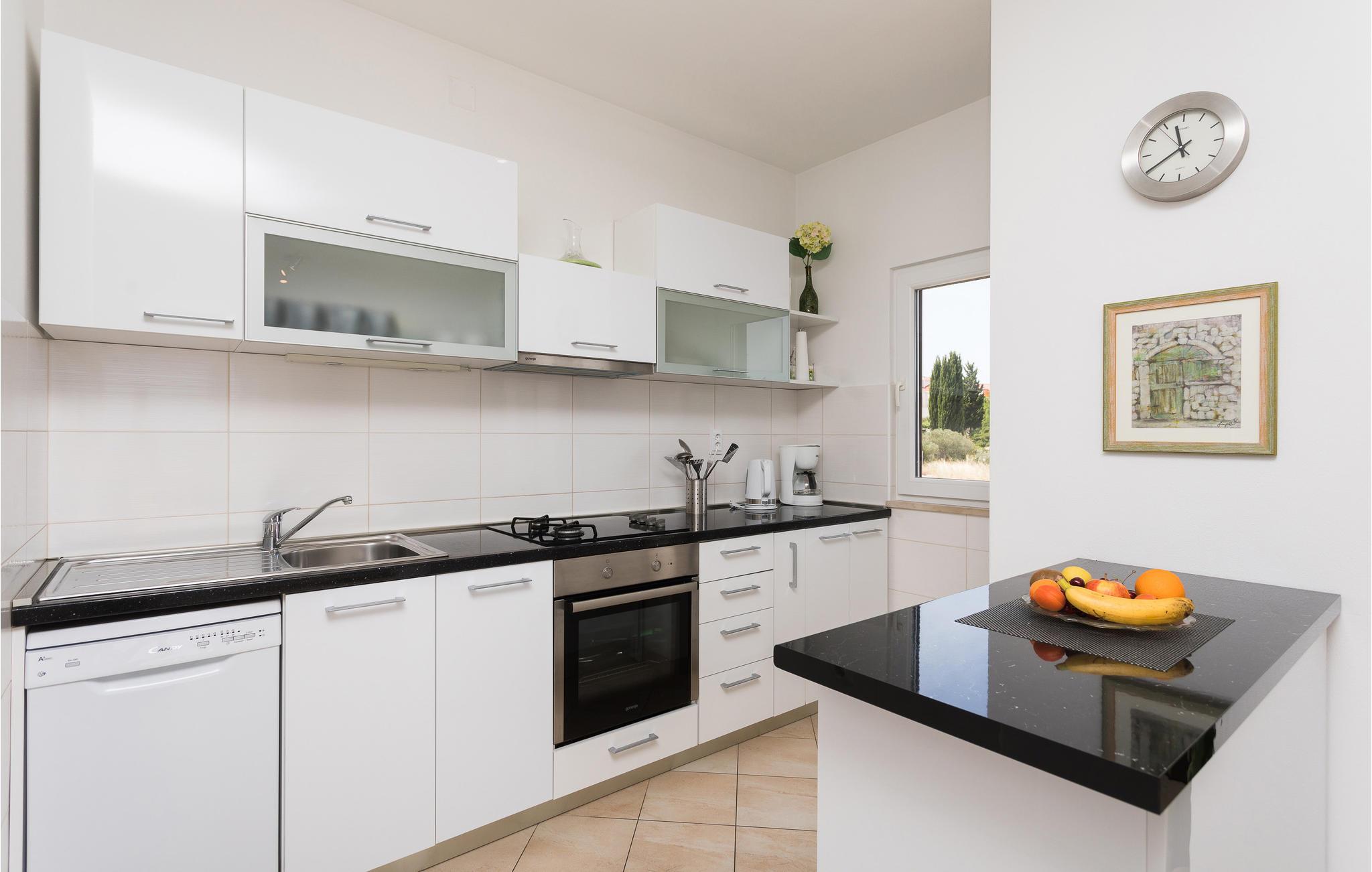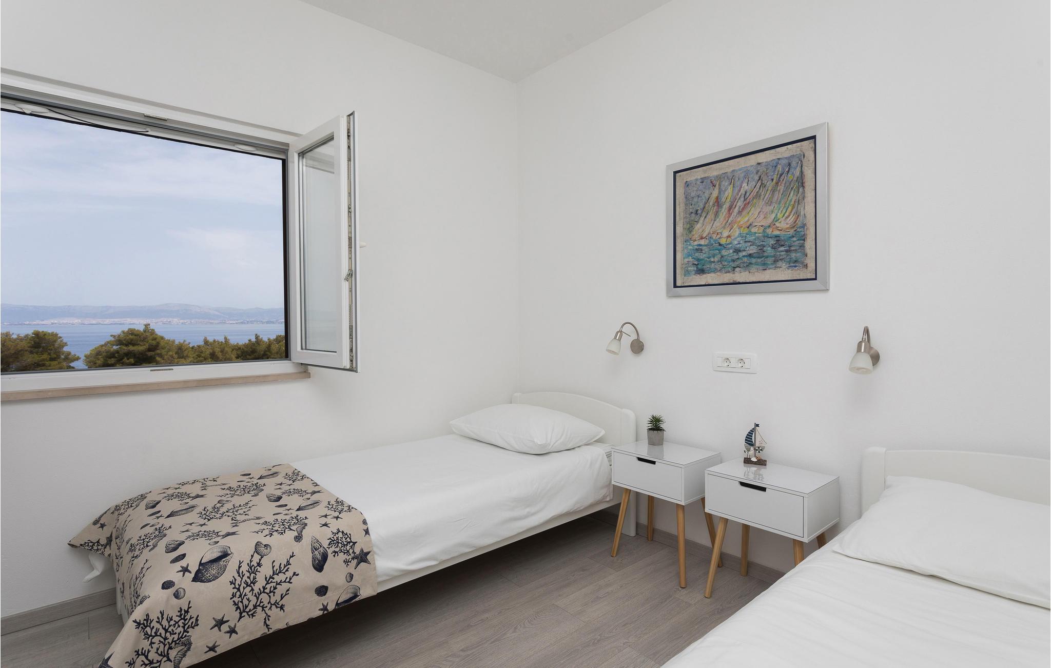Træd ind i dette smagfuldt indrettede feriehus, der ligger i kystbyen Sutivan på øen Brac og kun nogle minutters gang fra den skønne stenstrand og byens centrum. Atmosfæren er lys og venlig, og huset fortryller med en skøn panoramaudsigt over havet, som I kan nyde på den ene af terrasserne, mens I forfrisker jer med kolde drinks. Tilbring hyggelige grillaftener i den dejlige have med legeredskaber til de mindste. Feriehuset består af to separate ferielejligheder, der er forbundet med udendørs trappe.