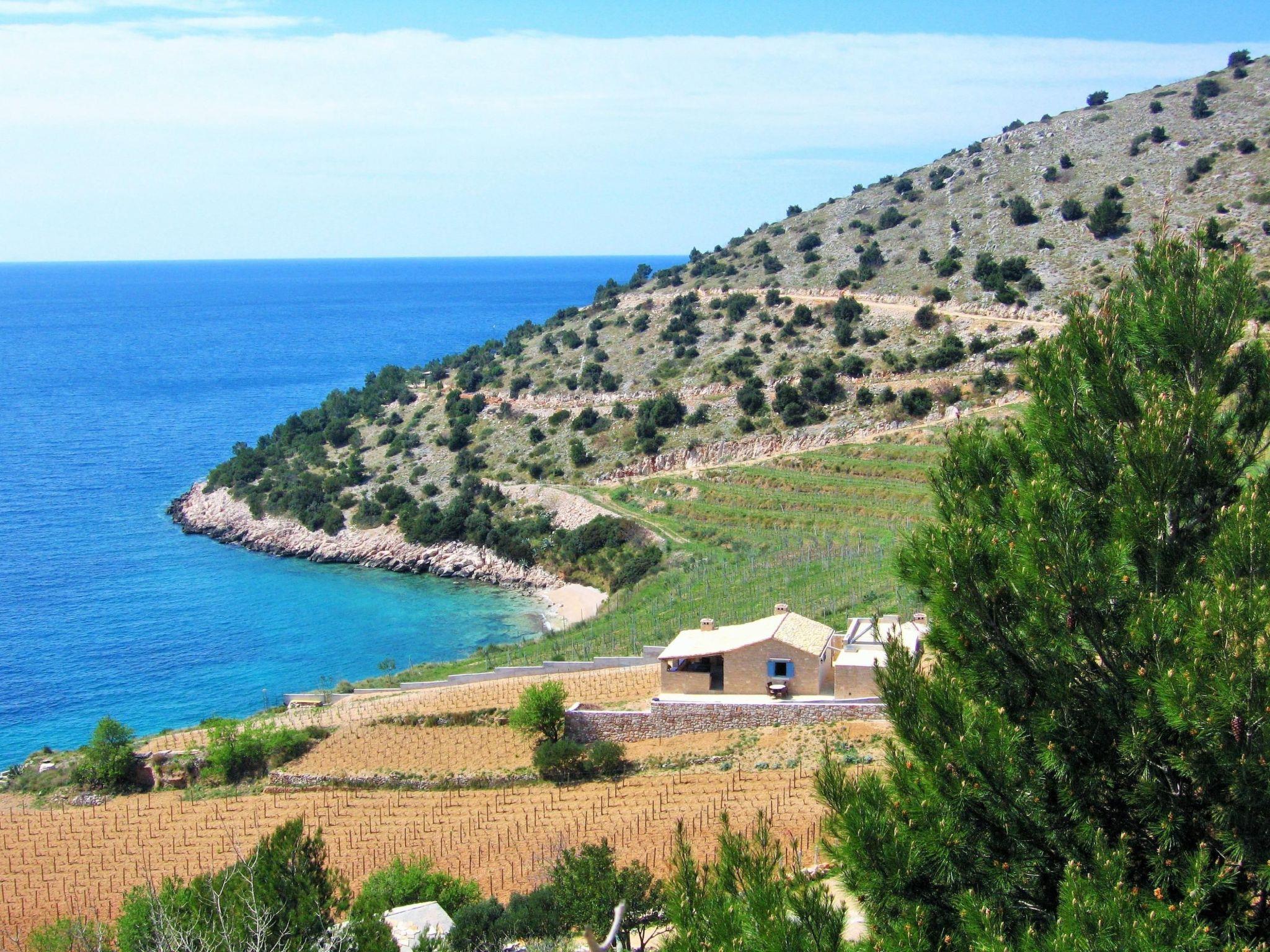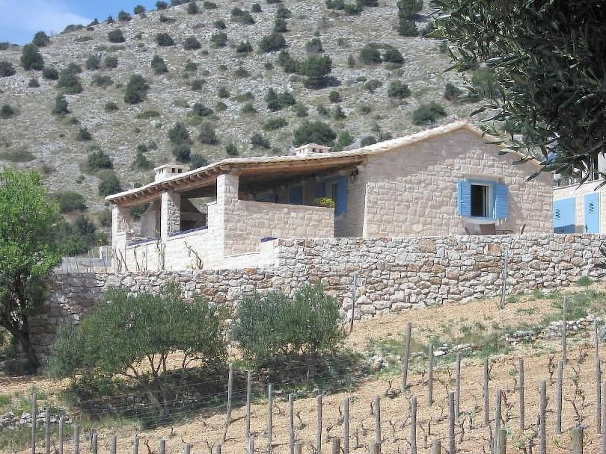 The stone holiday house is located behind three hills with an impressive view of Hvar and other islands.