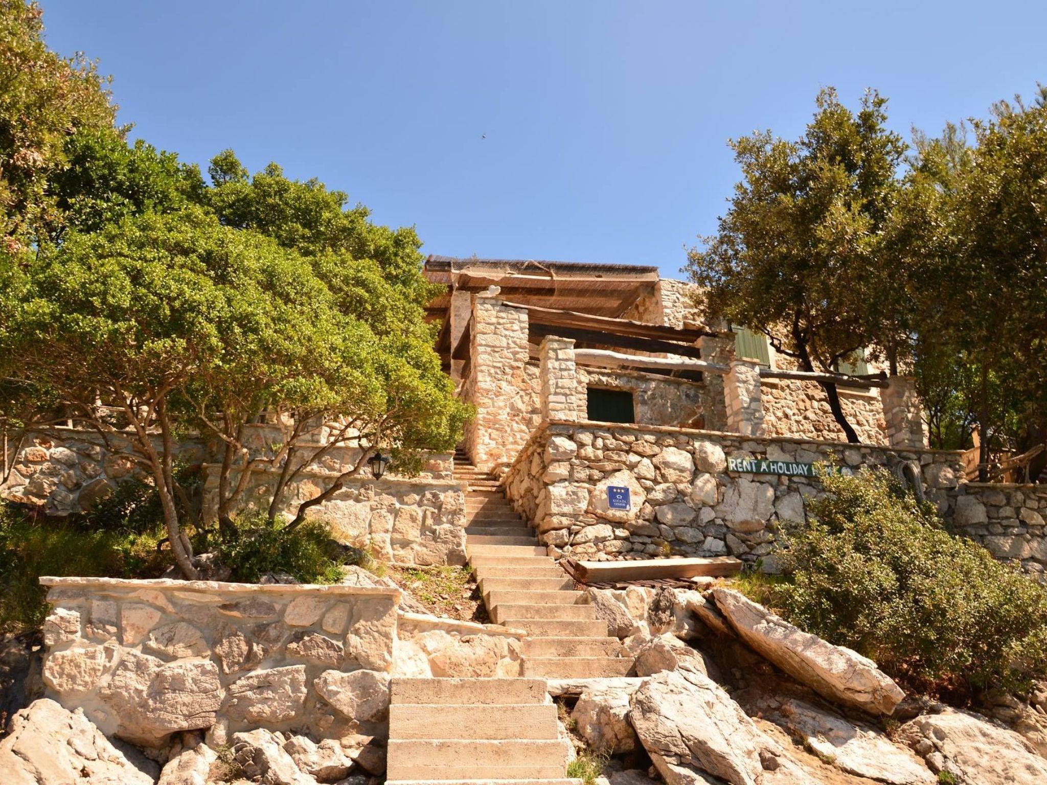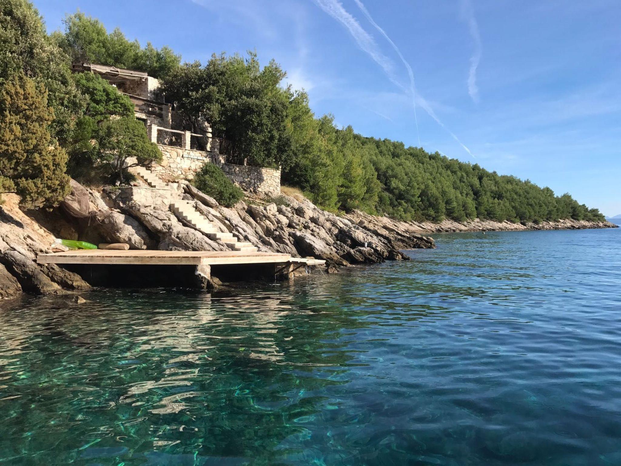 This detached single-family house made of natural stone stands alone on the island Brac in a bay ten metres from the sea, with its own wooden jetty and mooring. It can only be accessed by boat. The owners take guests there by speedboat on arrival in ten minutes and collect them there again on departure day.