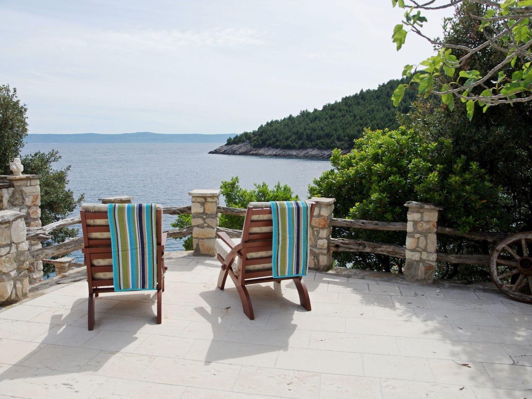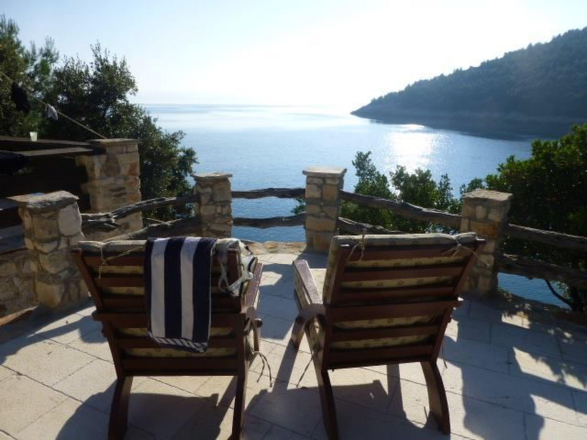 The 5000m² site is in a bay right by the sea and has several sea-view terraces, as well as a grill station (firewood available free of charge) and a dining table with a bench. The terrace with a grill in front of the entrance area, with access to the kitchen, is roofed. Apart from passing boats, nobody can be seen and you are completely undisturbed. The only two neighbouring houses are out of site and rarely occupied. The house has its own mooring for anchoring and its own access to the sea (rocky beach and since April 2016 an extended wooden jetty right above the water of around 30m²). A motorboat of 5PS or more can be hired in addition through the owner upon agreement. Guests can be instructed in driving the boat and anchoring etc. The outdoor car parking space is safe and free throughout your stay, or there is parking available on request in a lockable garage at a supplementary charge. Pets are allowed.
