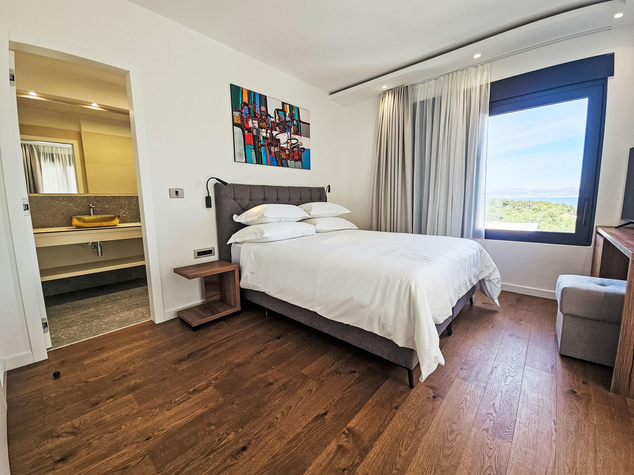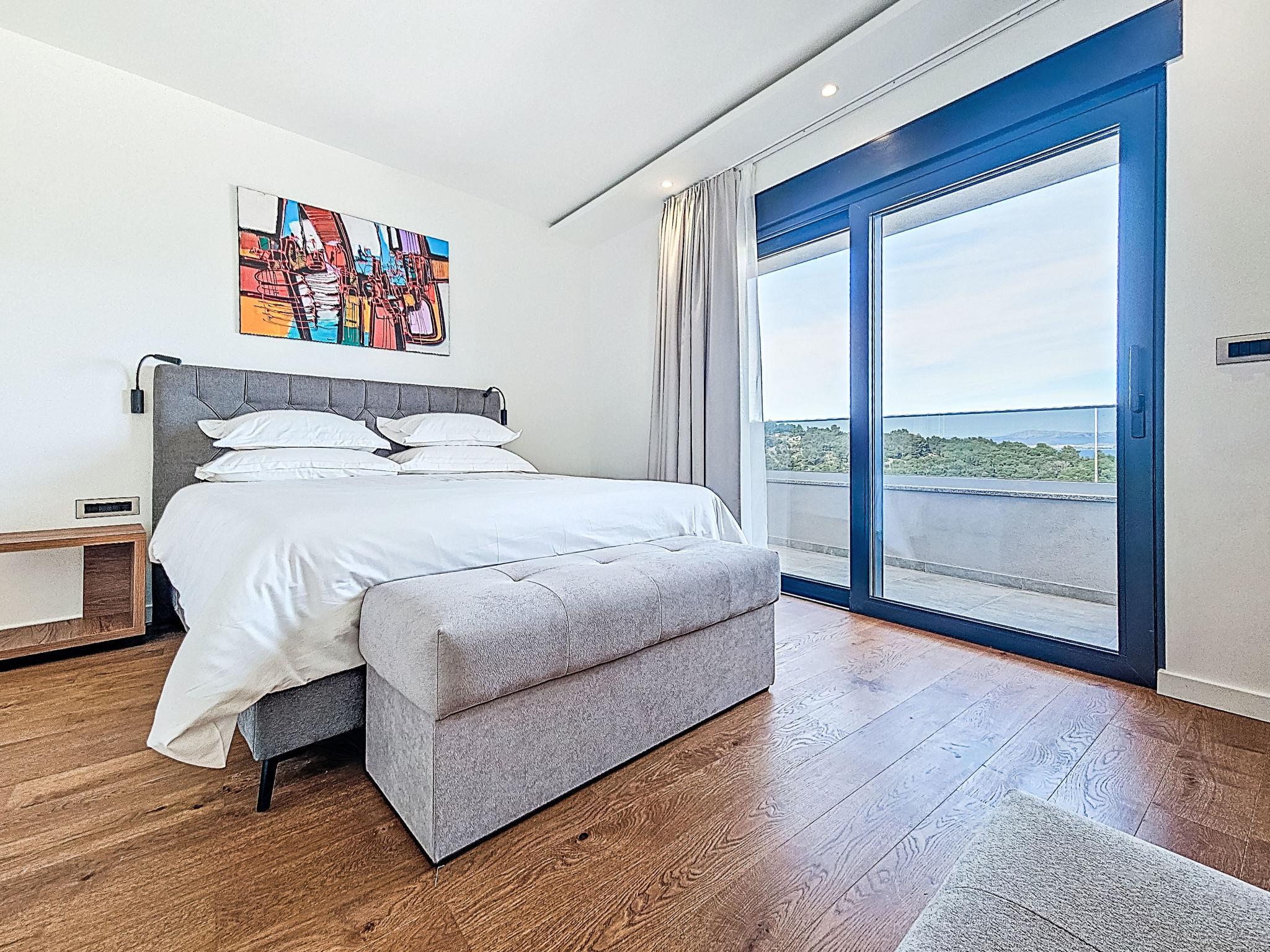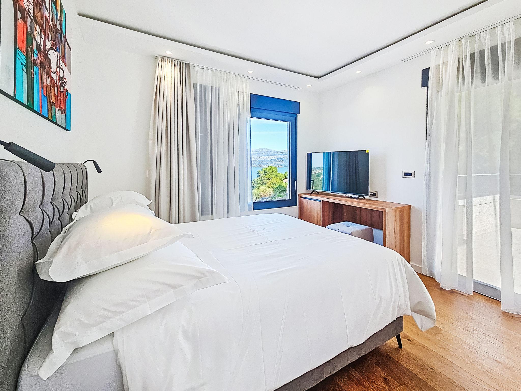 Splitska 5 km from Supetar: Beautiful villa "Aloa II", built in 2025. In a quiet, sunny, elevated position, 300 m from the sea, 350 m from the beach, in a cul-de-sac, north facing position. Private: property 450 m2 (fenced), swimming pool angular (8 x 3 m, 25 m2, depth 150 cm, seasonal availability: 01.May. - 01.Oct.). Outdoor shower, terrace (30 m2), garden furniture, barbecue. In the house: internet access. Parking (for 2 cars) at the house on the premises. Shop 550 m, supermarket 5 km, shopping centre 5 km, restaurant, café 550 m, bus stop 500 m, pebble beach 300 m.
