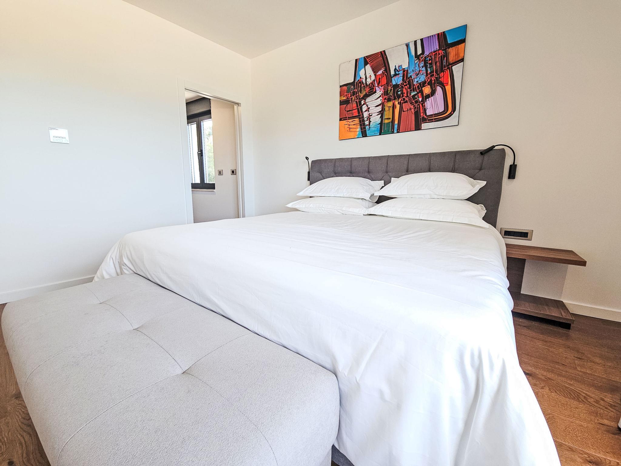 4-room villa 170 m2 on 2 levels. Living/dining room with satellite TV (flat screen), air conditioning. Exit to the terrace. 1 room with 1 french bed (160 cm, length 200 cm), shower/WC and satellite TV (flat screen), air conditioning. Exit to the terrace. Open kitchen (oven, dishwasher, 4 ceramic glass hob hotplates, microwave, freezer, electric coffee machine). Sep. WC. Upper floor: 2 rooms, each room with 1 french bed (180 cm, length 200 cm), shower/WC and satellite TV (flat screen), air conditioning. Exit to the balcony. Balcony 5 m2. Deck chairs (3). View of the sea. Facilities: children's high chair, baby cot, hair dryer. Internet (WiFi, free).