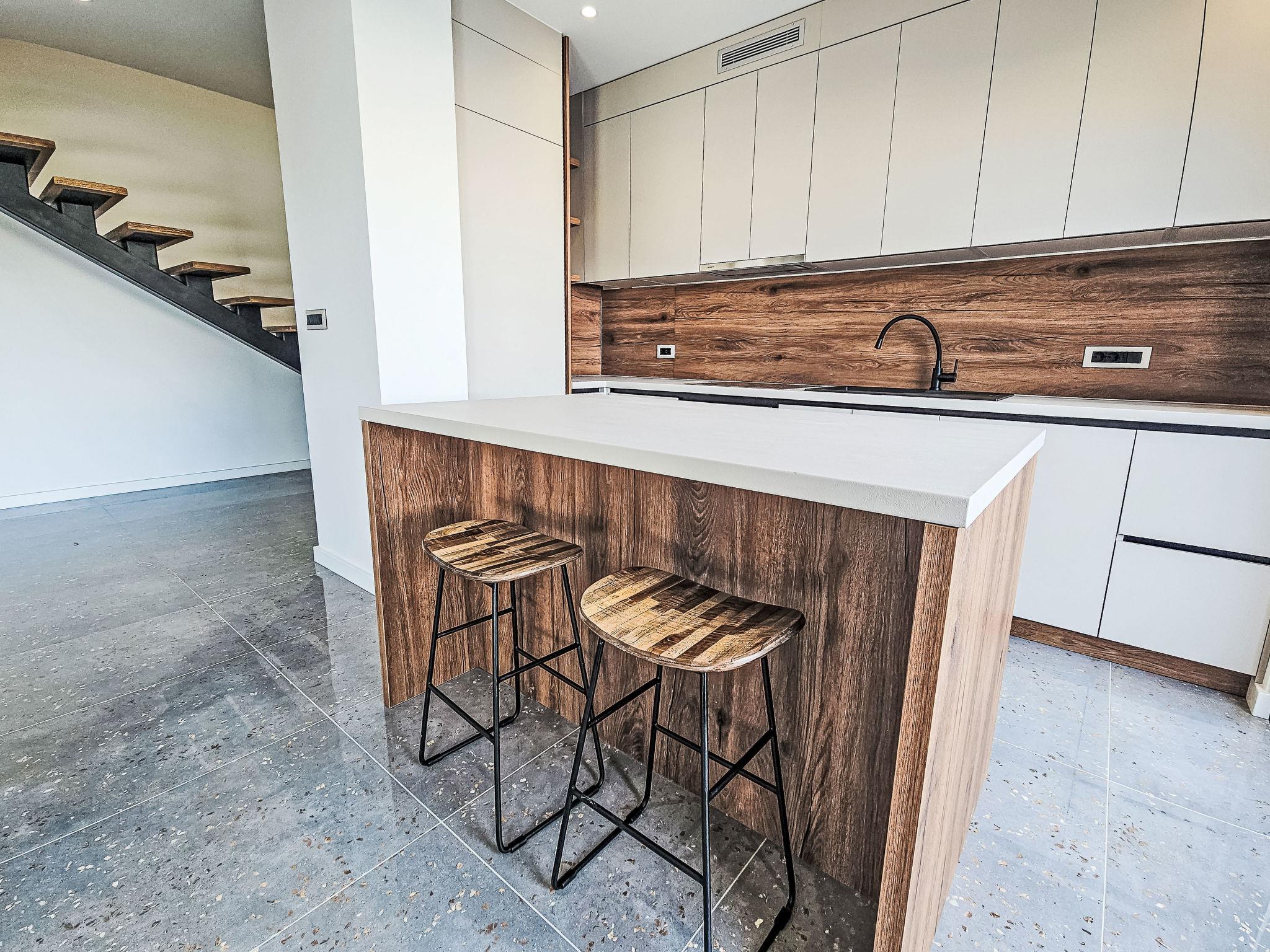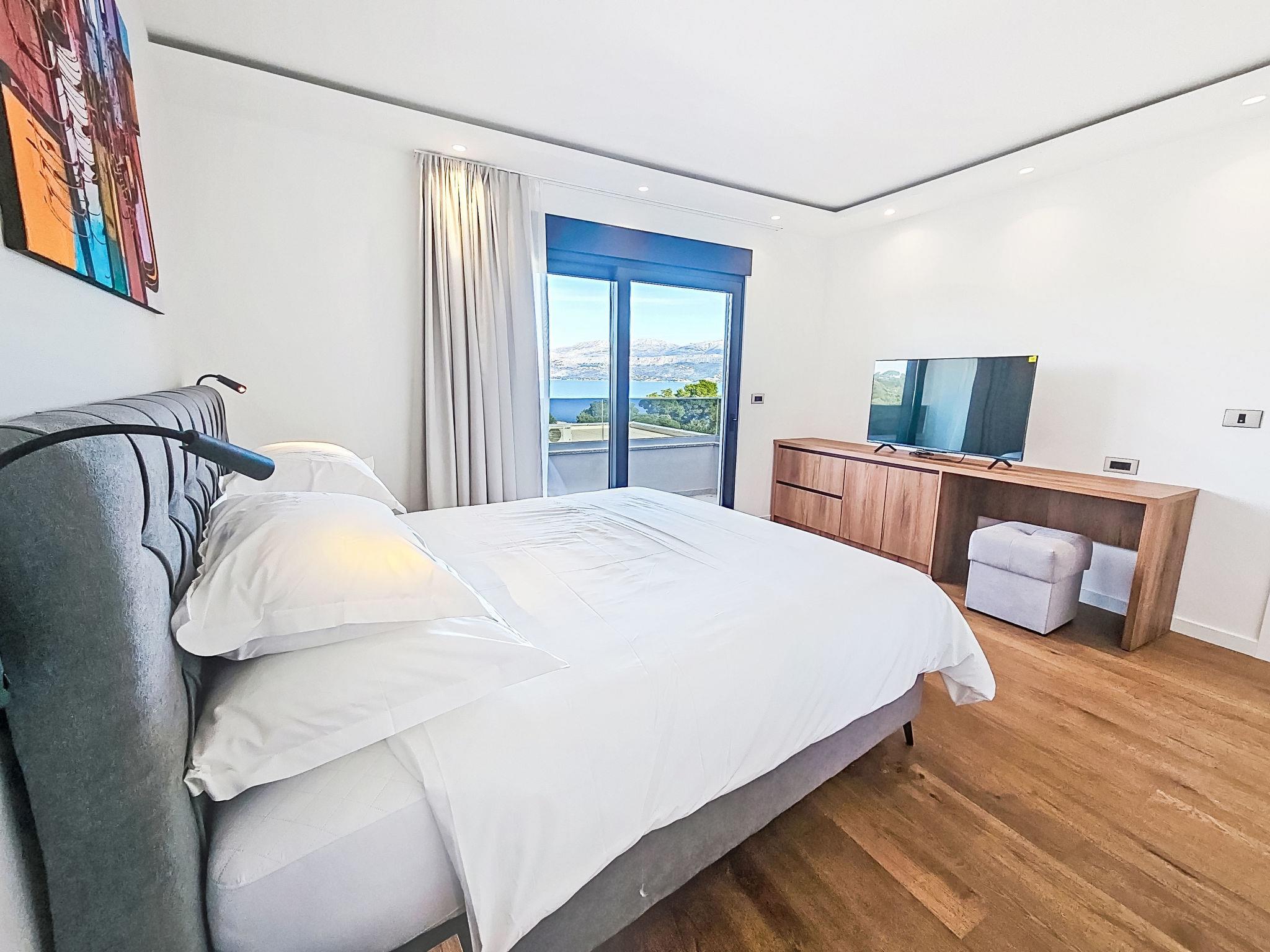 Splitska 5 km from Supetar: Beautiful villa "Aloa III", built in 2025. In a quiet, sunny, elevated position, 300 m from the sea, 350 m from the beach, in a cul-de-sac, north facing position. Private: property 450 m2 (fenced), swimming pool angular (7 x 4 m, 28 m2, depth 150 cm, seasonal availability: 01.May. - 01.Oct.). Outdoor shower, terrace (30 m2), garden furniture, barbecue. In the house: internet access. Parking (for 2 cars) at the house on the premises. Shop 550 m, supermarket 5 km, shopping centre 5 km, restaurant, café 550 m, bus stop 500 m, pebble beach 300 m.