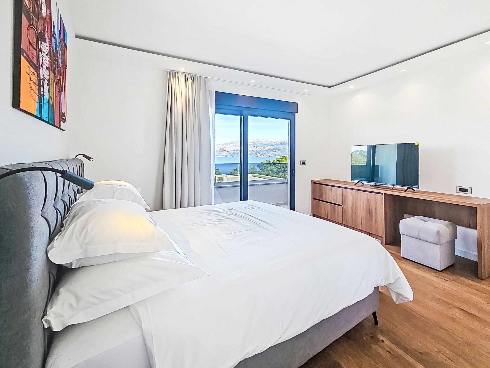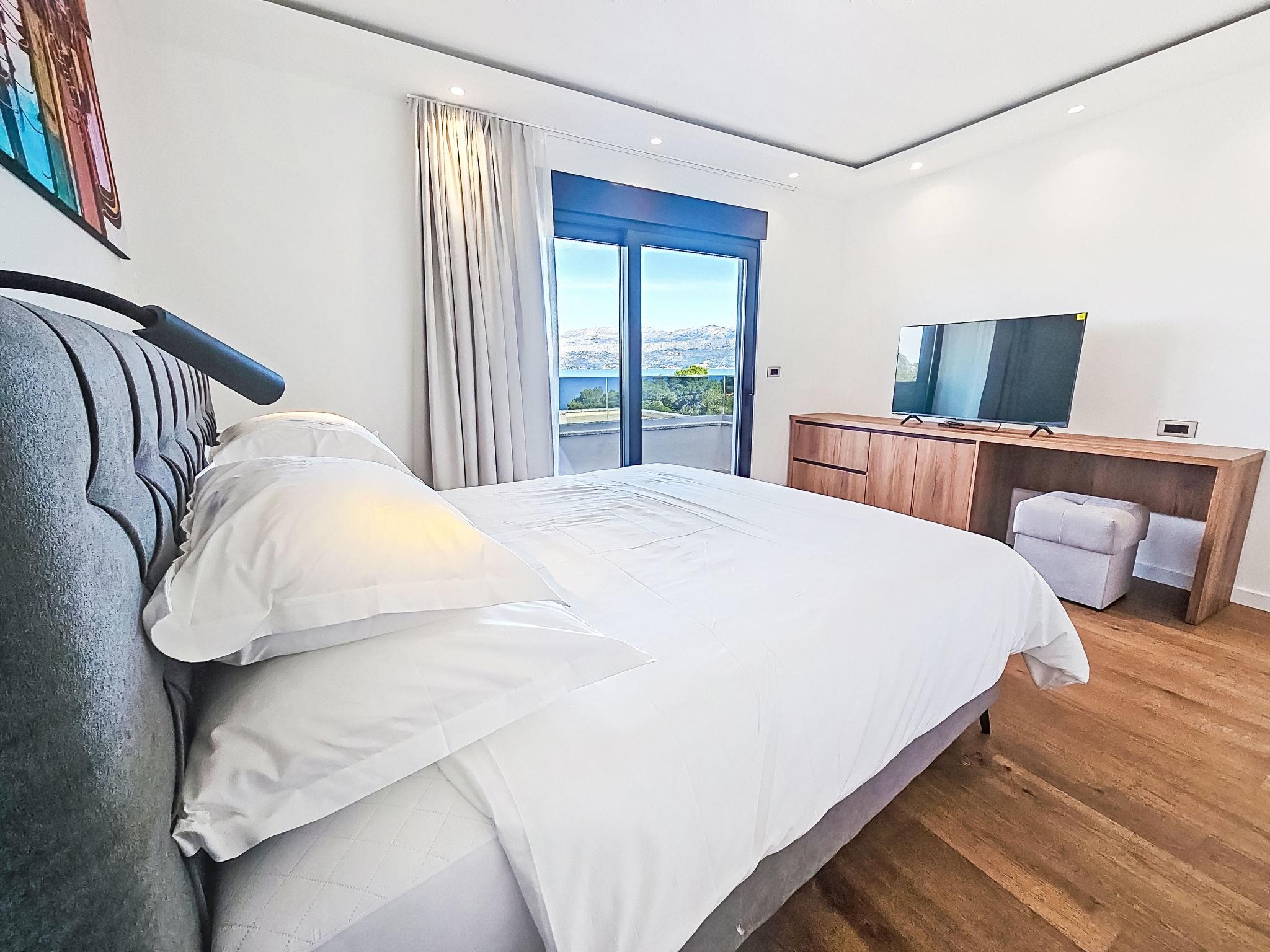 Splitska 5 km from Supetar: Beautiful villa "Aloa IV", built in 2025. In a quiet, sunny, elevated position, 300 m from the sea, 350 m from the beach, in a cul-de-sac, north facing position. Private: property 450 m2 (fenced), swimming pool angular (8 x 3 m, 25 m2, depth 150 cm, seasonal availability: 01.May. - 01.Oct.). Outdoor shower, terrace (30 m2), garden furniture, barbecue. In the house: internet access. Parking (for 2 cars) at the house on the premises. Shop 550 m, supermarket 5 km, shopping centre 5 km, restaurant, café 550 m, bus stop 500 m, pebble beach 300 m.