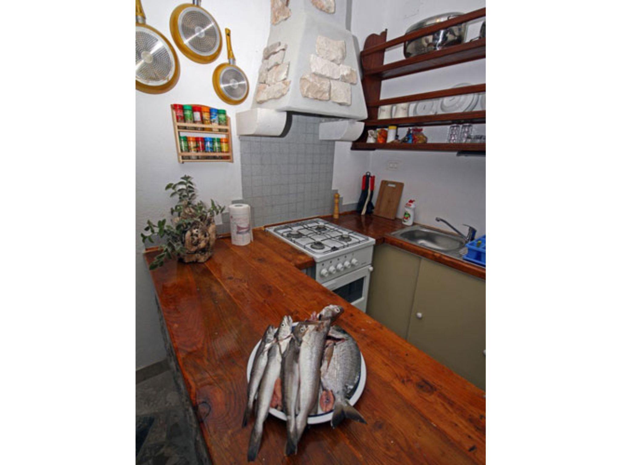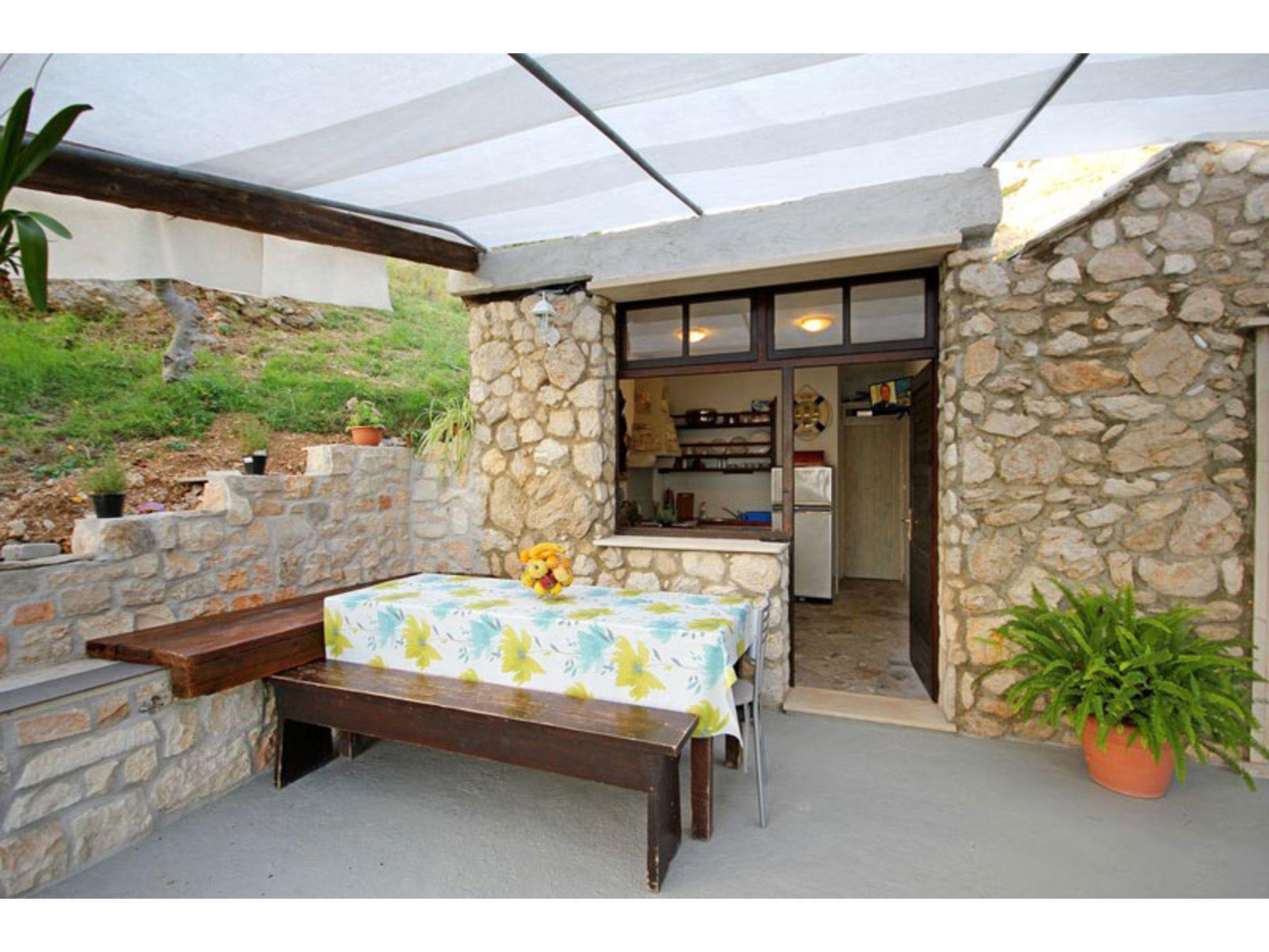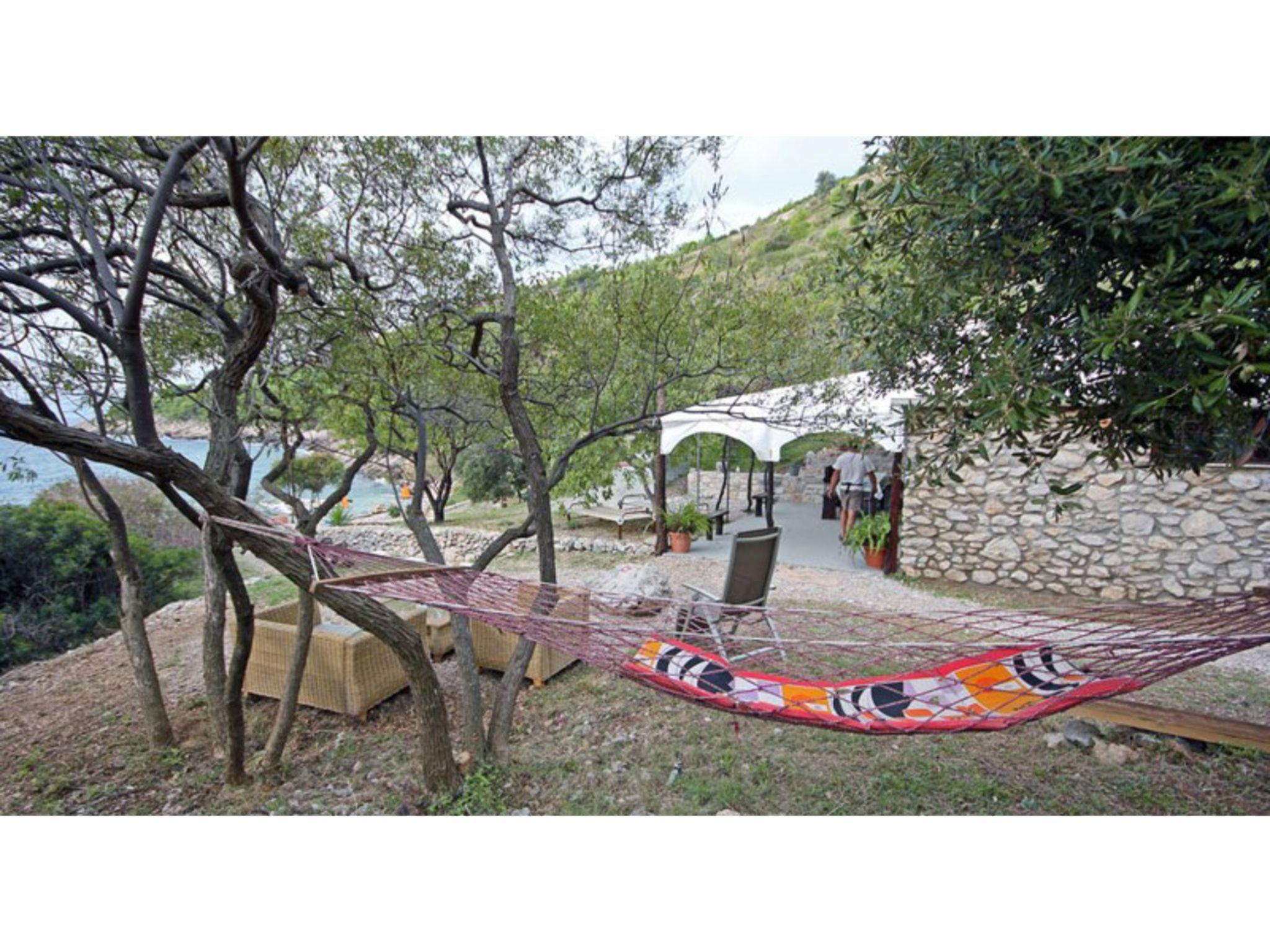 Next to the large sunny terrace with a wooden table and benches right in front of the house there is a big traditional stone grill, inviting you to enjoy leisurely meals under a blue sky. You can make yourselves comfortable in the hammock and enjoy a panoramic view over the bay and the sea. There is also a convenient outdoor shower.