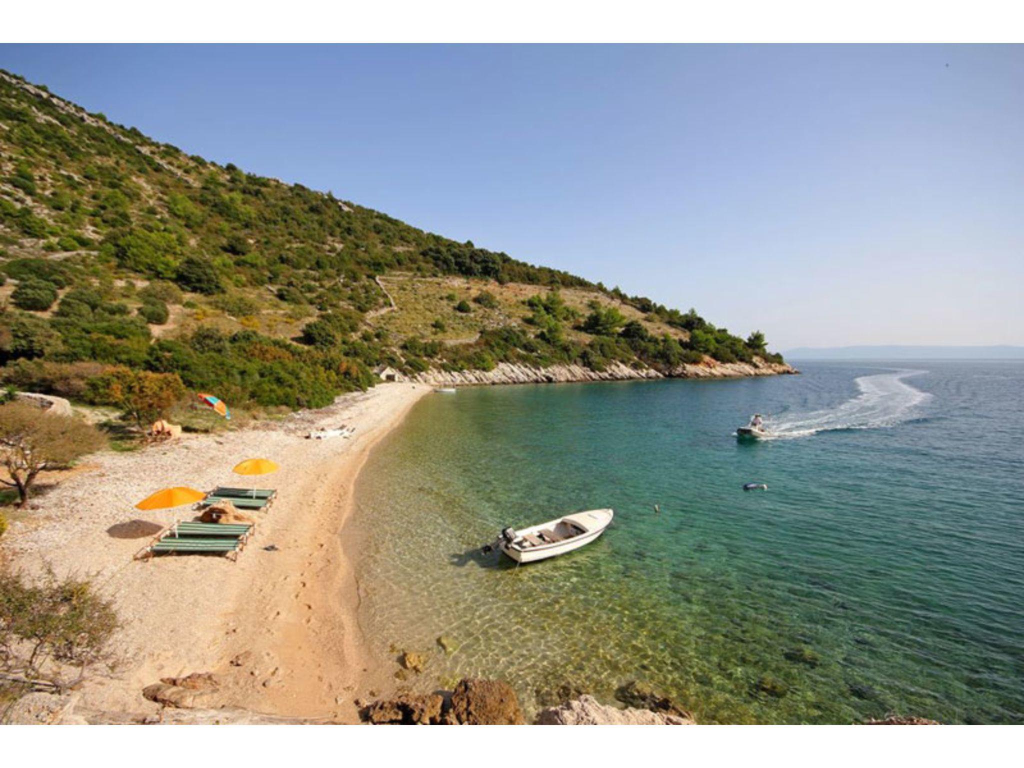 The holiday house can only be accessed by boat. The owner has his own large and comfortable motorboat to take you to the accommodation. He himself lives in Selca and if you arrive by car you can park it on the secure parking space in front of his house, before travelling on by boat. You can also hire a 4-metre-long motorboat during your stay If you are interested in this offer please make a note on your booking. Despite the secluded location, you are always well supplied. The owner can take care of grocery shopping for you. The house has a telephone so you can place orders.