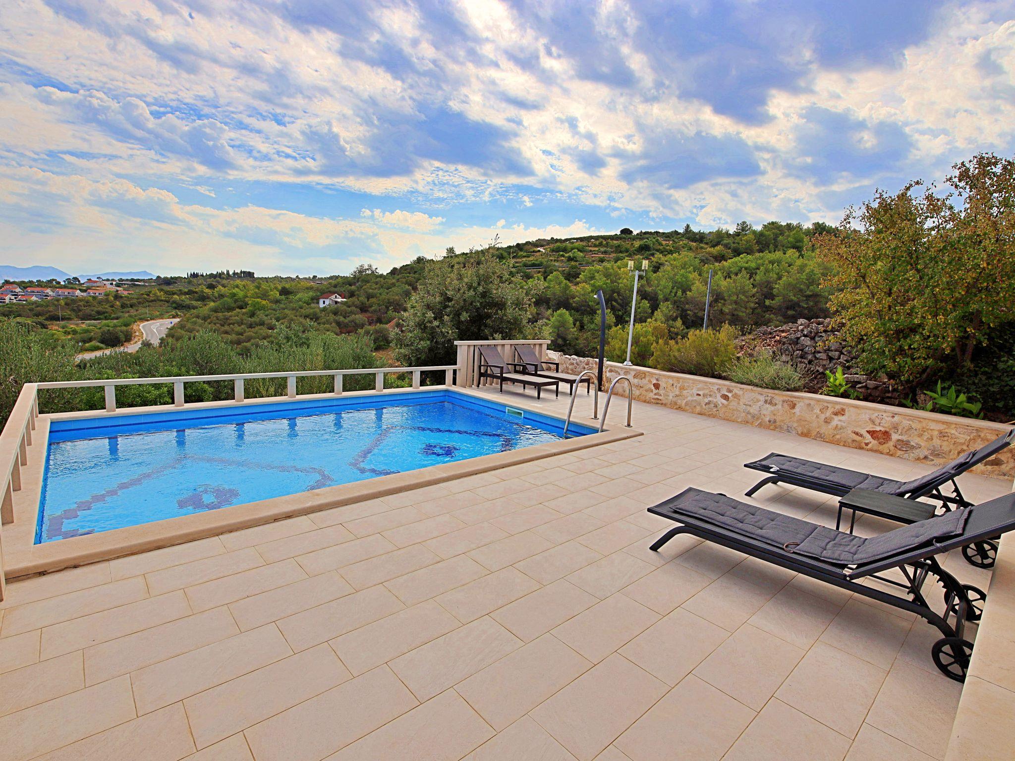 Single-family house "Villa Tonka", 2 storeys. 700 m from the centre of Sutivan, in a quiet, sunny, elevated position, 800 m from the sea, 1 km from the beach. Private: property 1'330 m2, swimming pool angular (6 x 4 m, depth 140 cm, seasonal availability: 02.May. - 26.Sep.). Outdoor shower, terrace (50 m2), barbecue. In the house: internet access, washing machine. Parking (for 3 cars) at the house on the premises. Shop 400 m, restaurant 700 m, bus stop 950 m, pebble beach 1 km.