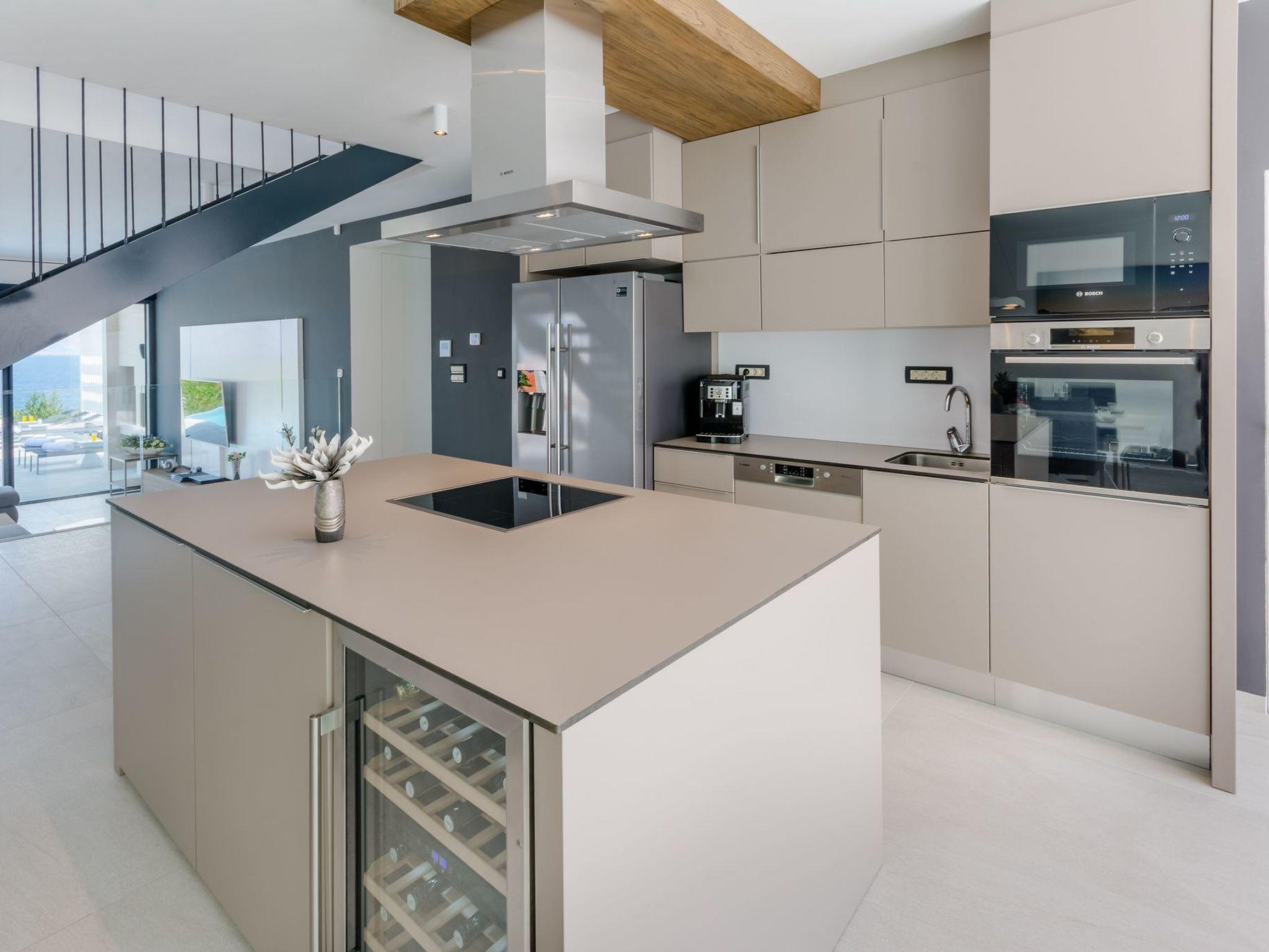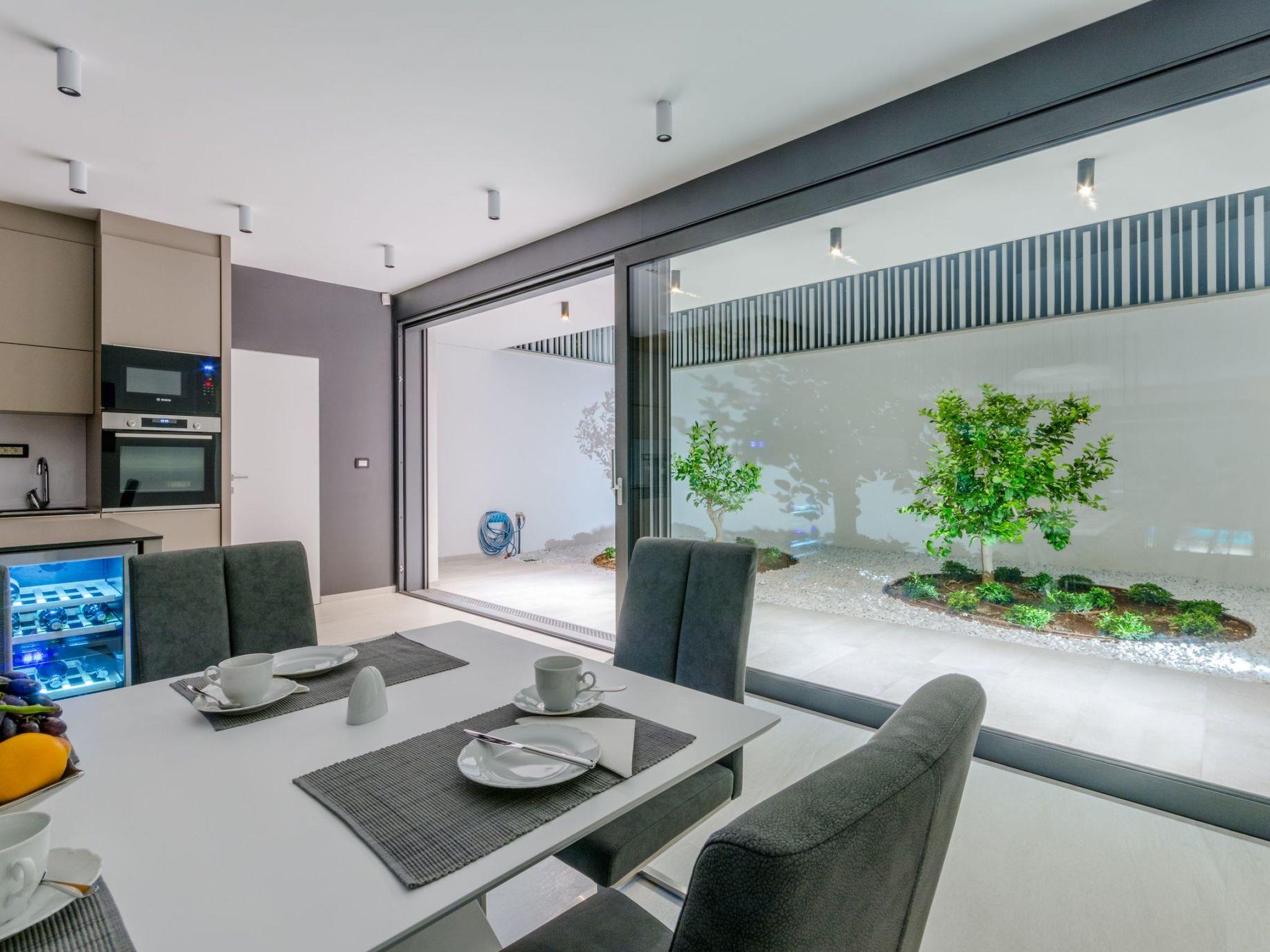 Our estate with a direct view of the Adriatic Sea was built in 2018 in compliance with cutting edge building standards, and it merges together state-of-the-art architecture and elegant luxury. You can observe the starry night sky from the seemingly edgeless heated infinity swimming pool, or enjoy the sunrise while having a delicious breakfast on the spacious terrace. Our stylishly furnished 320 m2 villa offers you a fitness room, as well as a ping pong table. Three exclusively furnished bedrooms with private bathrooms and king-size beds welcome you to dreamland. We also provide you with free high-speed wireless Internet, as well as with LED smart TVs in every bedroom and in the living room.