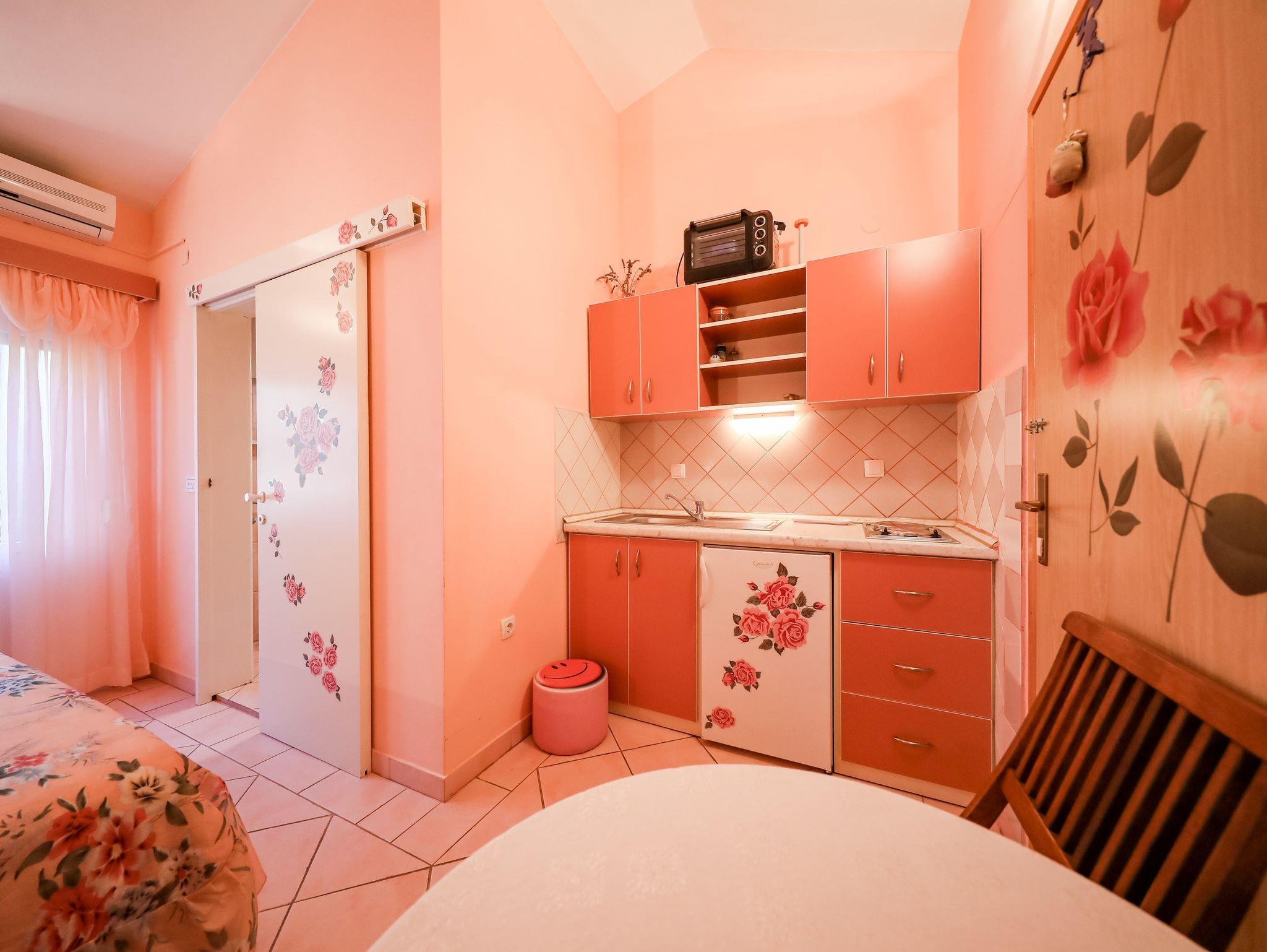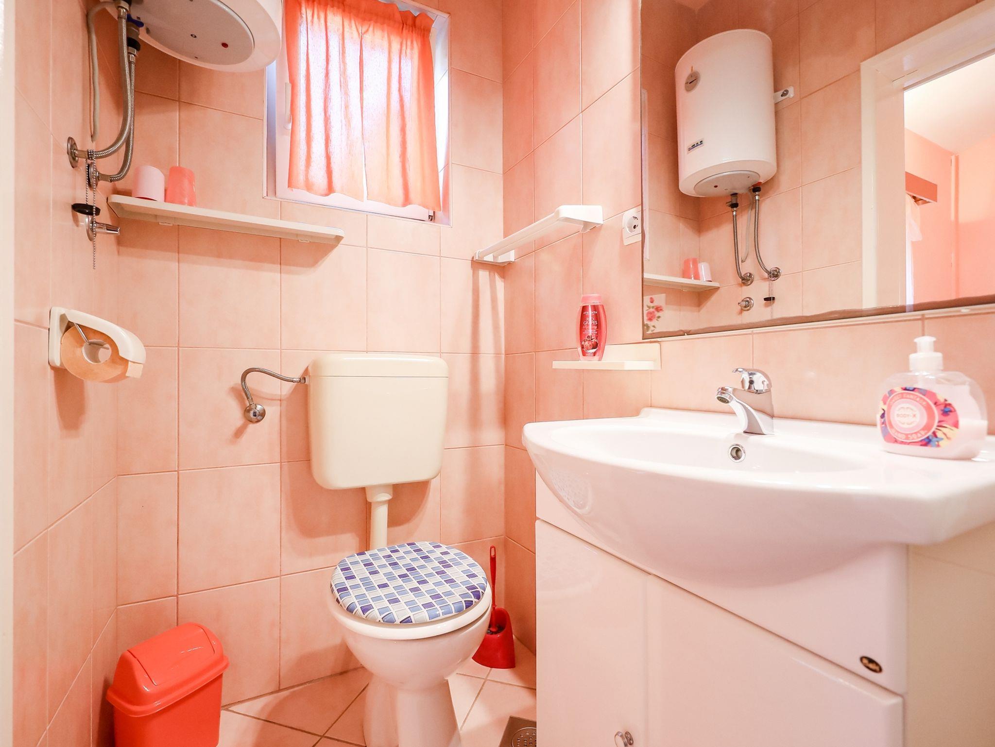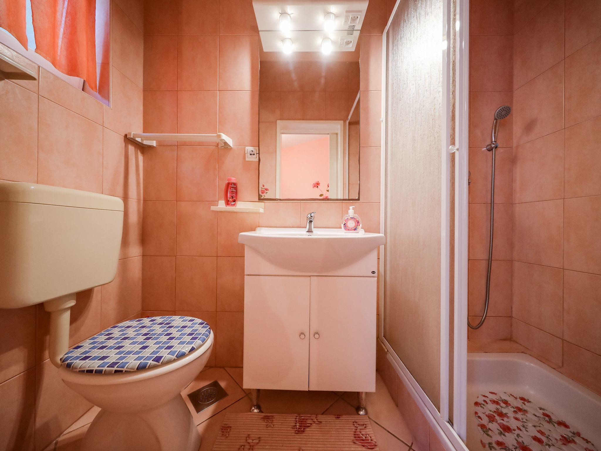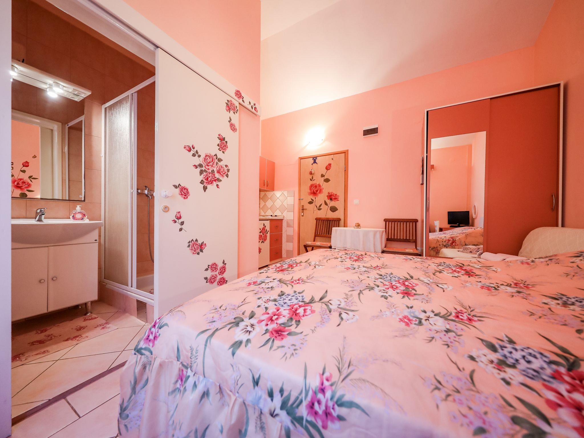 Studio bietet Platz für 2 Gäste. Die Betten sind in Schlafzimmern, die es 1 gibt, innerhalb einer Gesamtfläche von 16m2, angeordnet. Die Gäste haben eine eigene Terrasse zur Verfügung, auf der sie in warmen Sommernächten genießen können. Es ist erlaubt, Speisen auf dem Gemeinschafts-Grill vorzubereiten. In der Unterkunftseinheit besteht die Möglichkeit des Mitbringens von Haustieren gegen Aufpreis. Durch die Terrasse der gebuchten Unterkunftseinheit gehen auch andere Gäste oder Vermieter. IM PREIS INBEGRIFFEN: Kurtaxe, Endreinigung, Klimatisierung, Parkplatz, Internet, Bootsanlegeplatz, Kinderbett, Zusatzbett, Bügeleisen, Bügelbrett, Föhn, tragbarer Grill. VERBINDLICHE ZUSÄTZLICHE KOSTEN: Aufzahlung für Kurzaufenthalte (prozentualer Zuschlag pro Nächtigungsanzahl: 30% - 1, 20% - 2, 10% - 3). UNVERBINDLICHE ZUSÄTZLICHE KOSTEN: Wäschewaschen (10,00 € Waschen), Haustiere (10,00 € pro Nacht). Die Verfügbarkeit zusätzlicher Dienstleistungen in Ihrem reservierten Termin und die Preise derselben (falls nicht aufgeführt) müssen im Voraus überprüft werden. Zusätzliche Dienstleistungen die in der Zahlungsaufforderung nicht aufgeführt sind werden direkt beim Vermieter bezahlt, angenommen der Gast nutzt auch diese.
