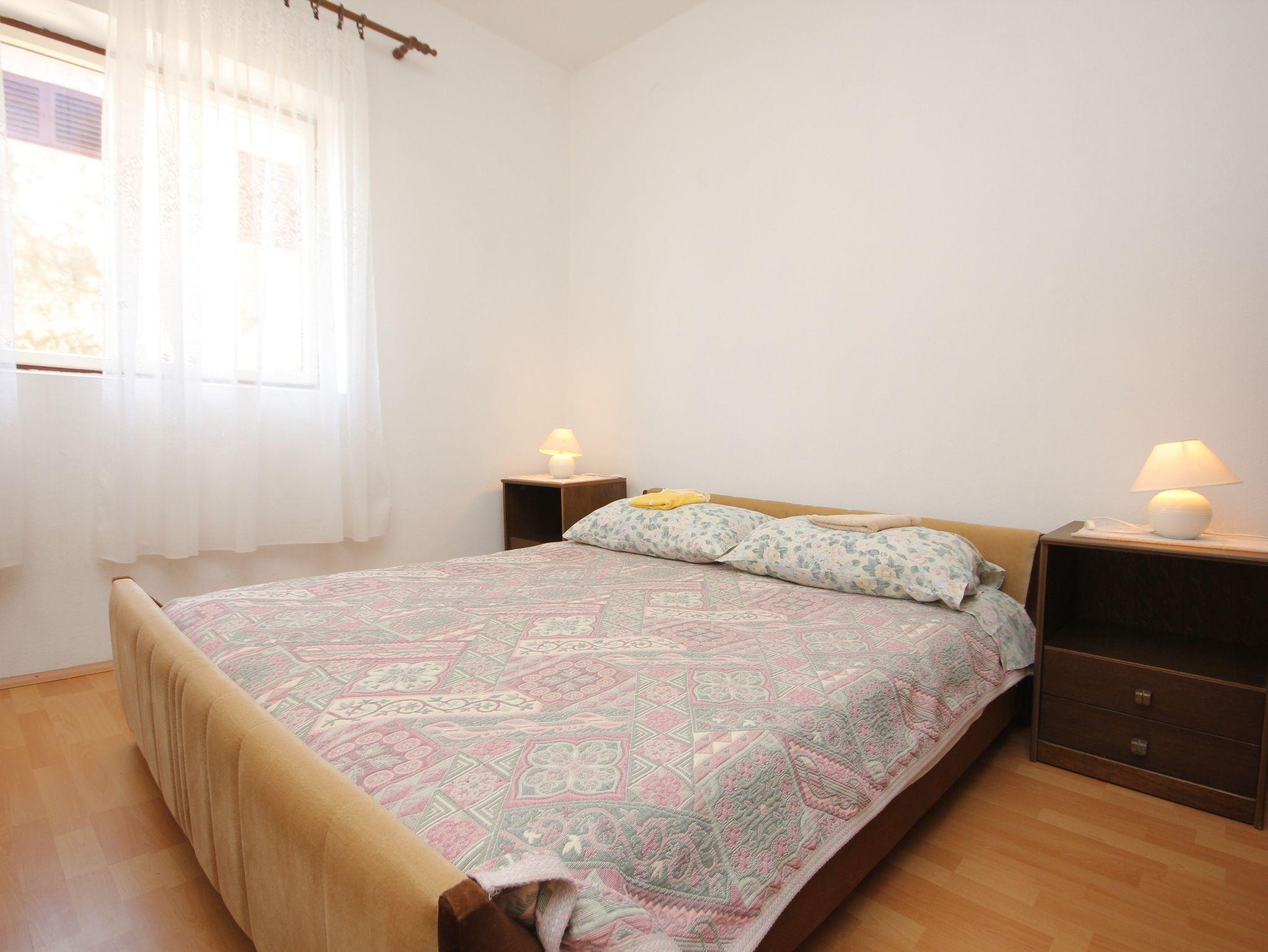 Ferienwohnung bietet Platz für 5 Gäste. Die Betten sind in Schlafzimmern, die es 2 gibt, innerhalb einer Gesamtfläche von 53m2, angeordnet. Die Gäste haben eine eigene Terrasse zur Verfügung, auf der sie in warmen Sommernächten genießen können. Das Apartment bietet Meerblick. Es ist erlaubt, Speisen auf dem Gemeinschafts-Grill vorzubereiten. In der Unterkunftseinheit besteht die Möglichkeit des Mitbringens von Haustieren gegen Aufpreis. IM PREIS INBEGRIFFEN: Kurtaxe, Endreinigung, Klimatisierung, Parkplatz, Bootsanlegeplatz. UNVERBINDLICHE ZUSÄTZLICHE KOSTEN: Haustiere (15,00 € pro Nacht). Die Verfügbarkeit zusätzlicher Dienstleistungen in Ihrem reservierten Termin und die Preise derselben (falls nicht aufgeführt) müssen im Voraus überprüft werden. Zusätzliche Dienstleistungen die in der Zahlungsaufforderung nicht aufgeführt sind werden direkt beim Vermieter bezahlt, angenommen der Gast nutzt auch diese. Ermäßigung auf den Grundpreis: Gratistag 14=13 (bei einem Aufenthalt von 14 Tagen oder mehr erhalten Sie einen Gratistag für den Aufenthalt bis 31.12.26).