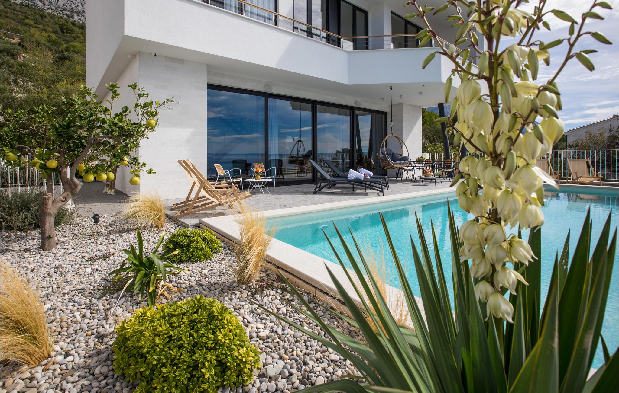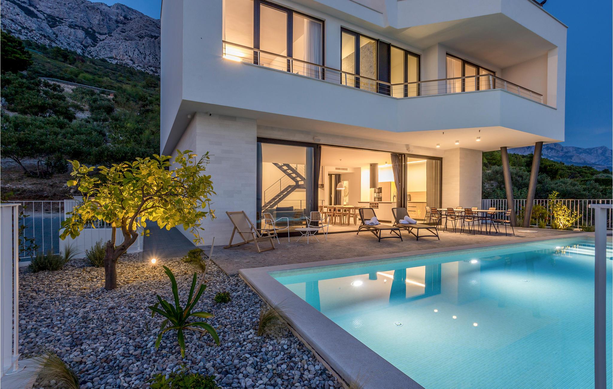 Denne moderne luksusvilla nord for centrum af byen Brela lover jer forkælelse ud over alle grænser.