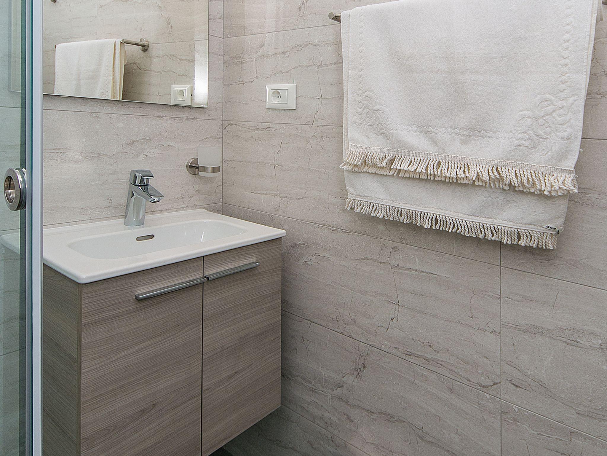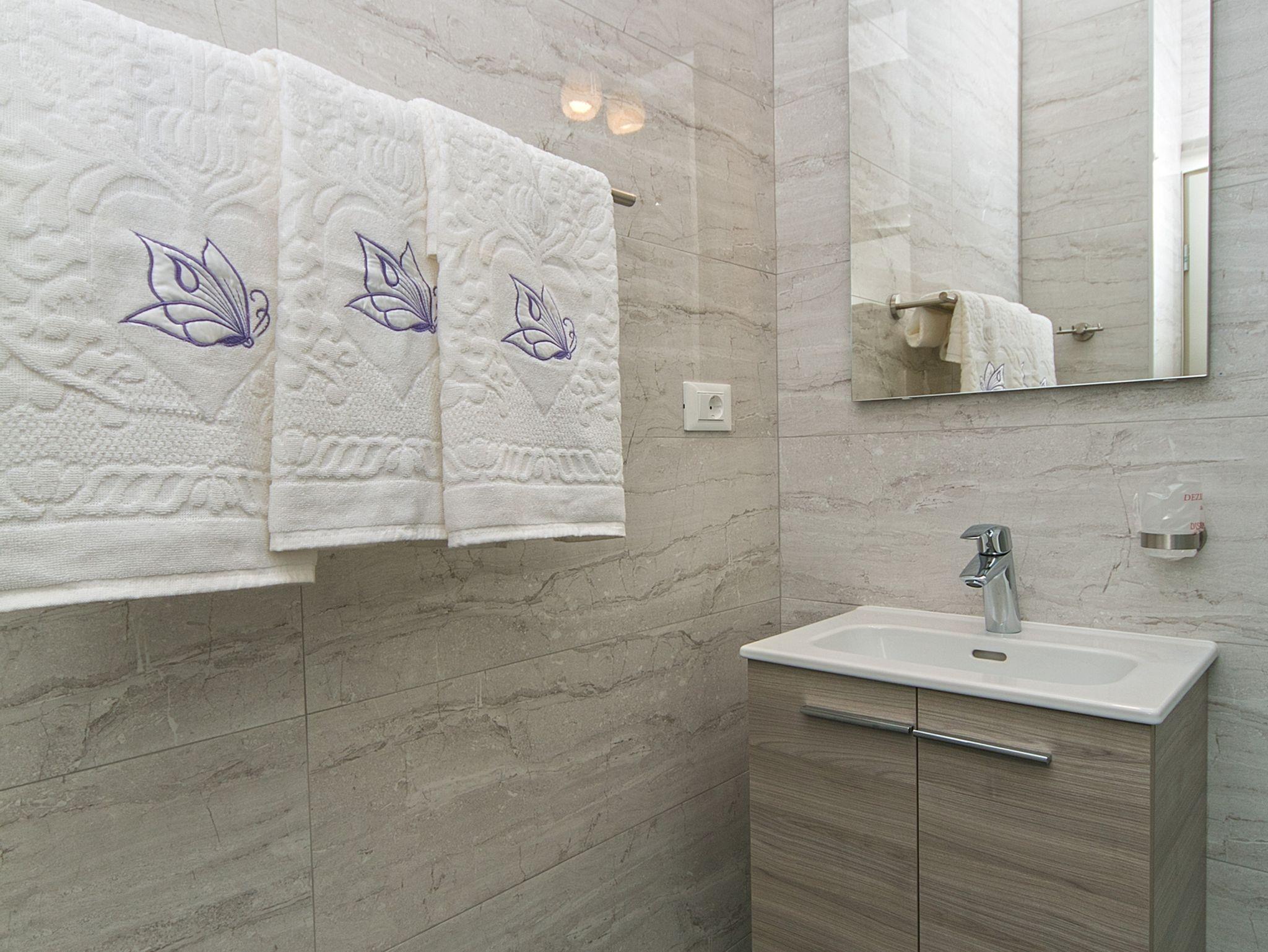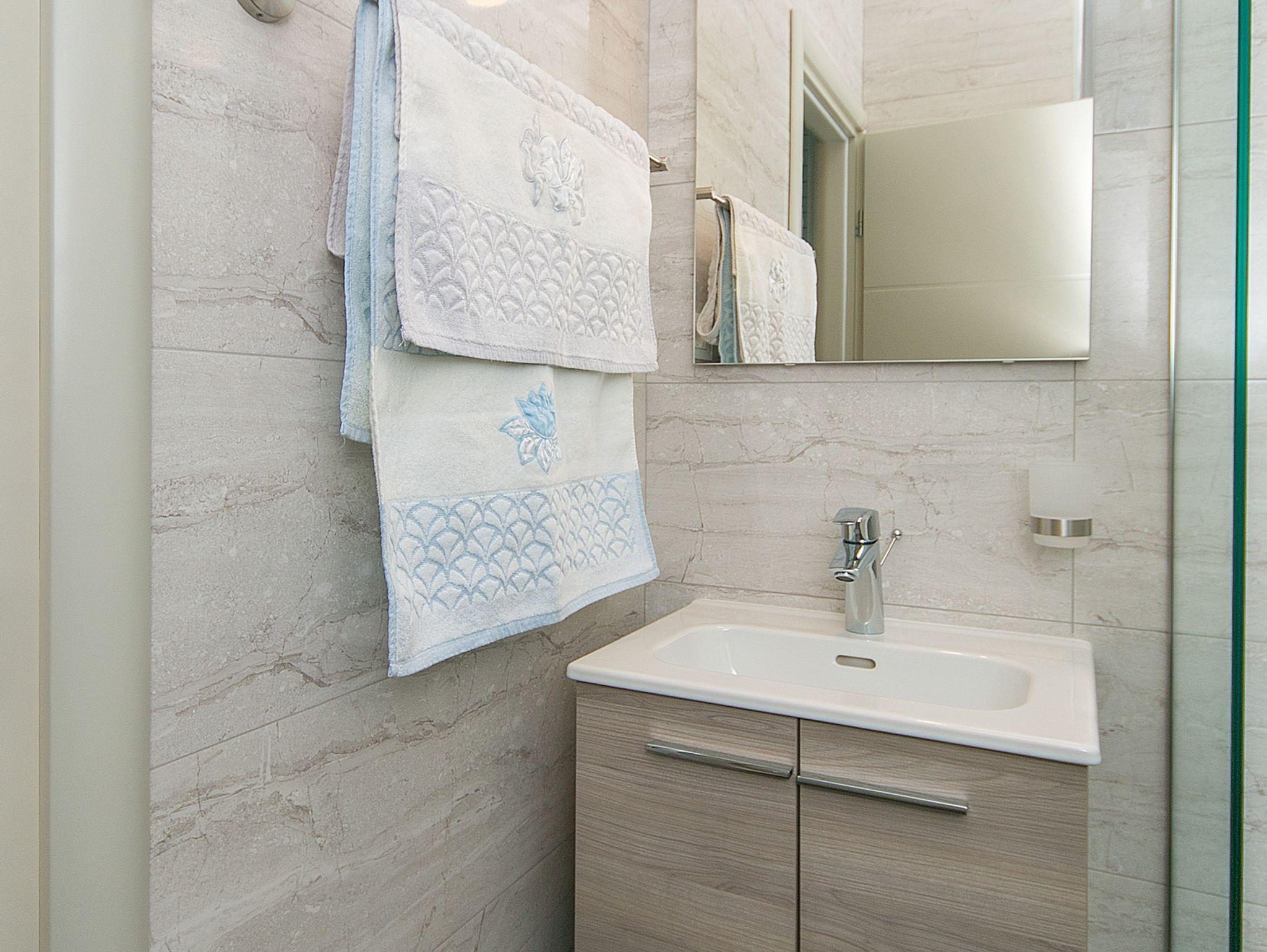 Ferienwohnung bietet Platz für 8 Gäste. Die Betten sind in Schlafzimmern, die es 3 gibt, innerhalb einer Gesamtfläche von 74m2, angeordnet. Die Gäste haben eine eigene Terrasse zur Verfügung, auf der sie in warmen Sommernächten genießen können. Das Apartment bietet Meerblick. IM PREIS INBEGRIFFEN: Kurtaxe, Endreinigung, Parkplatz, Internet, Föhn. VERBINDLICHE ZUSÄTZLICHE KOSTEN: Aufzahlung für Kurzaufenthalte (prozentualer Zuschlag pro Nächtigungsanzahl: 30% - 1, 20% - 2, 10% - 3). UNVERBINDLICHE ZUSÄTZLICHE KOSTEN: Klimatisierung (5,00 € pro Nacht), Wäschewaschen (10,00 € Waschen). Die Verfügbarkeit zusätzlicher Dienstleistungen in Ihrem reservierten Termin und die Preise derselben (falls nicht aufgeführt) müssen im Voraus überprüft werden. Zusätzliche Dienstleistungen die in der Zahlungsaufforderung nicht aufgeführt sind werden direkt beim Vermieter bezahlt, angenommen der Gast nutzt auch diese.