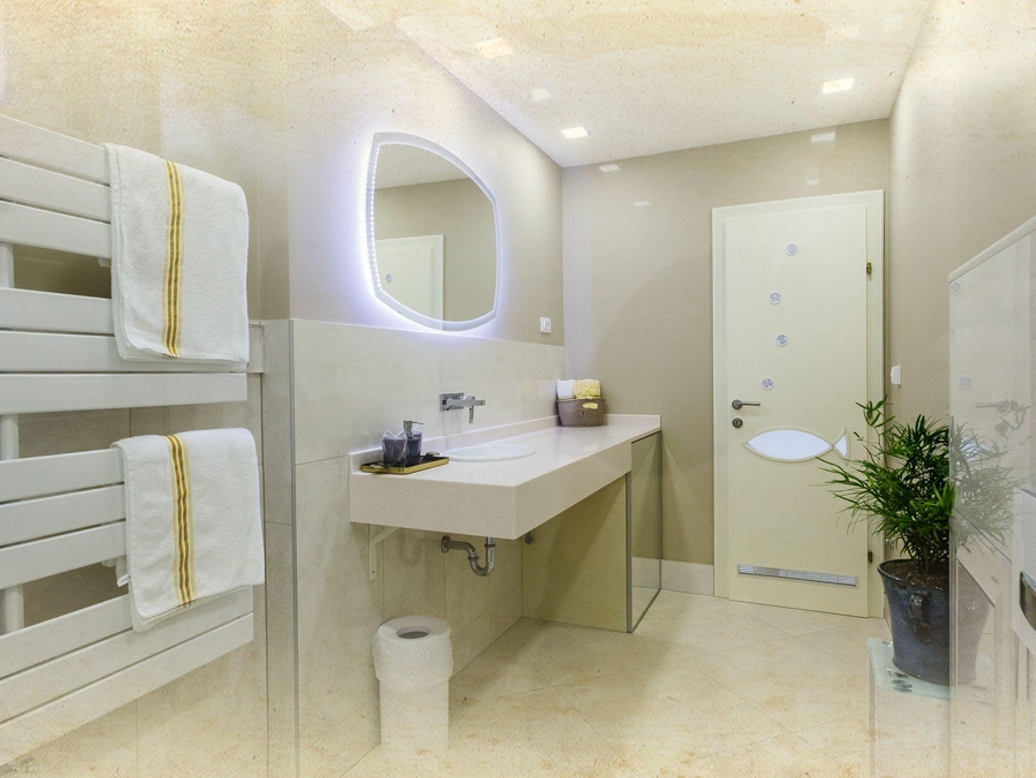 Ferienwohnung bietet Platz für 2 Gäste. Die Betten sind in Schlafzimmern, die es 2 gibt, innerhalb einer Gesamtfläche von 52m2, angeordnet. Die Gäste haben eine eigene Terrasse zur Verfügung, auf der sie in warmen Sommernächten genießen können. Das Apartment bietet Meerblick. IM PREIS INBEGRIFFEN: Kurtaxe, Endreinigung, Klimatisierung, Zentralheizung, Parkplatz, Internet, Kinderbett, Bügeleisen, Bügelbrett, Föhn. VERBINDLICHE ZUSÄTZLICHE KOSTEN: Aufzahlung für Kurzaufenthalte (prozentualer Zuschlag pro Nächtigungsanzahl: 30% - 1, 20% - 2, 10% - 3). UNVERBINDLICHE ZUSÄTZLICHE KOSTEN: 2 Kinderbettchen (20,00 € Person/Tag). Die Verfügbarkeit zusätzlicher Dienstleistungen in Ihrem reservierten Termin und die Preise derselben (falls nicht aufgeführt) müssen im Voraus überprüft werden. Zusätzliche Dienstleistungen die in der Zahlungsaufforderung nicht aufgeführt sind werden direkt beim Vermieter bezahlt, angenommen der Gast nutzt auch diese.