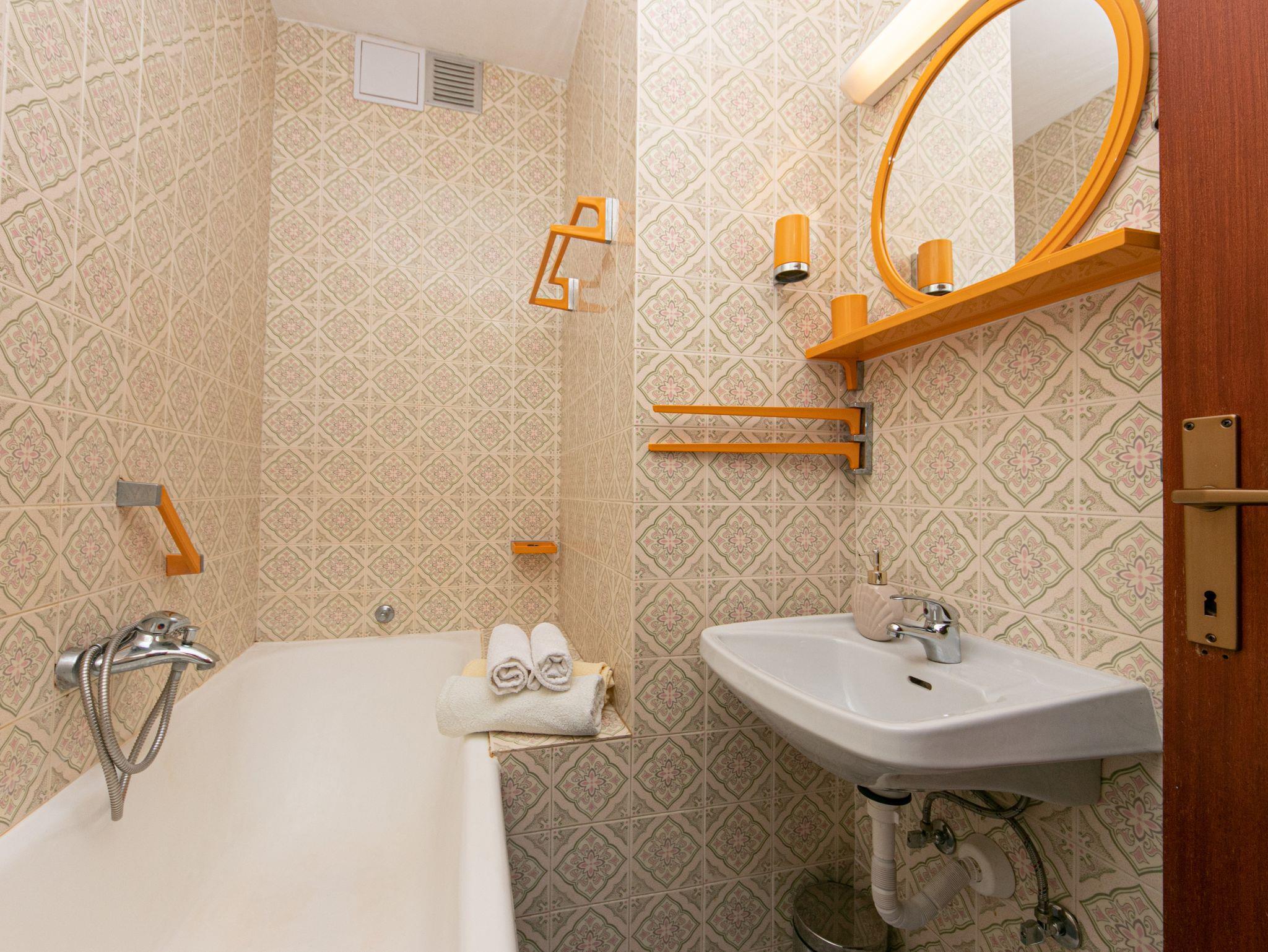 Ferienwohnung bietet Platz für 6 Gäste. Die Betten sind in Schlafzimmern, die es 2 gibt, und in Wohnzimmer, innerhalb einer Gesamtfläche von 68m2, angeordnet. Die Gäste haben eine eigene Terrasse zur Verfügung, auf der sie in warmen Sommernächten genießen können. Das Apartment bietet Meerblick. Für vollen Genuss und Entspannung gibt es einen privaten Grill für Gäste dieser Unterkunft. IM PREIS INBEGRIFFEN: Kurtaxe, Endreinigung, Klimatisierung, Parkplatz, Internet. VERBINDLICHE ZUSÄTZLICHE KOSTEN: Aufzahlung für Kurzaufenthalte (prozentualer Zuschlag pro Nächtigungsanzahl: 30% - 1, 20% - 2, 10% - 3). UNVERBINDLICHE ZUSÄTZLICHE KOSTEN: Zusatzbett (20,00 € pro Nacht). Die Verfügbarkeit zusätzlicher Dienstleistungen in Ihrem reservierten Termin und die Preise derselben (falls nicht aufgeführt) müssen im Voraus überprüft werden. Zusätzliche Dienstleistungen die in der Zahlungsaufforderung nicht aufgeführt sind werden direkt beim Vermieter bezahlt, angenommen der Gast nutzt auch diese. Ermäßigung auf den Grundpreis: Gratistag 14=13 (bei einem Aufenthalt von 14 Tagen oder mehr erhalten Sie einen Gratistag für den Aufenthalt bis 31.12.26).