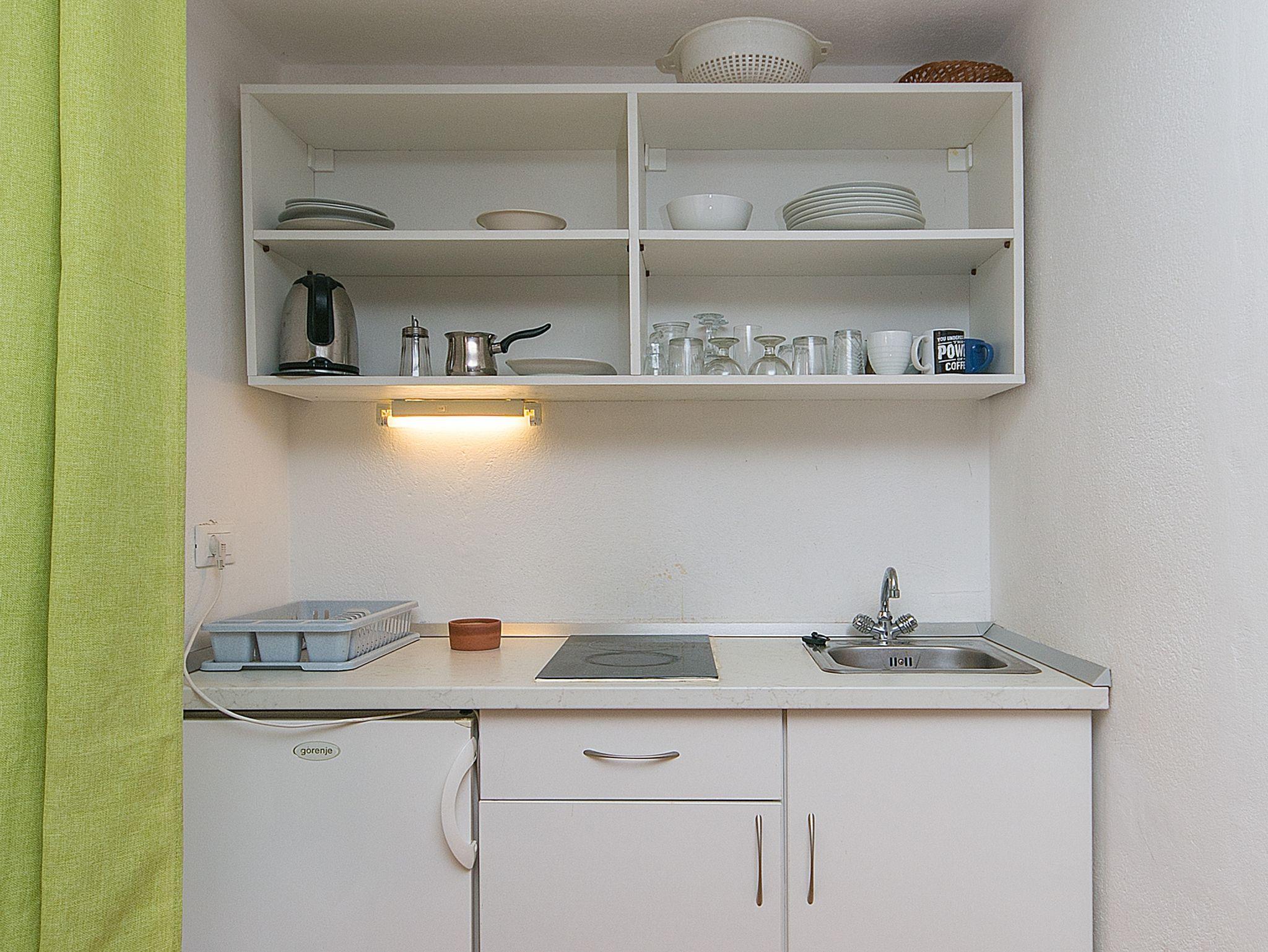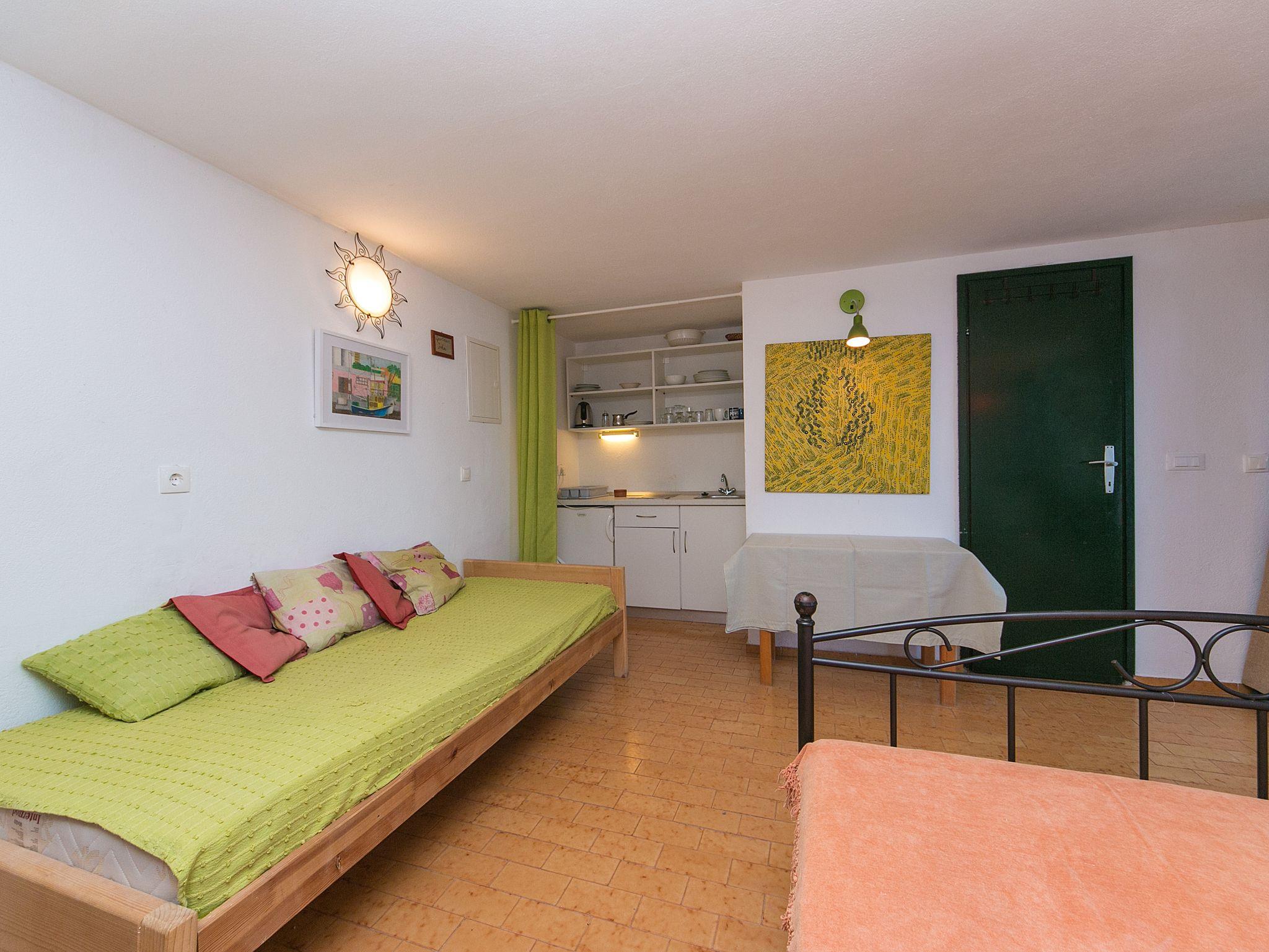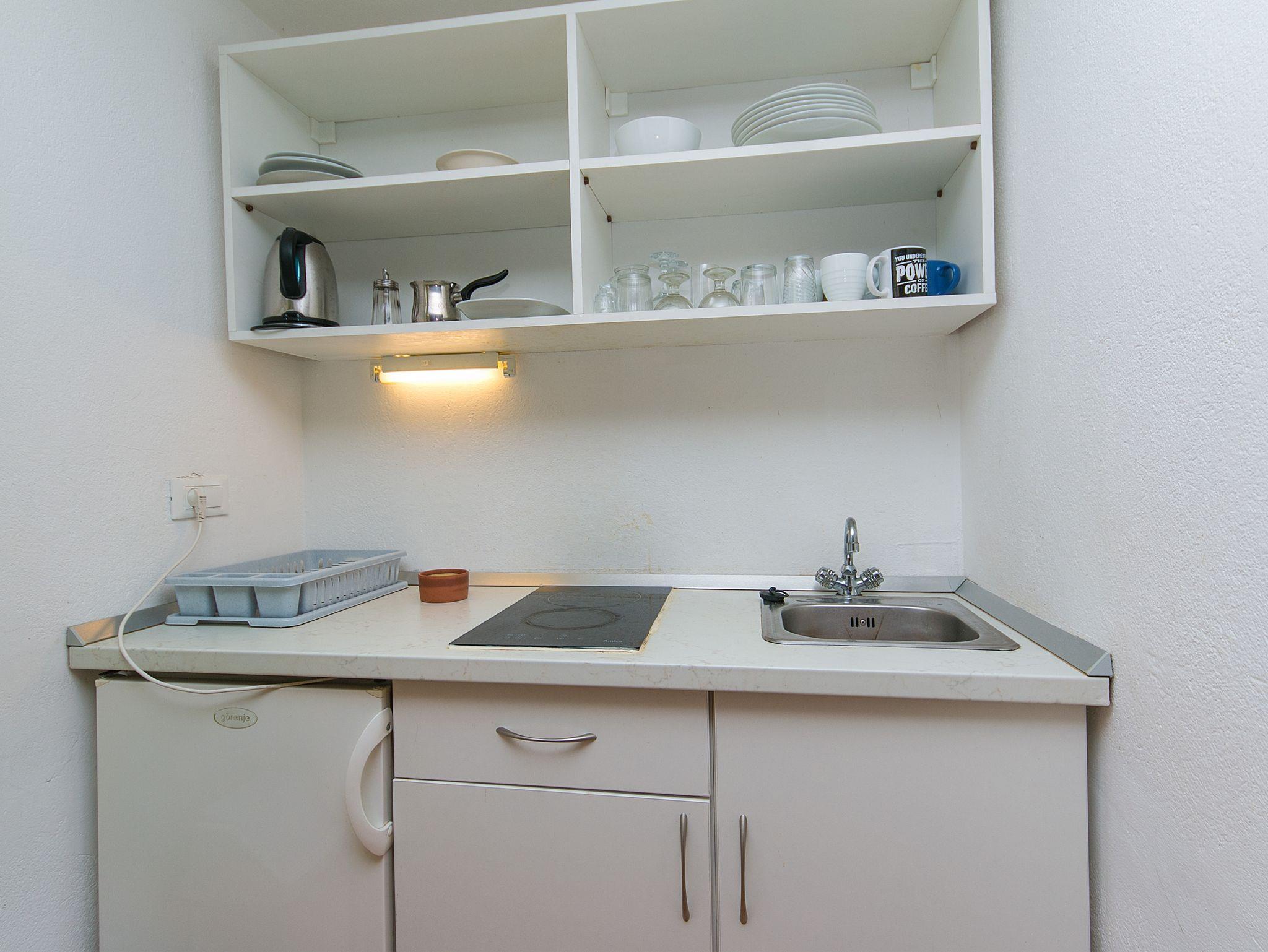 Studio bietet Platz für 3 Gäste. Die Betten sind in Schlafzimmern, die es 1 gibt, innerhalb einer Gesamtfläche von 24m2, angeordnet. Die Gäste haben eine eigene Terrasse zur Verfügung, auf der sie in warmen Sommernächten genießen können. Das Studio-Apartment bietet Meerblick. Es ist erlaubt, Speisen auf dem Gemeinschafts-Grill vorzubereiten. IM PREIS INBEGRIFFEN: Kurtaxe, Endreinigung, Klimatisierung, Parkplatz, Internet, Wäschewaschen, Kinderbett, Bügeleisen, Bügelbrett, Föhn, tragbarer Grill, Sonnenschirm, Liegestühle. VERBINDLICHE ZUSÄTZLICHE KOSTEN: Aufzahlung für Kurzaufenthalte (prozentualer Zuschlag pro Nächtigungsanzahl: 30% - 1, 20% - 2, 10% - 3). Die Verfügbarkeit zusätzlicher Dienstleistungen in Ihrem reservierten Termin und die Preise derselben (falls nicht aufgeführt) müssen im Voraus überprüft werden. Zusätzliche Dienstleistungen die in der Zahlungsaufforderung nicht aufgeführt sind werden direkt beim Vermieter bezahlt, angenommen der Gast nutzt auch diese. Ermäßigung auf den Grundpreis: Gratistag 14=13 (bei einem Aufenthalt von 14 Tagen oder mehr erhalten Sie einen Gratistag für den Aufenthalt bis 31.12.26).