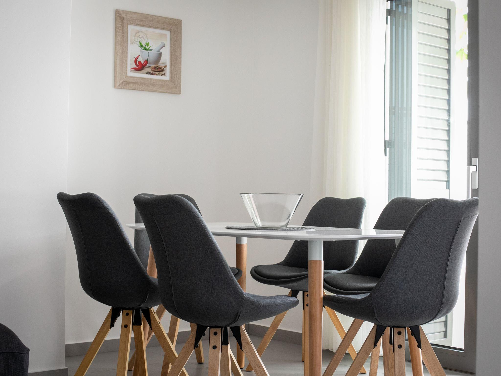 Ferienwohnung bietet Platz für 6 Gäste. Die Betten sind in Schlafzimmern, die es 2 gibt, und in Wohnzimmer, innerhalb einer Gesamtfläche von 55m2, angeordnet. Die Gäste haben eine eigene Terrasse zur Verfügung, auf der sie in warmen Sommernächten genießen können. Das Apartment bietet Meerblick. Es ist erlaubt, Speisen auf dem Gemeinschafts-Grill vorzubereiten. Während ihres Aufenthalts können Gäste das gemeinsam zur Nutzung stehende Schwimmbad benutzen. In der Unterkunftseinheit besteht die Möglichkeit des Mitbringens von Haustieren gegen Aufpreis. IM PREIS INBEGRIFFEN: Kurtaxe, Endreinigung, Klimatisierung, Pool, Internet, Kinderbett, Föhn, tragbarer Grill. UNVERBINDLICHE ZUSÄTZLICHE KOSTEN: Haustiere (10,00 € pro Nacht). Die Verfügbarkeit zusätzlicher Dienstleistungen in Ihrem reservierten Termin und die Preise derselben (falls nicht aufgeführt) müssen im Voraus überprüft werden. Zusätzliche Dienstleistungen die in der Zahlungsaufforderung nicht aufgeführt sind werden direkt beim Vermieter bezahlt, angenommen der Gast nutzt auch diese.