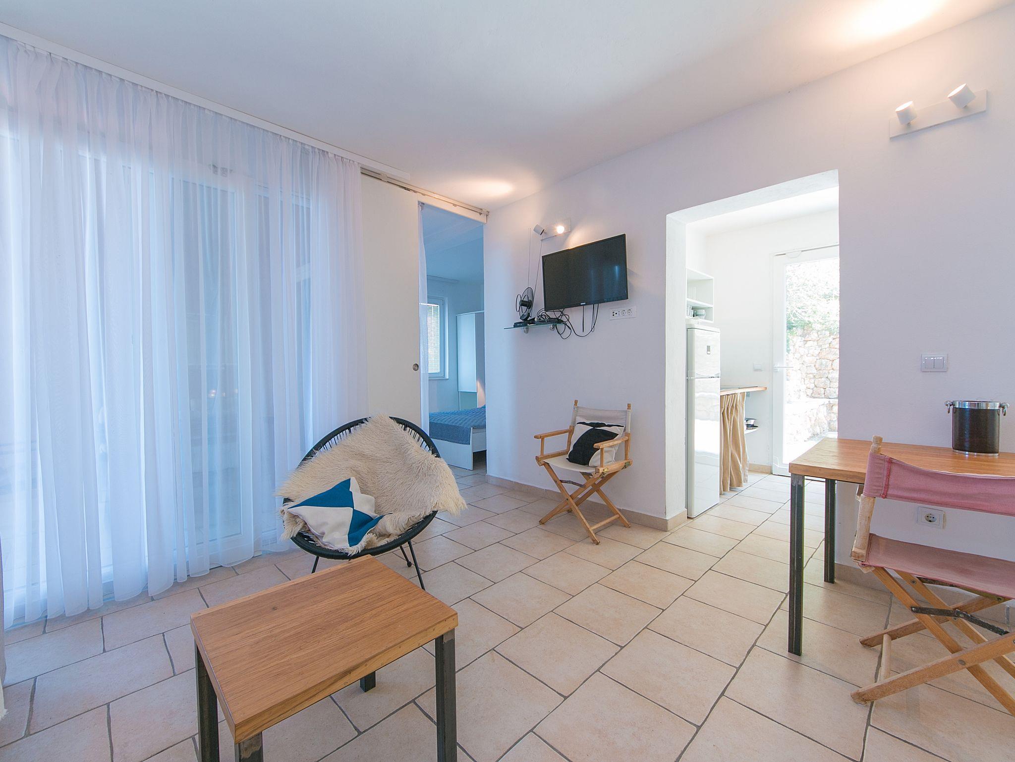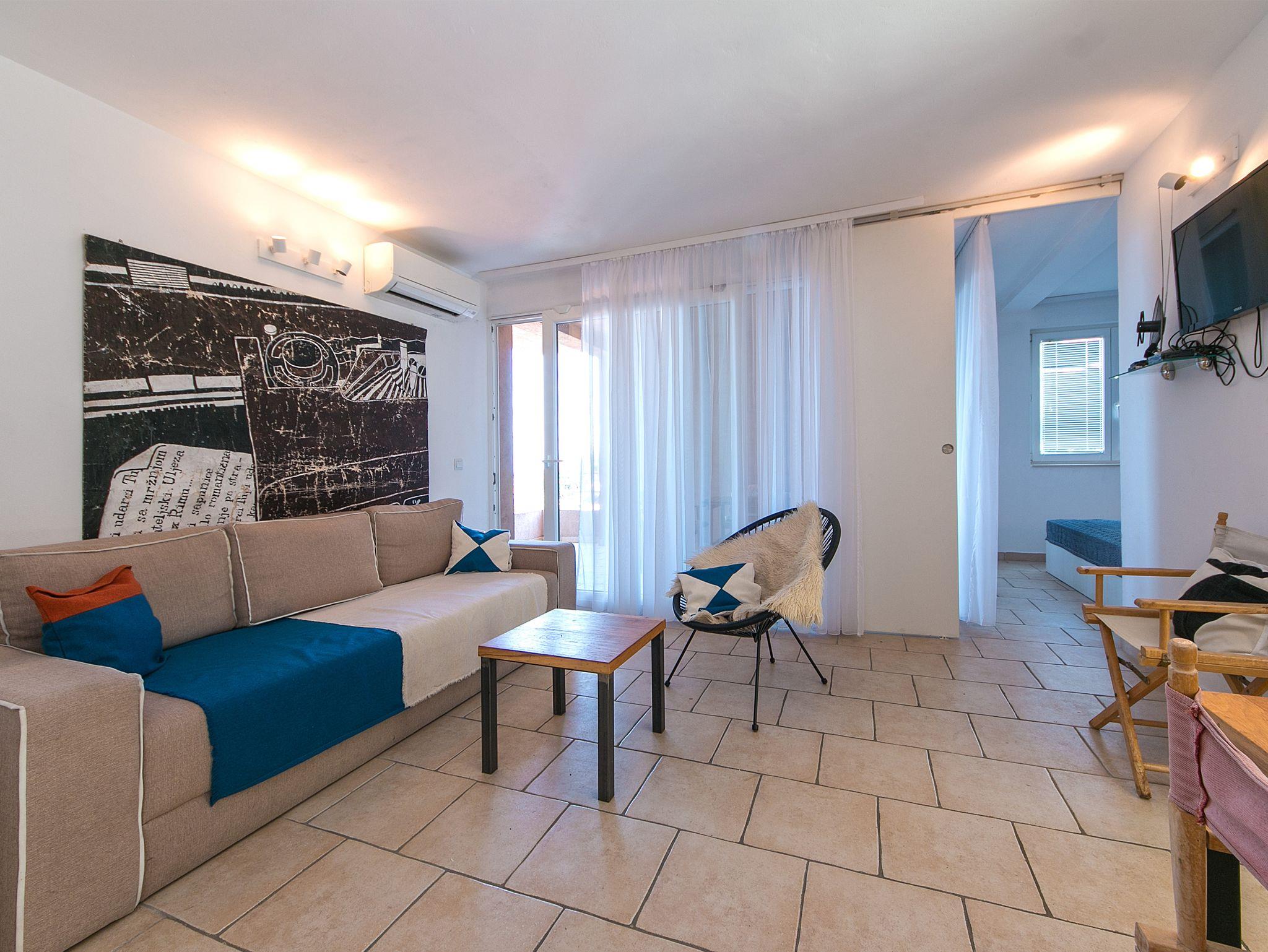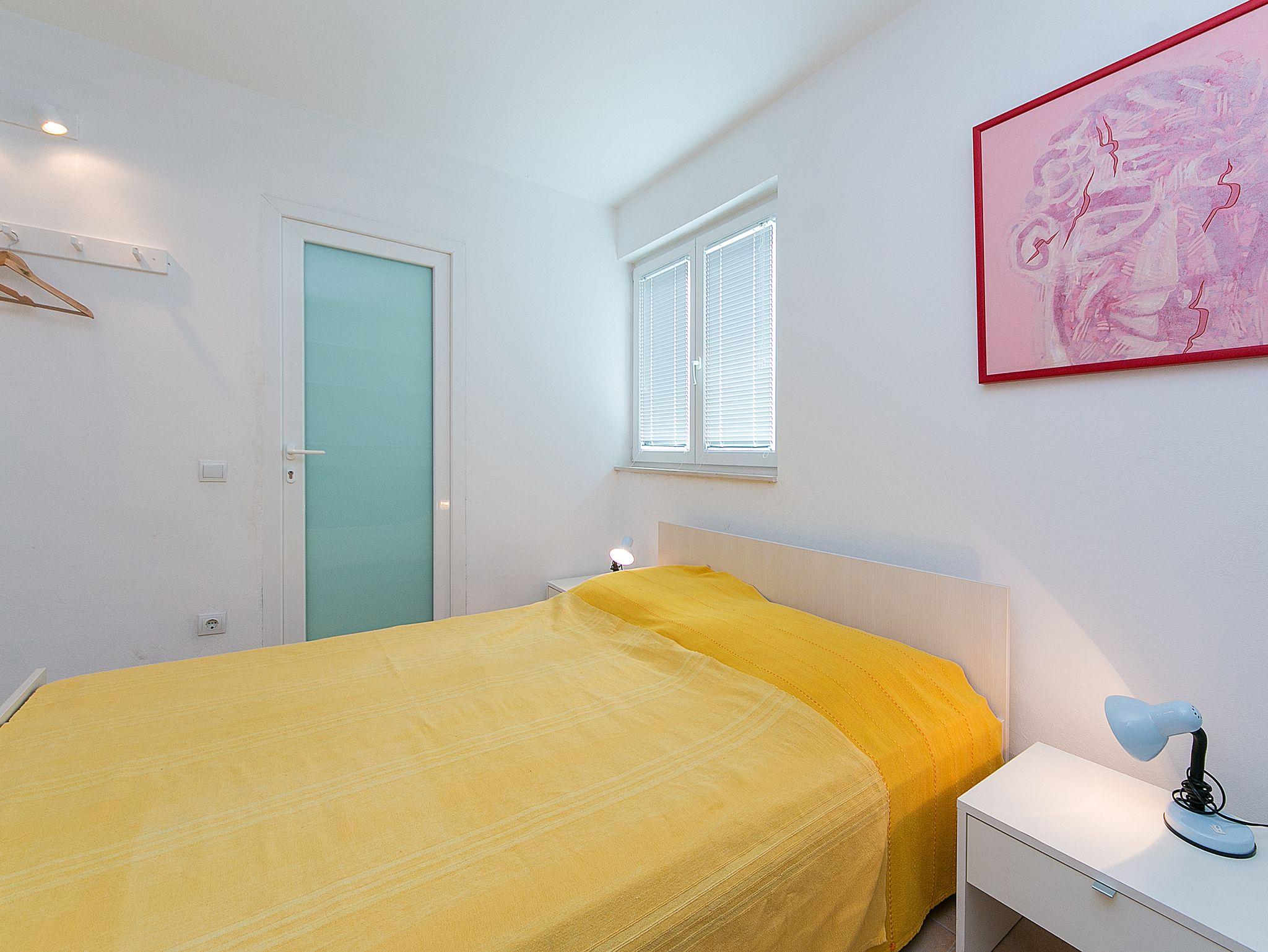 Ferienwohnung bietet Platz für 6 Gäste. Die Betten sind in Schlafzimmern, die es 2 gibt, und in Wohnzimmer, innerhalb einer Gesamtfläche von 57m2, angeordnet. Die Gäste haben eine eigene Terrasse zur Verfügung, auf der sie in warmen Sommernächten genießen können. Das Apartment bietet Meerblick. Es ist erlaubt, Speisen auf dem Gemeinschafts-Grill vorzubereiten. In der Unterkunftseinheit besteht die Möglichkeit des Mitbringens von Haustieren gegen Aufpreis. IM PREIS INBEGRIFFEN: Kurtaxe, Endreinigung, Klimatisierung, Parkplatz, Internet, Wäschewaschen, Kinderbett, Zusatzbett, Bügeleisen, Bügelbrett, Föhn, tragbarer Grill, Sonnenschirm, Liegestühle. VERBINDLICHE ZUSÄTZLICHE KOSTEN: Aufzahlung für Kurzaufenthalte (prozentualer Zuschlag pro Nächtigungsanzahl: 30% - 1, 20% - 2, 10% - 3). UNVERBINDLICHE ZUSÄTZLICHE KOSTEN: Haustiere (5,00 € pro Nacht). Die Verfügbarkeit zusätzlicher Dienstleistungen in Ihrem reservierten Termin und die Preise derselben (falls nicht aufgeführt) müssen im Voraus überprüft werden. Zusätzliche Dienstleistungen die in der Zahlungsaufforderung nicht aufgeführt sind werden direkt beim Vermieter bezahlt, angenommen der Gast nutzt auch diese. Ermäßigung auf den Grundpreis: Gratistag 14=13 (bei einem Aufenthalt von 14 Tagen oder mehr erhalten Sie einen Gratistag für den Aufenthalt bis 31.12.26).