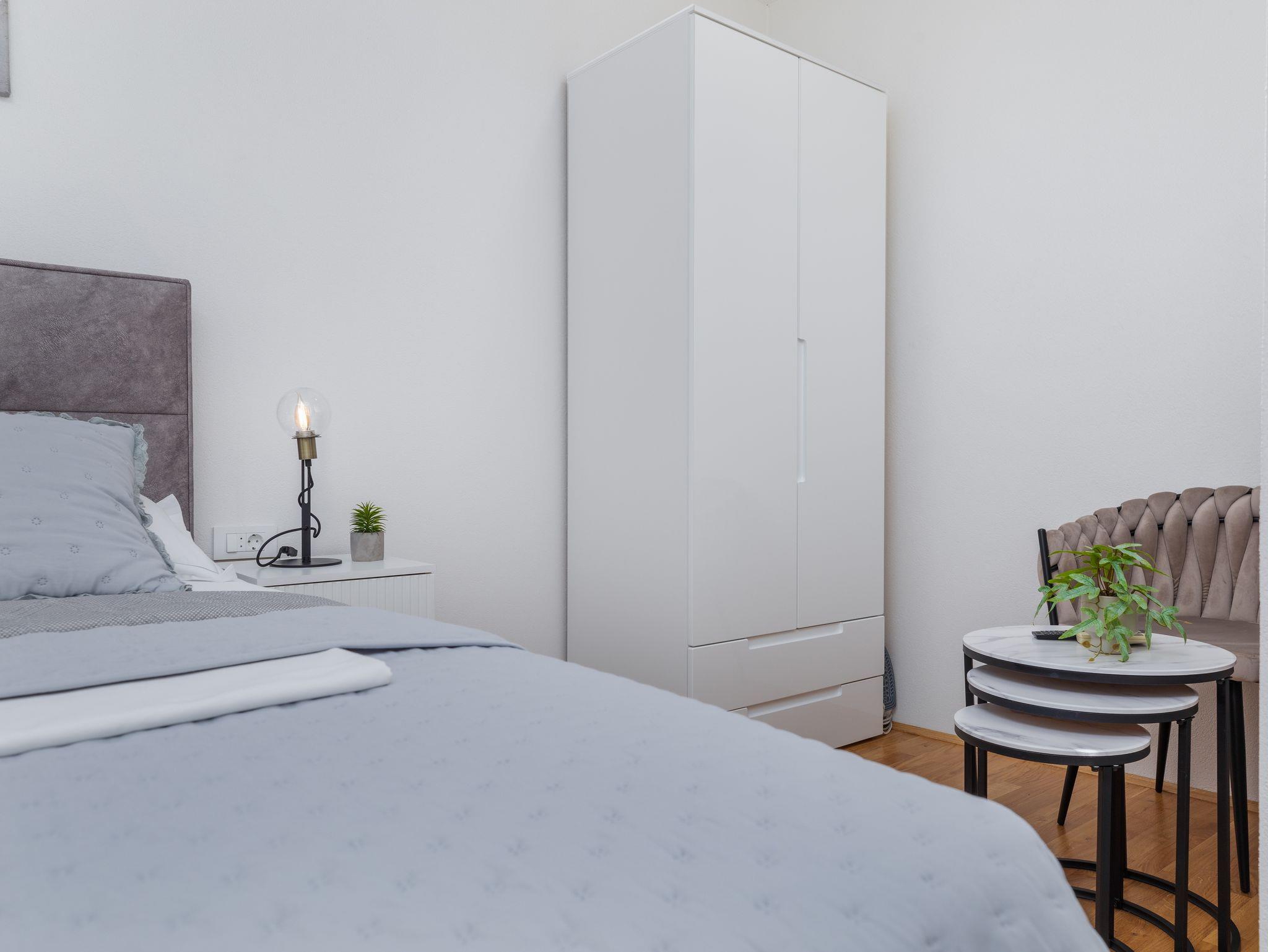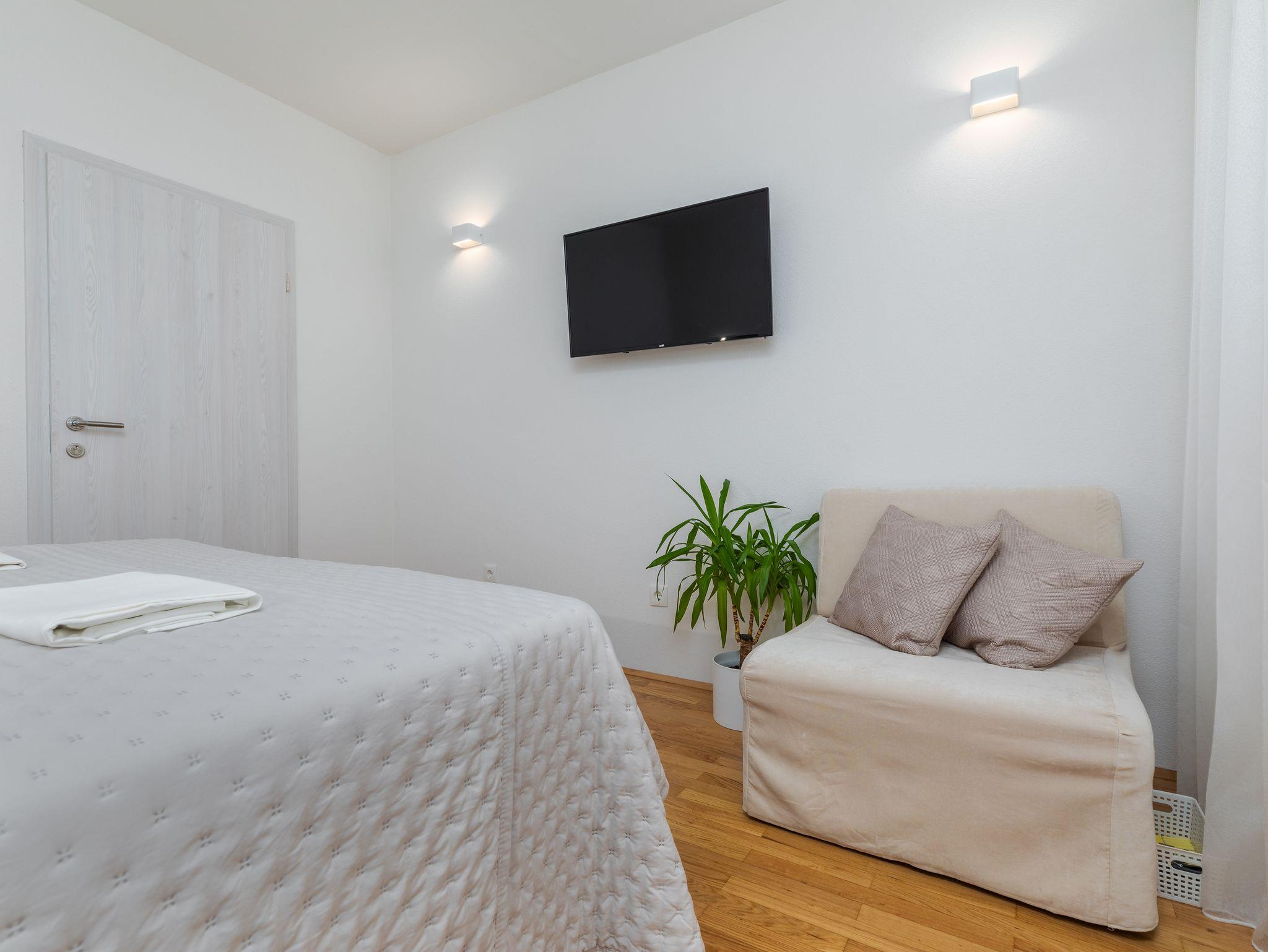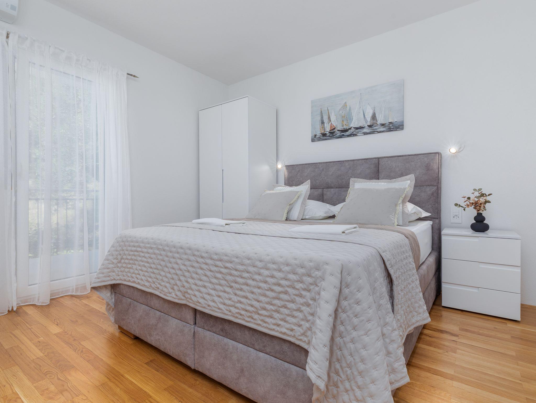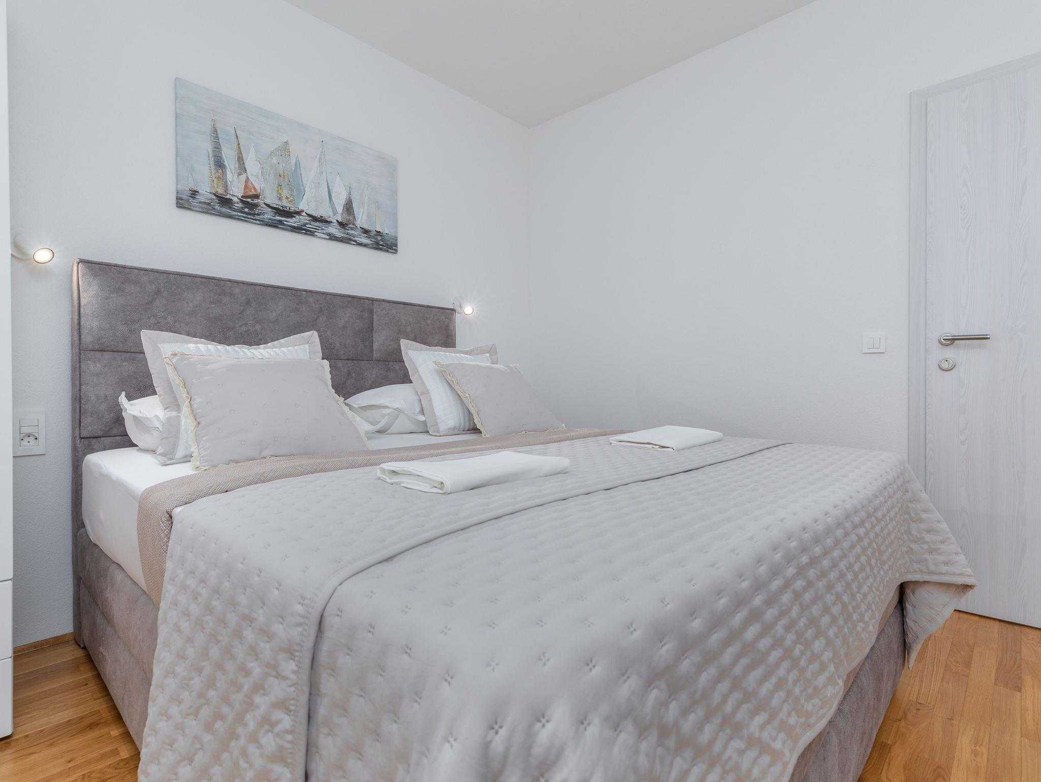 Ferienwohnung bietet Platz für 5 Gäste. Die Betten sind in Schlafzimmern, die es 2 gibt, innerhalb einer Gesamtfläche von 41m2, angeordnet. Die Gäste haben einen eigenen Balkon zur Verfügung, auf der sie in warmen Sommernächten genießen können. Das Apartment bietet Meerblick. IM PREIS INBEGRIFFEN: Kurtaxe, Endreinigung, Klimatisierung, Parkplatz, Internet, Kinderbett, Bügeleisen, Bügelbrett, Föhn. Die Verfügbarkeit zusätzlicher Dienstleistungen in Ihrem reservierten Termin und die Preise derselben (falls nicht aufgeführt) müssen im Voraus überprüft werden. Zusätzliche Dienstleistungen die in der Zahlungsaufforderung nicht aufgeführt sind werden direkt beim Vermieter bezahlt, angenommen der Gast nutzt auch diese.