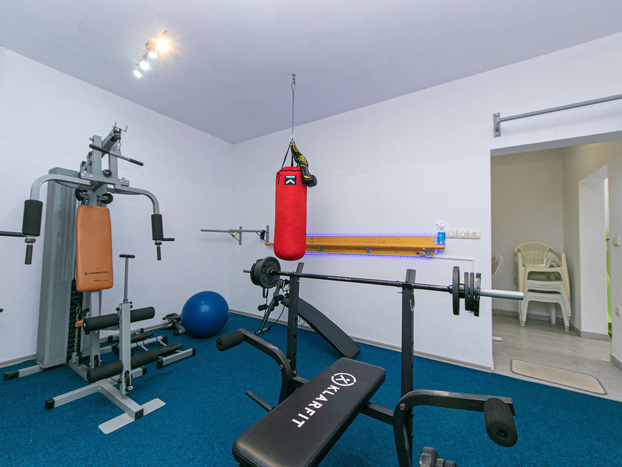 Hof (130m2, Wird mit einem anderen Objekt mitbenutzt, Sitzbereich), Parkplatz (Anzahl der Parkplätze: 3, Entfernung vom Objekt: im Hof), Pool: gemeinsam, Dimensionen: 7.5m x 3.5m x 1.5m, Wassertyp: Süßwasser, Grill: gemeinsam, WiFi Internet, Wäschewaschen, Föhn, Bügeleisen, Bügelbrett, Kinderbett