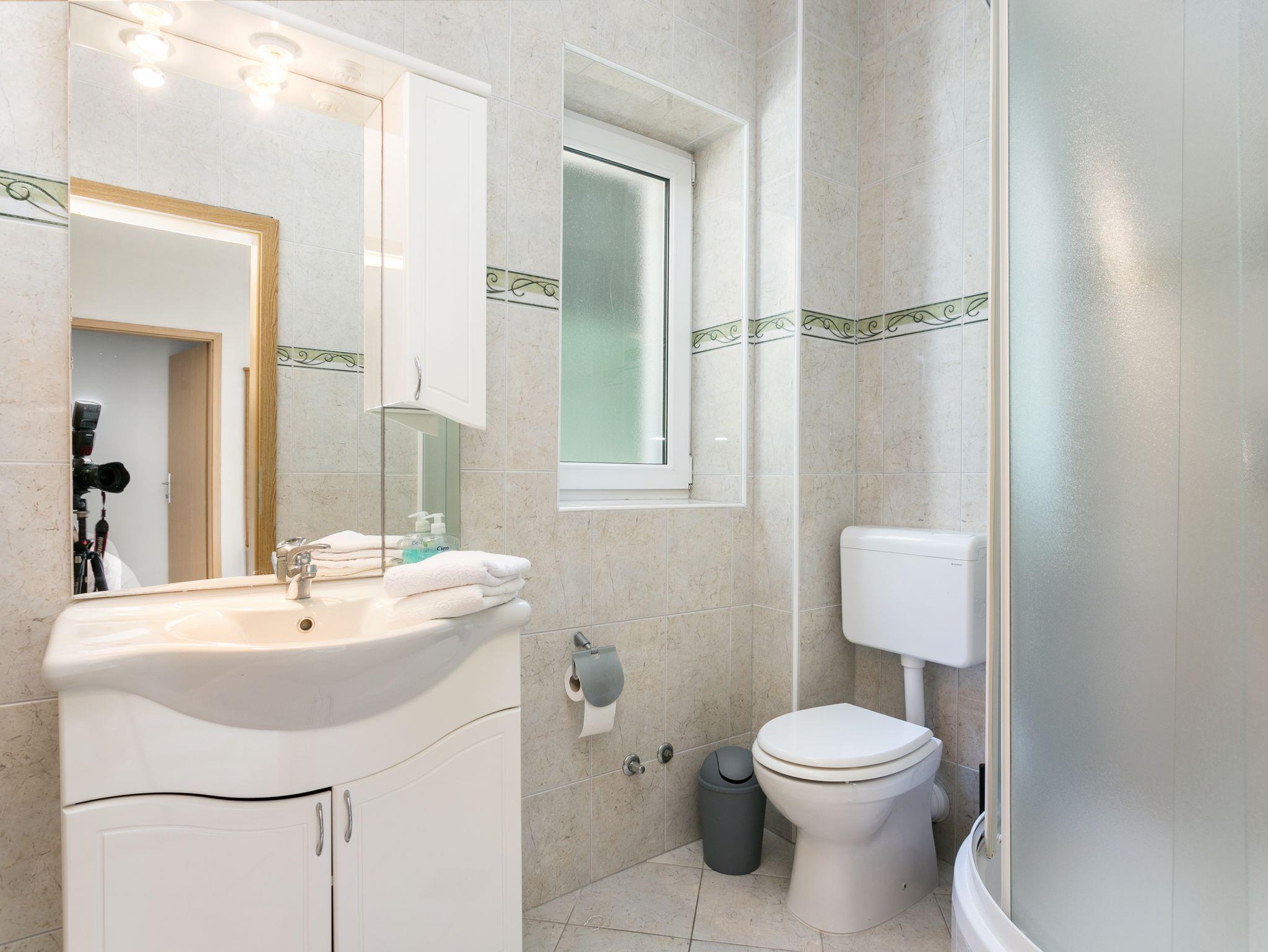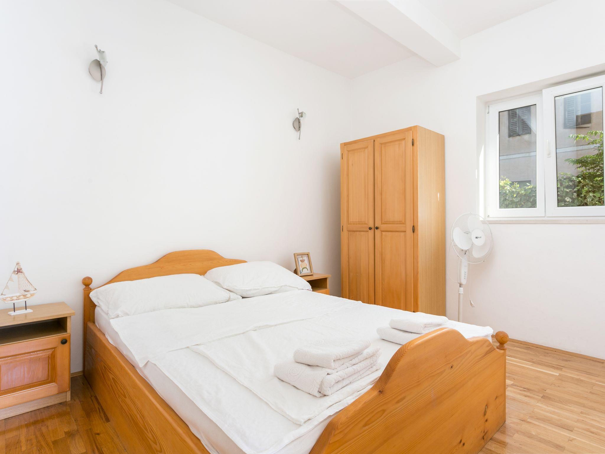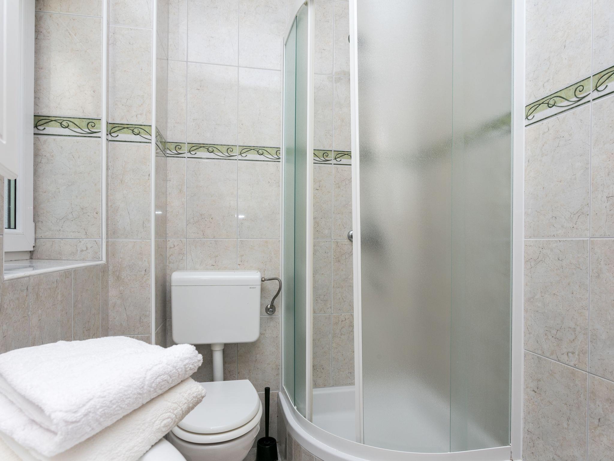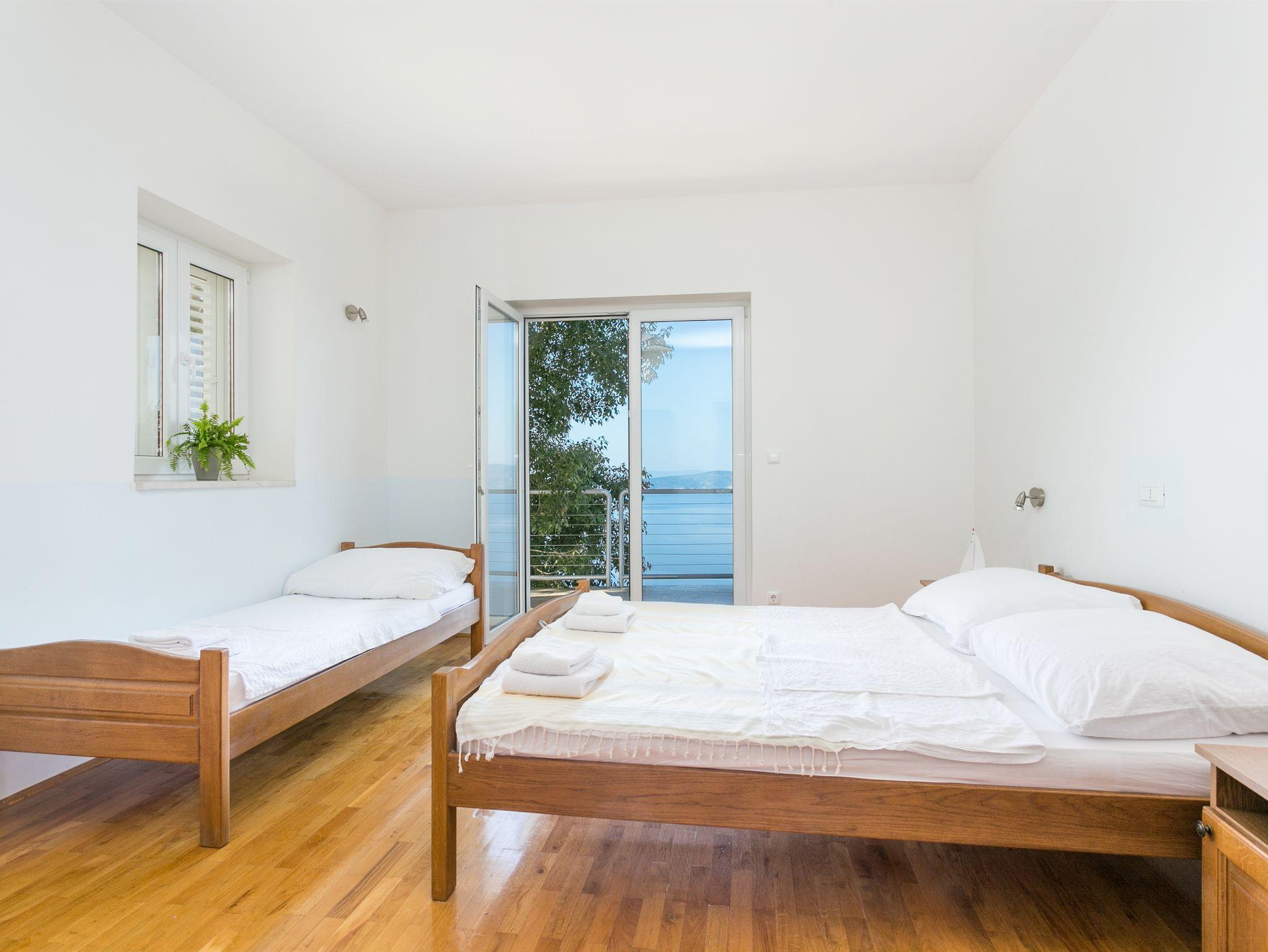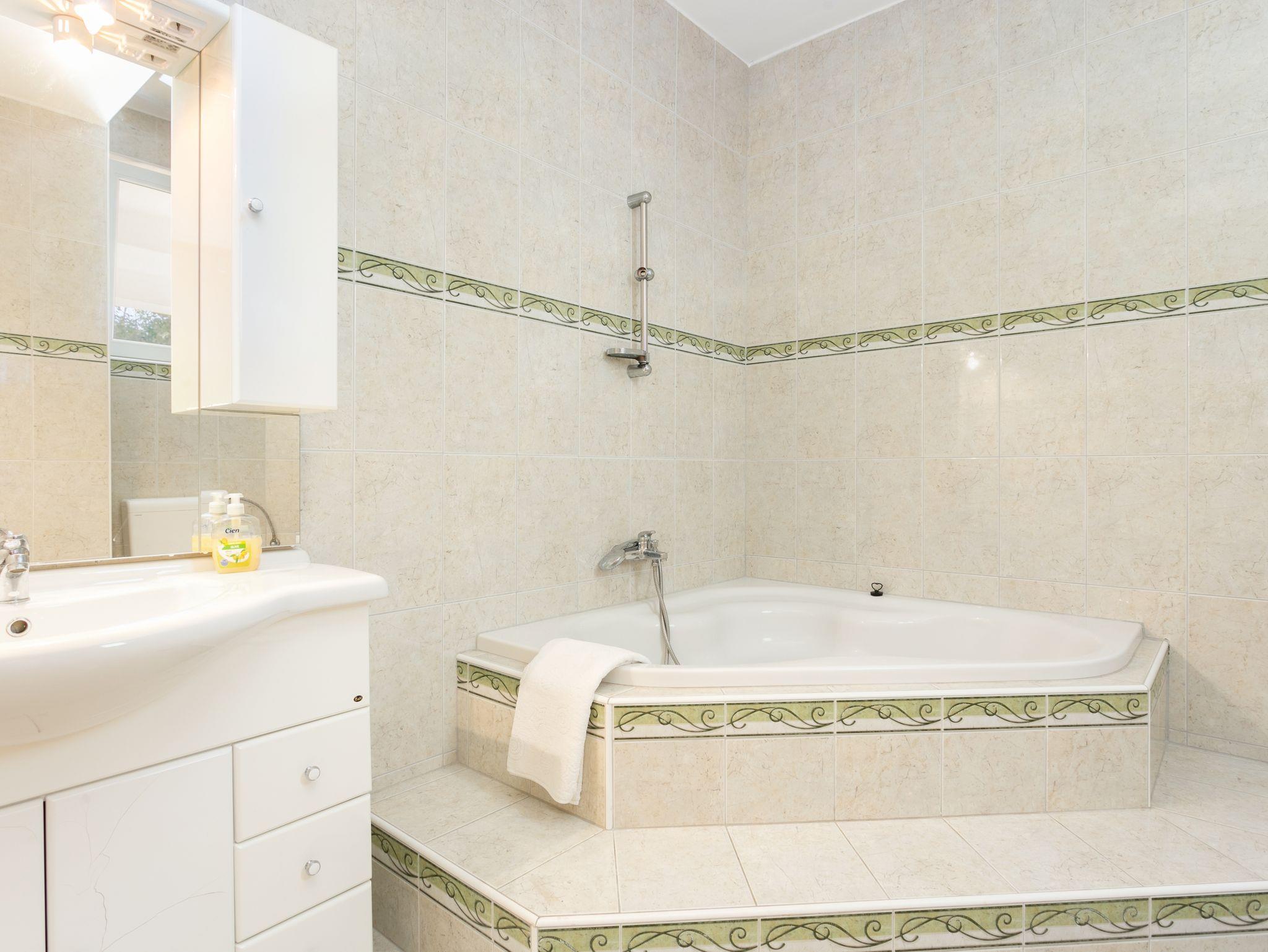 Ferienwohnung bietet Platz für 7 Gäste. Die Betten sind in Schlafzimmern, die es 2 gibt, und in Wohnzimmer, innerhalb einer Gesamtfläche von 77m2, angeordnet. Die Gäste haben eine eigene Terrasse zur Verfügung, auf der sie in warmen Sommernächten genießen können. Das Apartment bietet Meerblick. Es ist erlaubt, Speisen auf dem Gemeinschafts-Grill vorzubereiten. Während ihres Aufenthalts können Gäste das gemeinsam zur Nutzung stehende Schwimmbad benutzen. IM PREIS INBEGRIFFEN: Kurtaxe, Endreinigung, Klimatisierung, Pool, Parkplatz, Internet, Bügeleisen, Föhn. VERBINDLICHE ZUSÄTZLICHE KOSTEN: Aufzahlung für Kurzaufenthalte (prozentualer Zuschlag pro Nächtigungsanzahl: 30% - 1, 20% - 2, 10% - 3). UNVERBINDLICHE ZUSÄTZLICHE KOSTEN: Wäschewaschen (5,00 € Waschen). Die Verfügbarkeit zusätzlicher Dienstleistungen in Ihrem reservierten Termin und die Preise derselben (falls nicht aufgeführt) müssen im Voraus überprüft werden. Zusätzliche Dienstleistungen die in der Zahlungsaufforderung nicht aufgeführt sind werden direkt beim Vermieter bezahlt, angenommen der Gast nutzt auch diese. Ermäßigung auf den Grundpreis: Gratistag 14=13 (bei einem Aufenthalt von 14 Tagen oder mehr erhalten Sie einen Gratistag für den Aufenthalt bis 31.12.26).