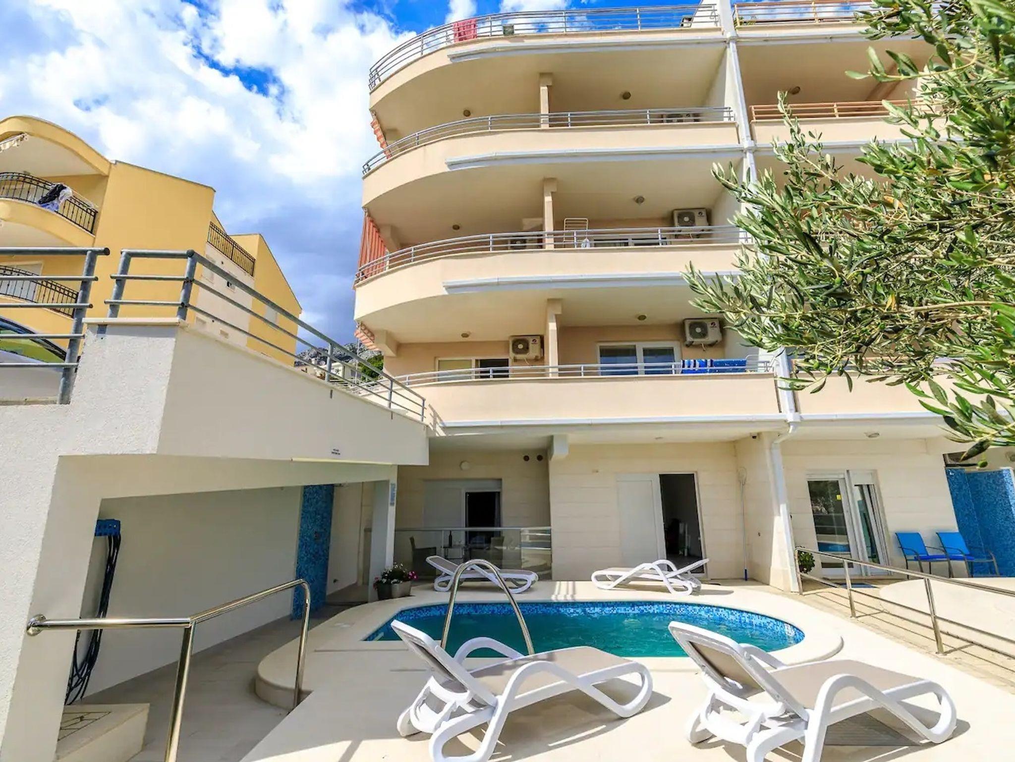 Ferienwohnungen mit Pool für Familien Brela, Makarska - 19998, Studio Appartement mit Terrasse und Meerblick Brela, Makarska AS-19998-a