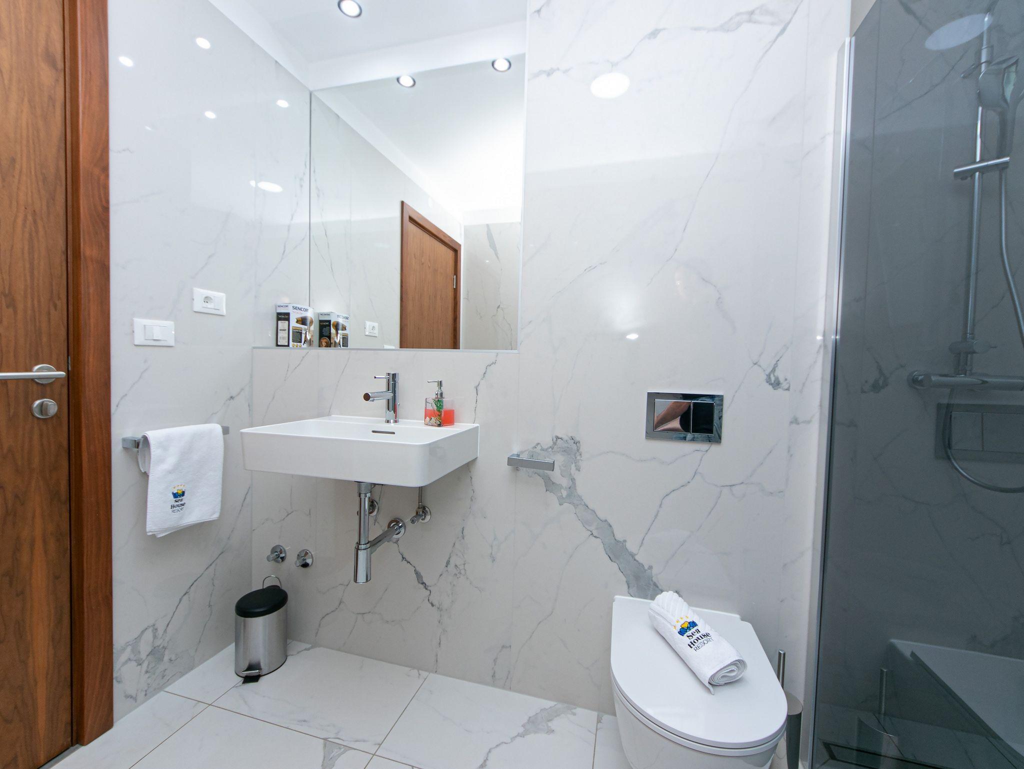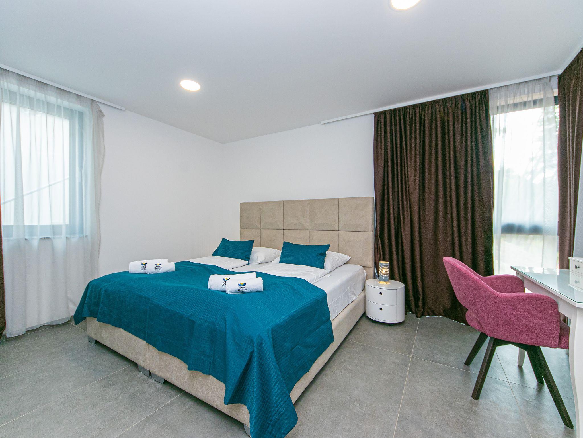 Hof (200m2, Wird mit einem anderen Objekt mitbenutzt, Sitzbereich), Parkplatz (Anzahl der Parkplätze: 8, Entfernung vom Objekt: im Hof), Pool: gemeinsam, Dimensionen: 10m x 5m x 1.5m, Wassertyp: Salzwasser, Heizung: Ja, Frühstück, WiFi Internet, Wäschewaschen, Föhn, Bügeleisen, Bügelbrett, Kinderbett
